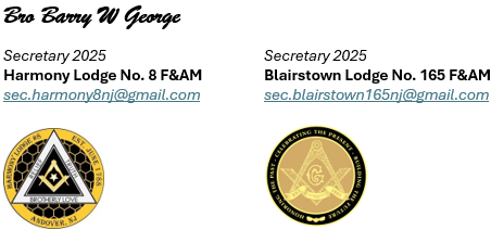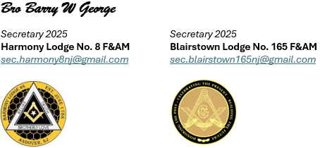 | Brethren, Attached are the minutes for the meeting last evening, April 9, 2026. Please review and advise any errors or omissions. Some important dates to note- 1. A Fisherman's Breakfast is being held at Harmony Lodge tomorrow (Saturday 4/11) from 6-11am, $12 per person. 2. Our candidate will be conferred the Entered Apprentice Degree on Thursday, April 16, 2026 at Harmony Lodge. Dinner @ 6:30pm, gavel @7:30pm. Your attendance is requested. 3. A rehearsal for this degree will be held at Harmony lodge on Tuesday 4/14 @ 7pm. Please make every effort to participate. 4. The next DLI will be held at Blairstown on MONDAY, 4/27. Please note this change in date. All officers are expected to attend. Fraternally, 2026-04-09 165 Minutes-Regular Communication.pdf |