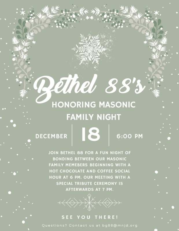 Greetings from Bethel 88, On behalf of Honored Queen Nellie, please see attached invite for Bethel 88's- Honoring Masonic Family Night and Potluck on May 8th, 2025. Potluck begins at 6pm and the meeting at 7pm. I will send this invitation out again closer to the date. Please reserve this evening for Bethel 88 and its members so they may celebrate YOU! B88 Honoring Masonic Invite (1).pdf |