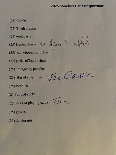 | Hey Brothers, By December 6th, we must have our contributions at the Lodge for our Veteran Shoeboxes collected. Attached is the list of items we need for the male Veterans. Hilary Verville is doing the Shoeboxes for the Ladies. Please contact me at joeecrane@gmail. com if you want to purchase items for our Veterans. A phone call is also acceptable. |