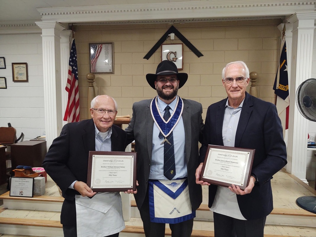 | Brothers, I was informed today the Brother Halsey passed away yesterday. Brother Halsey was an IL Mason who I understand made a few visits to our lodge over the years when he was able but faced health issues. At the request of him/his Mother Lodge we presented him and his Brother in-law Jim, a member of Holly Springs 115, their 50-year service awards a few years ago. See attached picture, Bro Halsey is on the left. Visitation will be at 10am with the services following at 11am at Fuquay United Methodist on Judd Pkwy. WB Mel Crocker will do the Masonic Rites. Brother Jim expressed this was import to Brother Halsey and apologized for the quick notice. Any Brothers that are able to attend and help/be present would be appreciated. Reach out to myself or WM Carl Vaughn to let us know if you plan to attend. S&F, Brett Meadors Secretary, Fuquay. #258 |