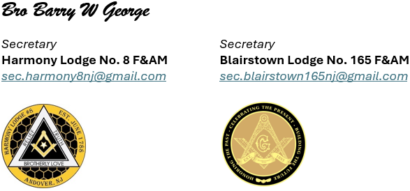On behalf of our brothers at Blairstown Lodge #165, see message from their Secretary below: