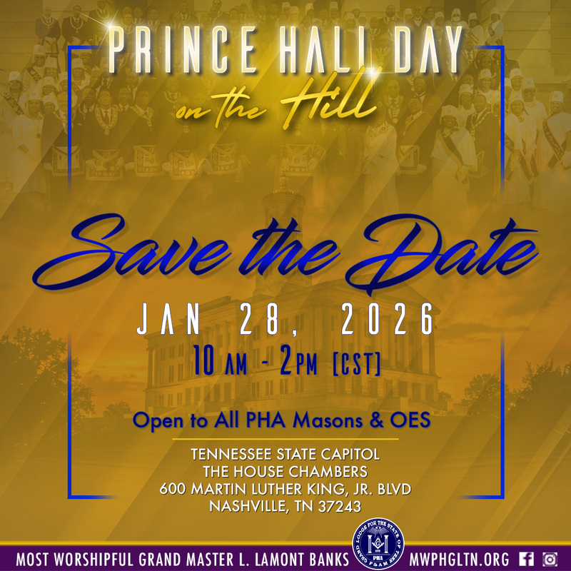 Brothers and Sisters, It’s time! We are calling all members of the Prince Hall Family across Tennessee to join us for Prince Hall Day on the Hill at the Tennessee State Capitol. 📅 Wednesday, January 28, 2026 ⏰ Arrive at 10:00 AM 🚪 Chamber doors open at 11:00 AM 📍 Tennessee State Capitol – Both Chambers of Government Mark your calendars and make plans to be in Nashville on January 28. We are in uncharted times, and the Prince Hall Family must lead from the front—not the sidelines. Tennessee’s District 7 came close to flipping a Republican seat, even after the district was redrawn to heavily favor their party. Regardless of anyone’s political stance, one truth remains: Prince Hall Masons and the entire Prince Hall Family must let our voices be heard. This day is about hearing directly from legislators, understanding their plans, and ensuring the individuals we elect align with the values and needs of our community. This is not just a photo opportunity. This is the work. This is the moment. And we stand on the shoulders of giants—leaders like PGM Benjamin L. Hooks, among many others—who carried the torch before us. Now we must do the work so the next generation can stand on our shoulders. Your presence matters. Your voice matters. Our unity matters. Let’s show up, stand up, and speak up—together. Fraternally, Spencer E. Rollins Deputy Grand Master Civic Engagement Committee Chairman Capitol Hill-Intro-Feb(2026) copy.jpeg |