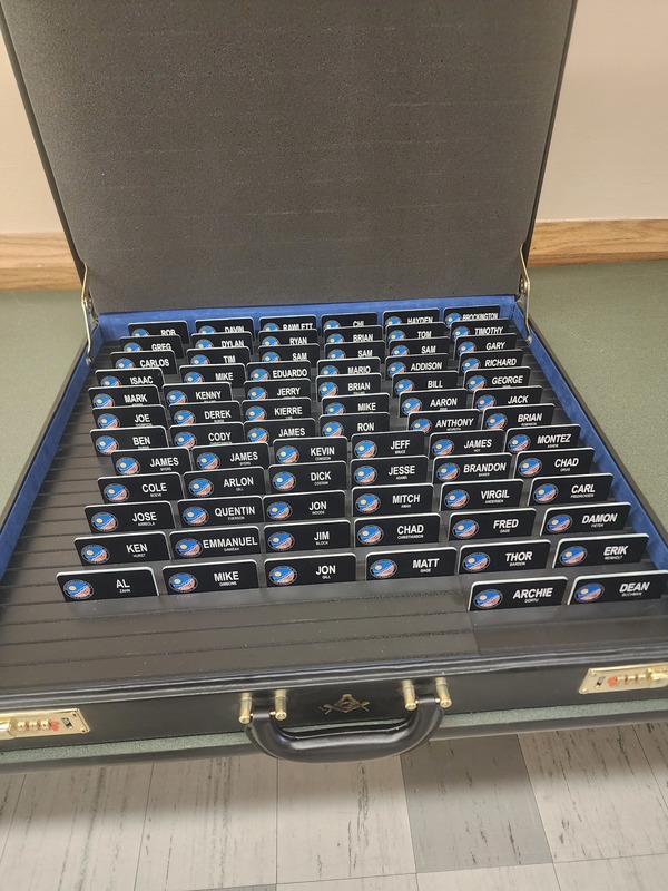 | Brothers of Minnehaha Lodge, It was a special night at our last stated meeting. A project that has been in the works for some time and as the result of funds raised during our Lodge Refresh project the Lodge decided to purchase name tags for those members that have at least attended a meeting in the last two years and have been recorded in the log book as such. When this idea was proposed it was estimated that we would have an estimated 50 or so names on the list....ready for the final number? 72!! Nearly half of our membership has been engaged in a meeting or another member has vouched for that member and has said they will return soon. That is amazing! We did purchase them for all of our new affiliates and our new Brothers coming in as these Brothers are attending each meeting. We are excited to attend each meeting and we now want to seek out those who we may not have remembered their name :). Brothers who are reading this and did not receive a name tag it was not intended, it may have been an oversight and we do apologize. If you did not see your tag the other night, you do not see it below, or any other reason please contact sec@minnehaha5.com for questions. The name tags are $7.50 each but the lodge is also more than happy to cover the cost of them to help engage the membership of Minnehaha Lodge Brother Addison Stubbe's hidden talent is Tetris! He orientated the new name tag briefcase in such a way that it just fits in the space at the top of our locker just like it was meant to be! |