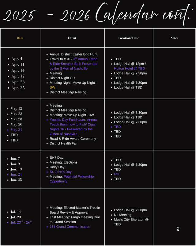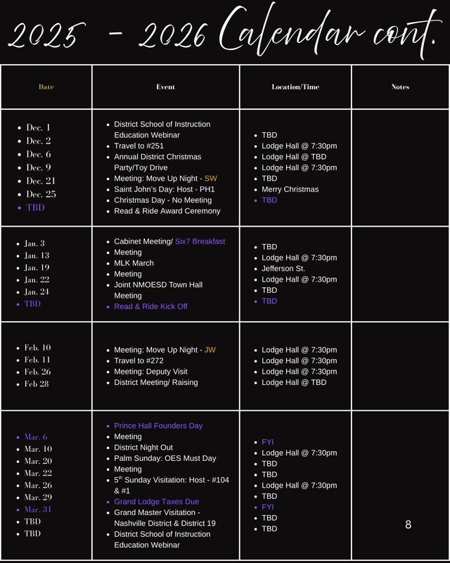 Dear Brethren, I hope this message finds you well and in good spirits. Please find below the minutes from our most recent lodge meeting, as well as the minutes from the latest association gathering. These documents reflect the thoughtful discussions, decisions, and shared vision that continue to guide our work together. 📎 Lodge Meeting Minutes – 9/9/25 📎 Association Meeting Minutes and reports – 9/11/25 PHAMA_20250911_Agenda.pdf PHAMA_MY25_26_Budget_20250911.pdf PHAMA_Aug2025_Treasurer_Report.pdf PHAMA District Report 20250911.pdf Additionally, I’m pleased to share a message from our Deputy, whose words offer encouragement and direction as we move forward: 🗣️ Message from the Deputy Vigilance in Light of Recent HBCU Threats.pdf As always, thank you for your continued commitment to Brotherly Love, Relief, and Truth. Your presence and participation are what make our lodge a place of unity, joy, and meaningful impact. Fraternally, Worshipful Master Xavier Lewis |