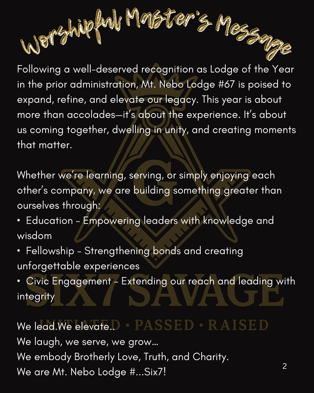Brothers, I hope this message finds each of you well. Mt. Nebo Lodge #67 will be placing a bulk order for Lodge shirts and aprons through our vendor. To ensure we collect everyone’s size, quantity, and preferences accurately, please complete the order form linked below. This form also includes a section with our Custom Mt. Nebo T-shirts & Hoodies available through CustomInk for direct shipping, should any brother wish to purchase those as well. 📄 Order Form: https://forms.gle/BYwzcrWGzJibbVWu7 Please submit your responses at your earliest convenience so we can place the lodge order in a timely manner. If you have any questions, feel free to reach out to me directly. Fraternally, WM Xavier Lewis Mt. Nebo Lodge #67, F & A.M., PHA |