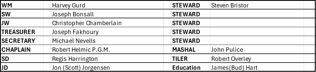 Brothers, Please find attached the updated Lodge 2026 Directory. As usual this remains a work in progress and is largely dependent on input we receive from the individual Brothers of the Lodge. Please send me via email, snail mail, smoke signals, whatever works for you any edits or updates you may have for our records / Directory. Thank you Mike Nevells Lodge Secretary 517-285-8733 mpnevells@gmail.com |