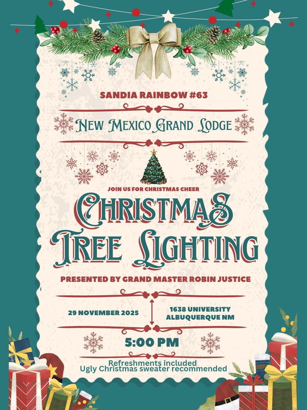 Brethren: Please plan to join us for our November Communication and enjoy a Thanksgiving meal cooked by our own Sandia Mountain #63 Rainbow Assembly. In addition to our local elections, it is also Lodge election night! Plan to attend and voice your opinions on the next year for our Lodge. Upcoming Meetings