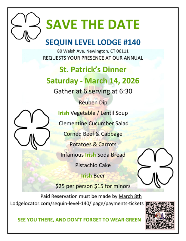 Annual St Partick's Day Dinner - Saturday March 14th, 2026 - $25.00 Donation