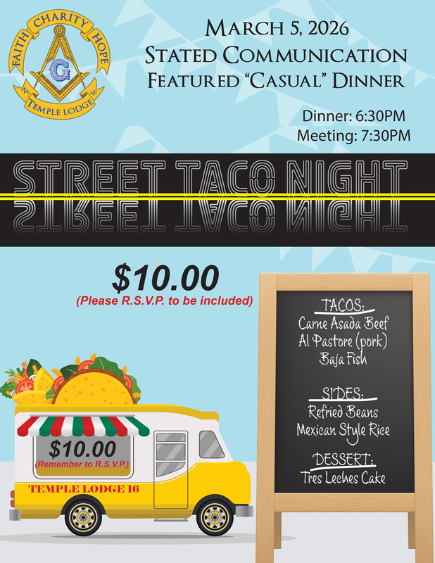 We will have a speaker giving us a fantastic Masonic Lecture, so it is going to be a night of good food and great information. I hope to see you there!
