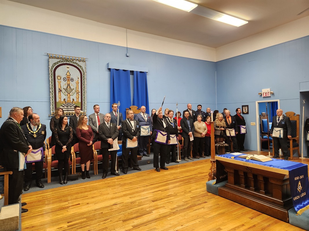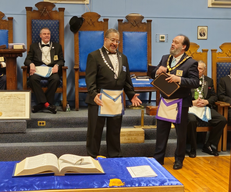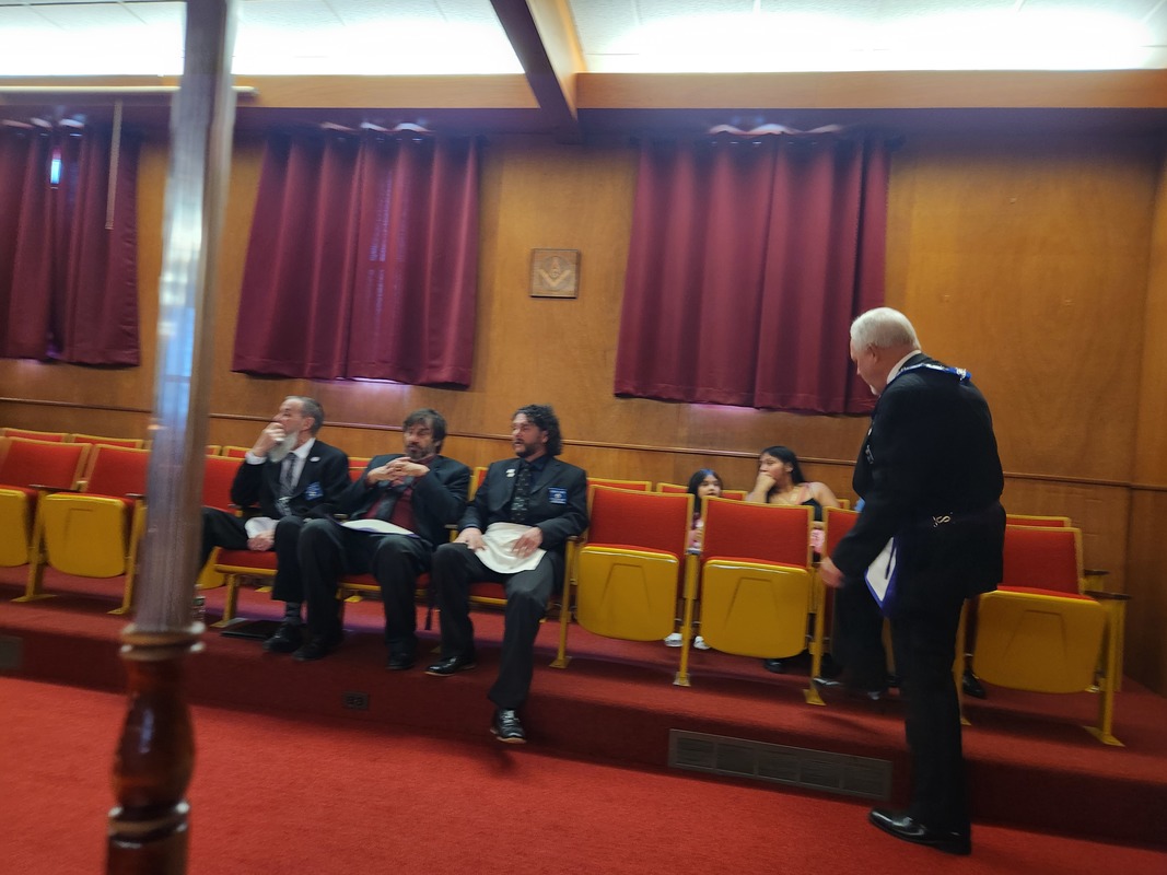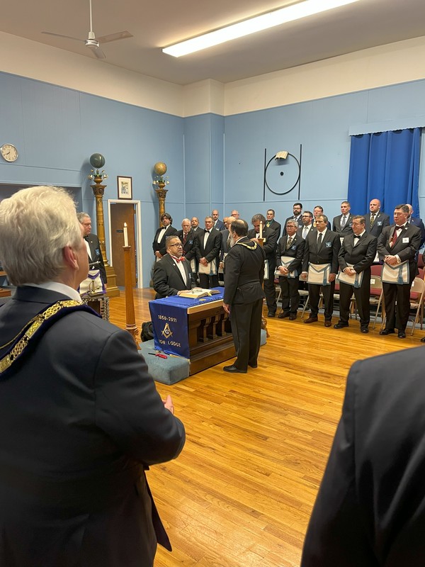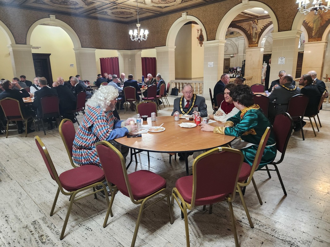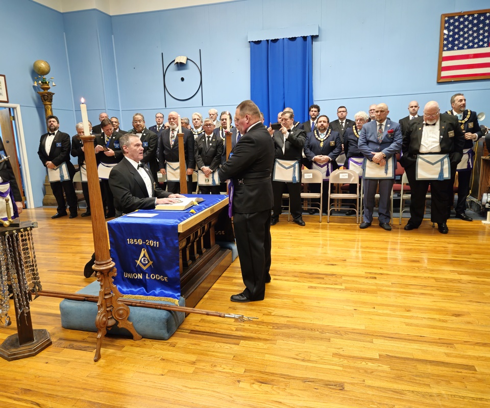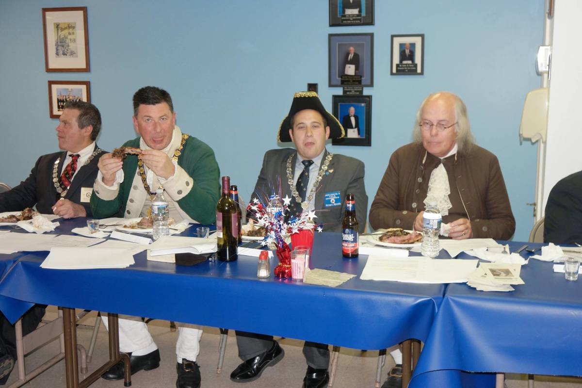 Benjamin Franklin speaking about his history as a Mason at a Union Table Lodge