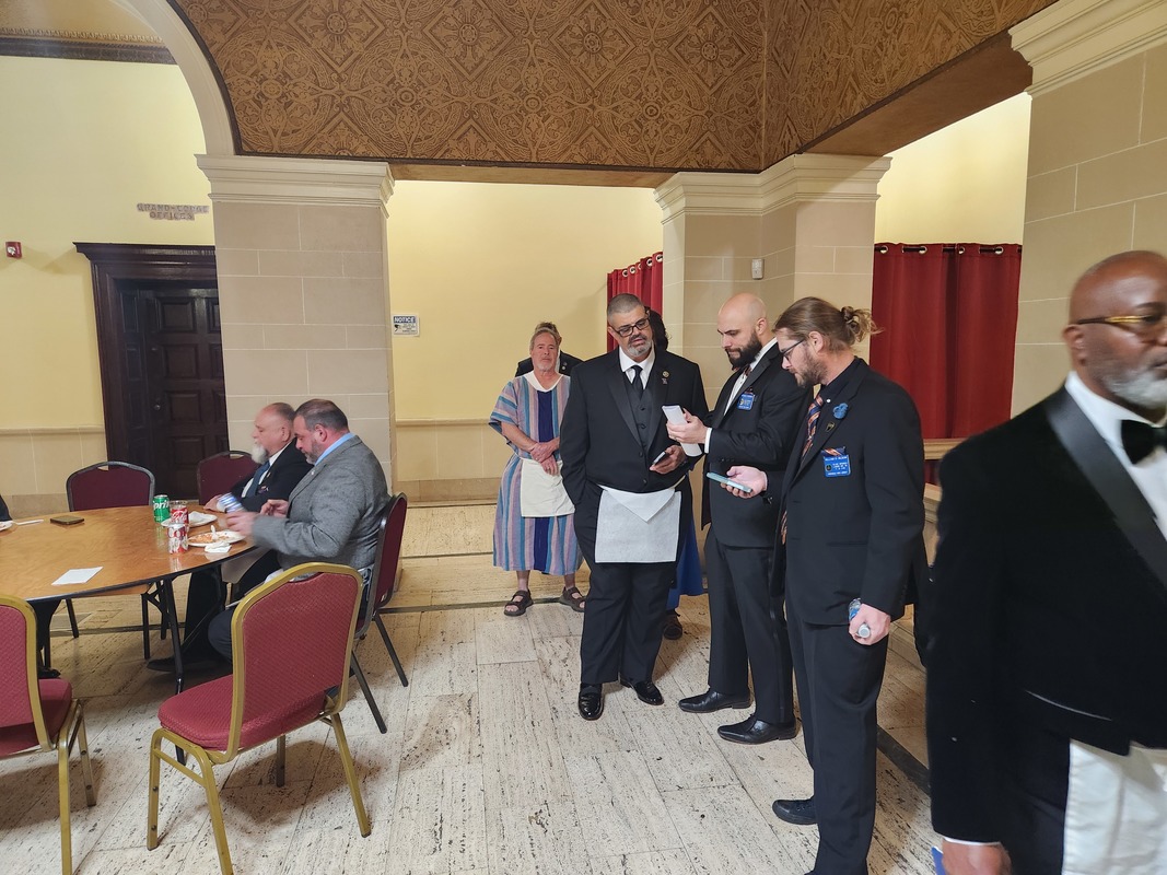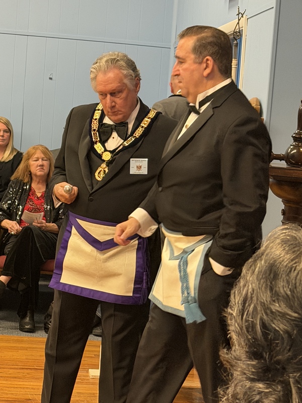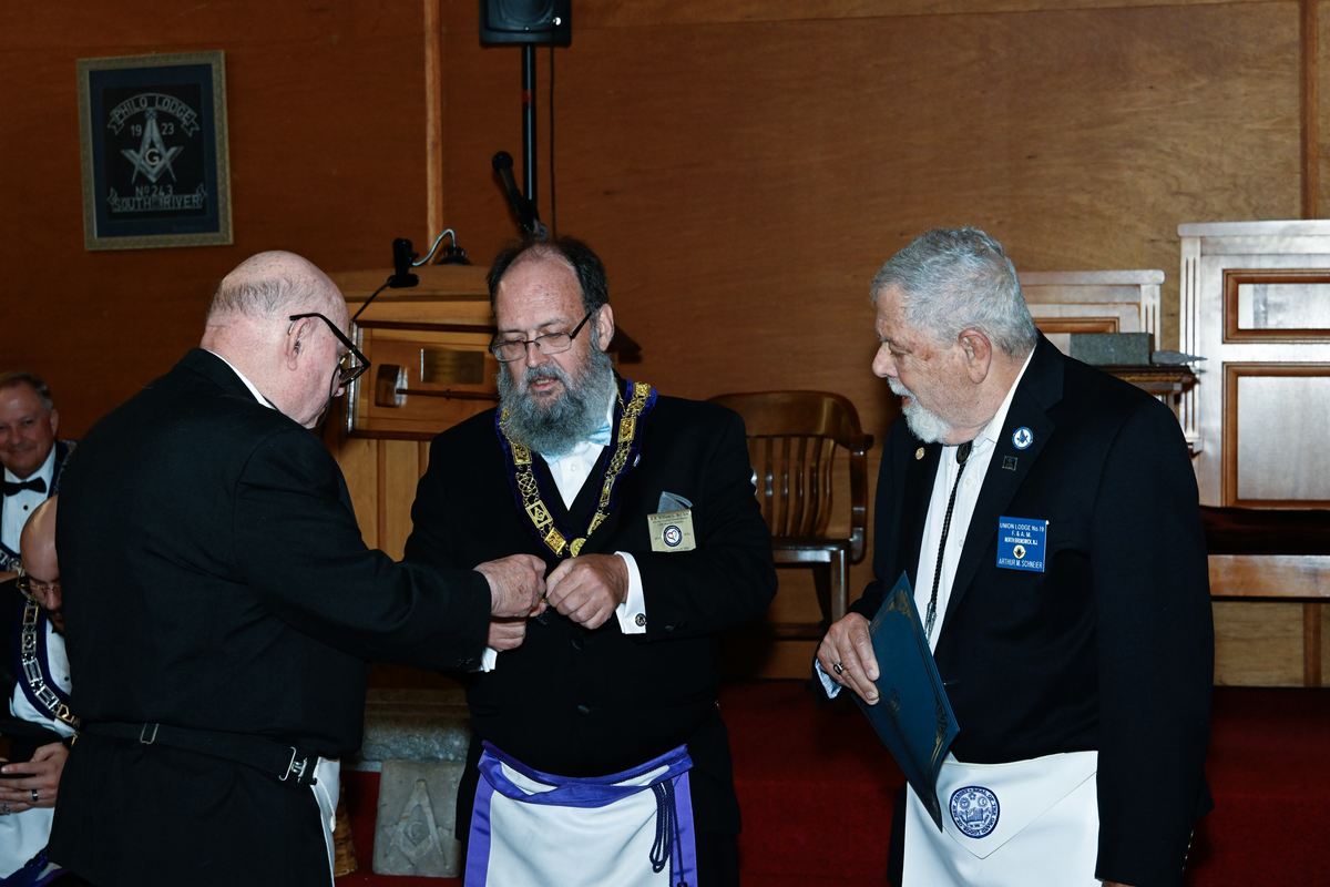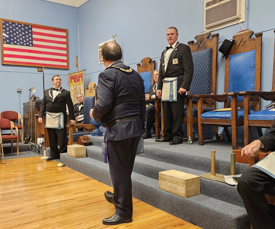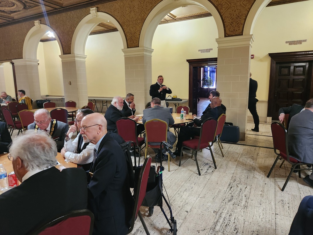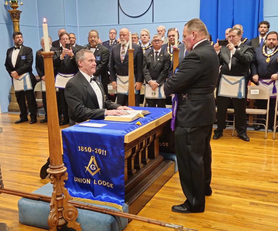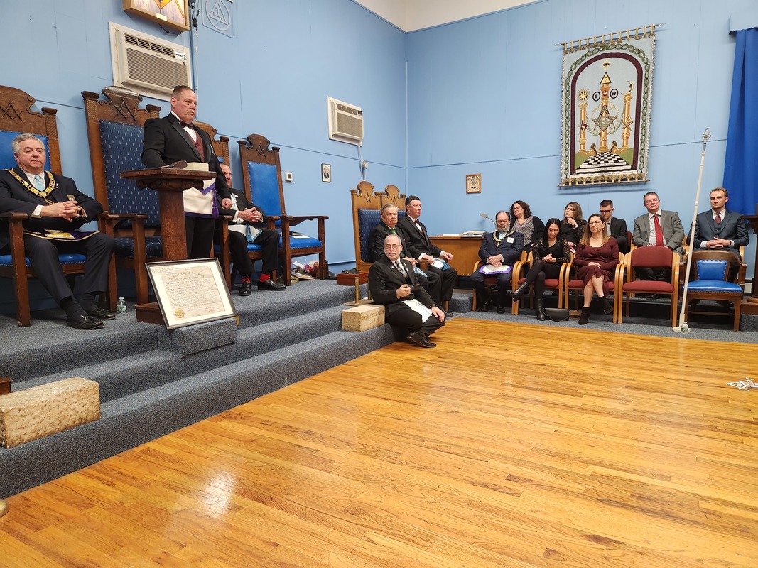 Benjamin Franklin speaking about his history as a Mason at a Union Table Lodge