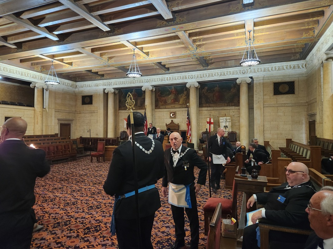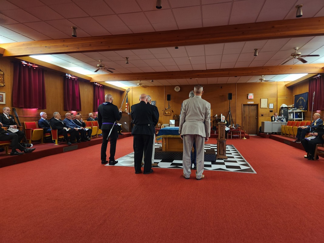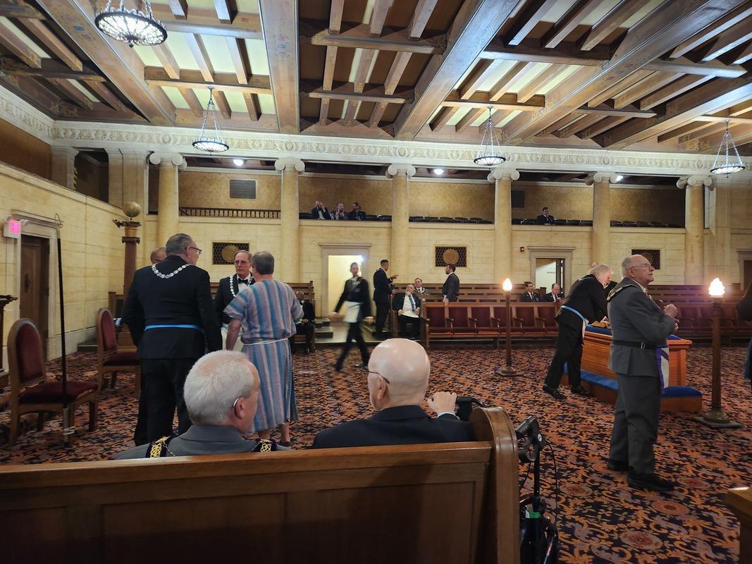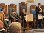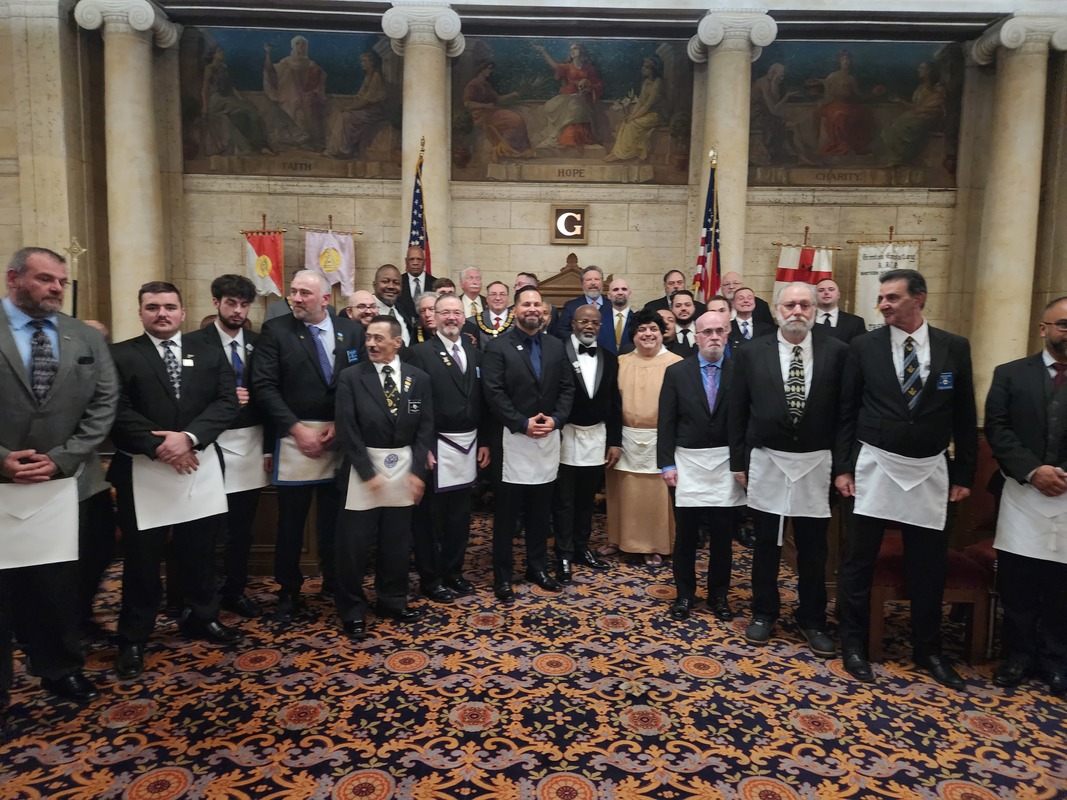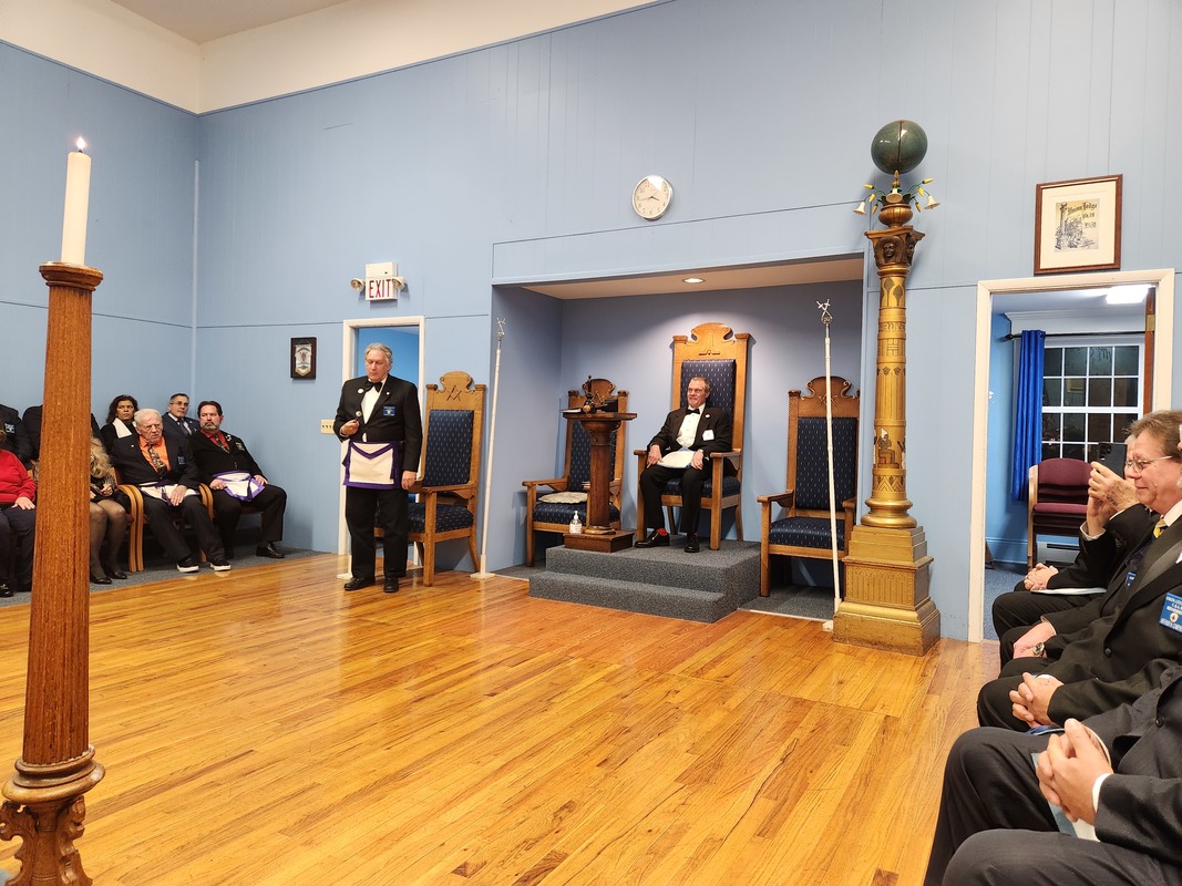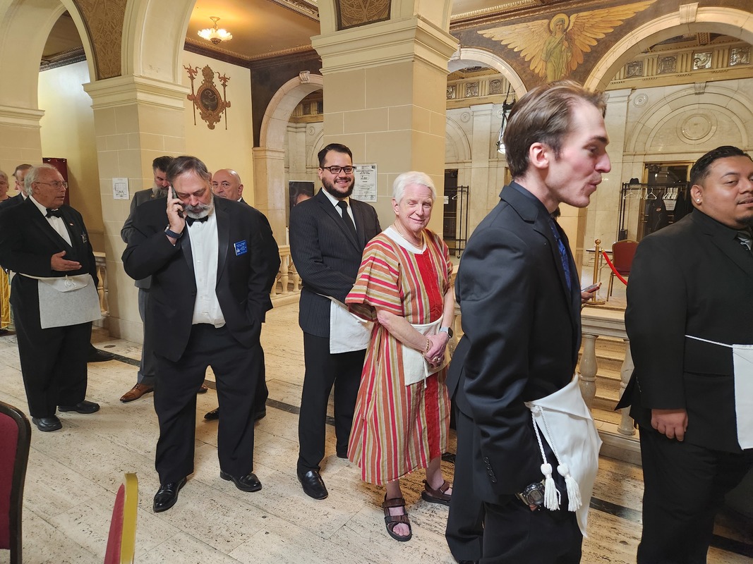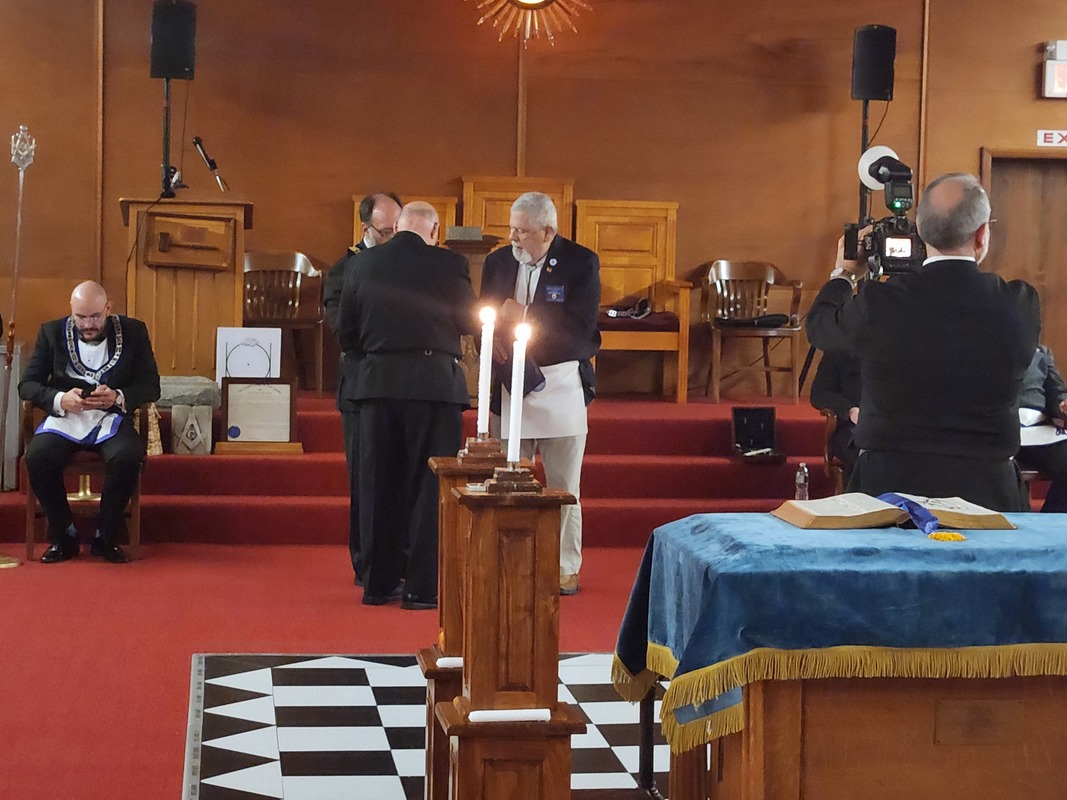 Benjamin Franklin speaking about his history as a Mason at a Union Table Lodge
