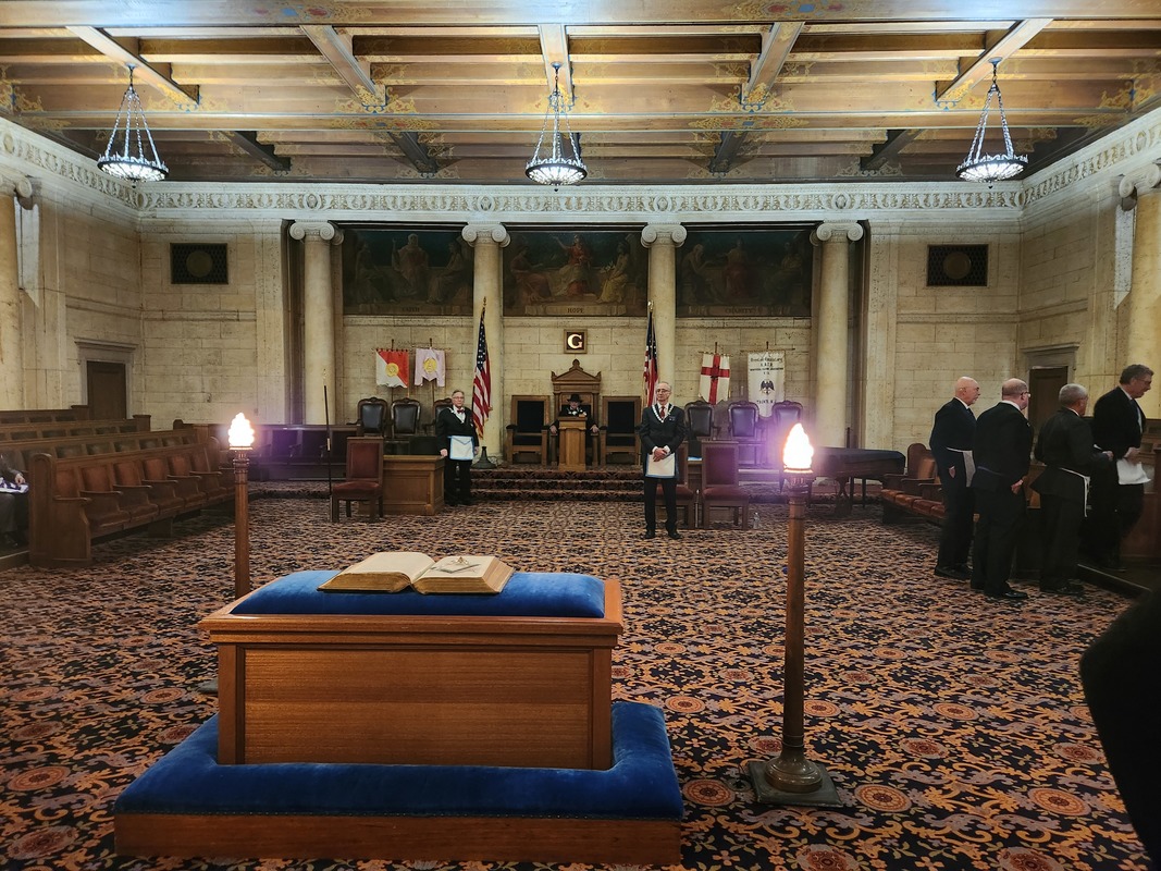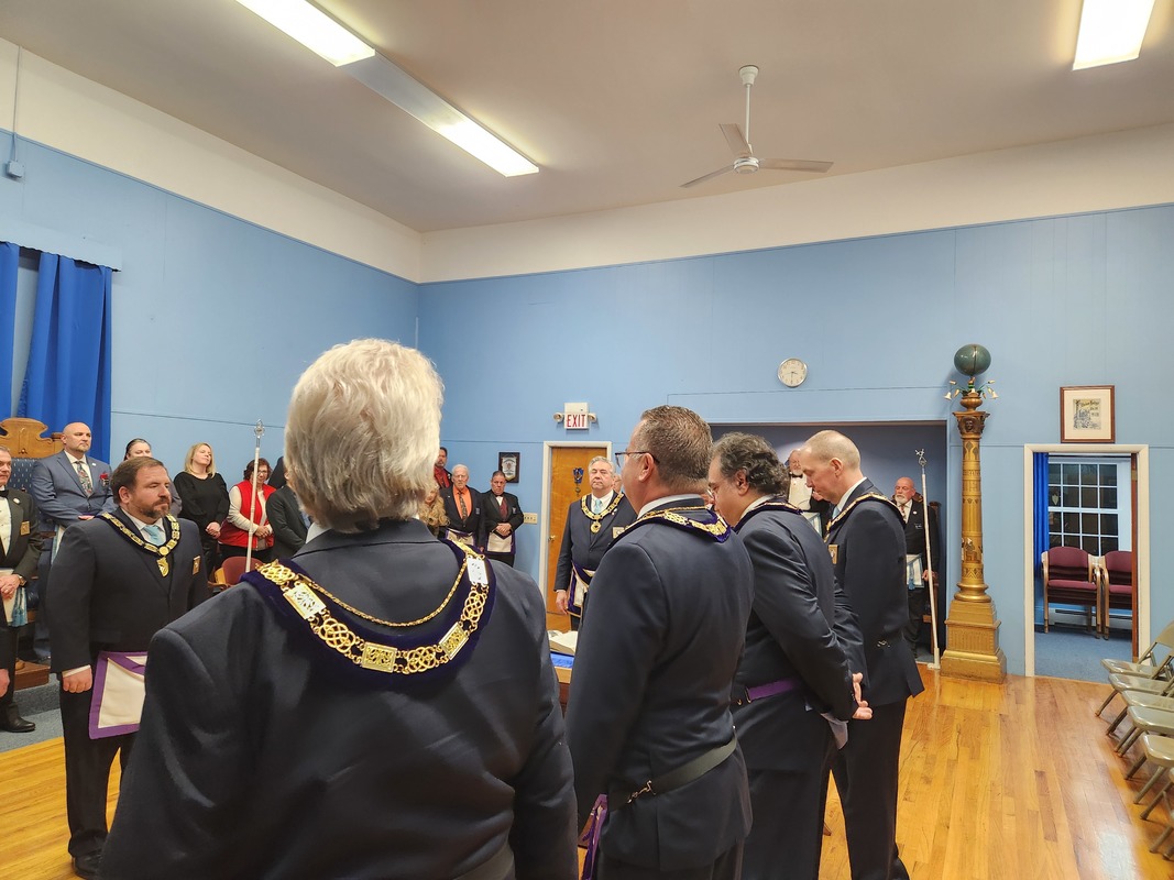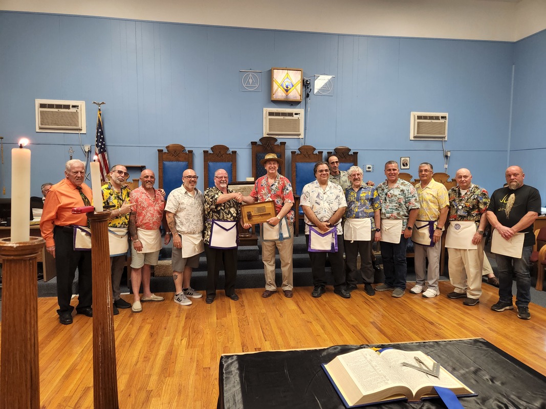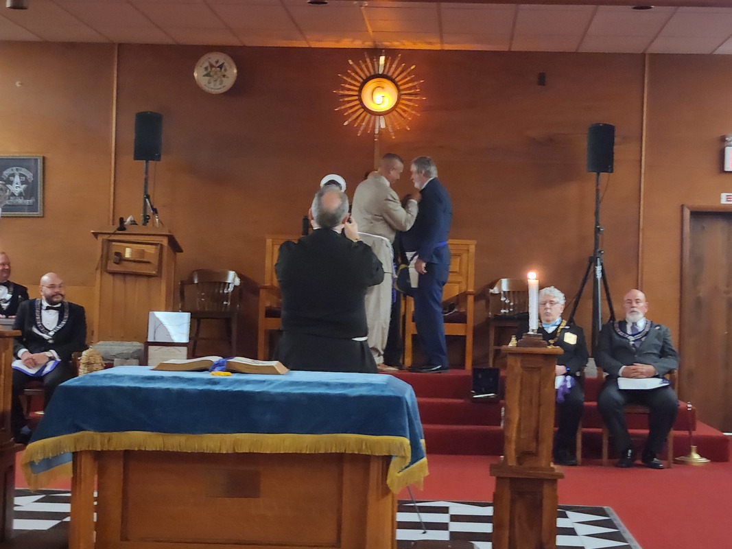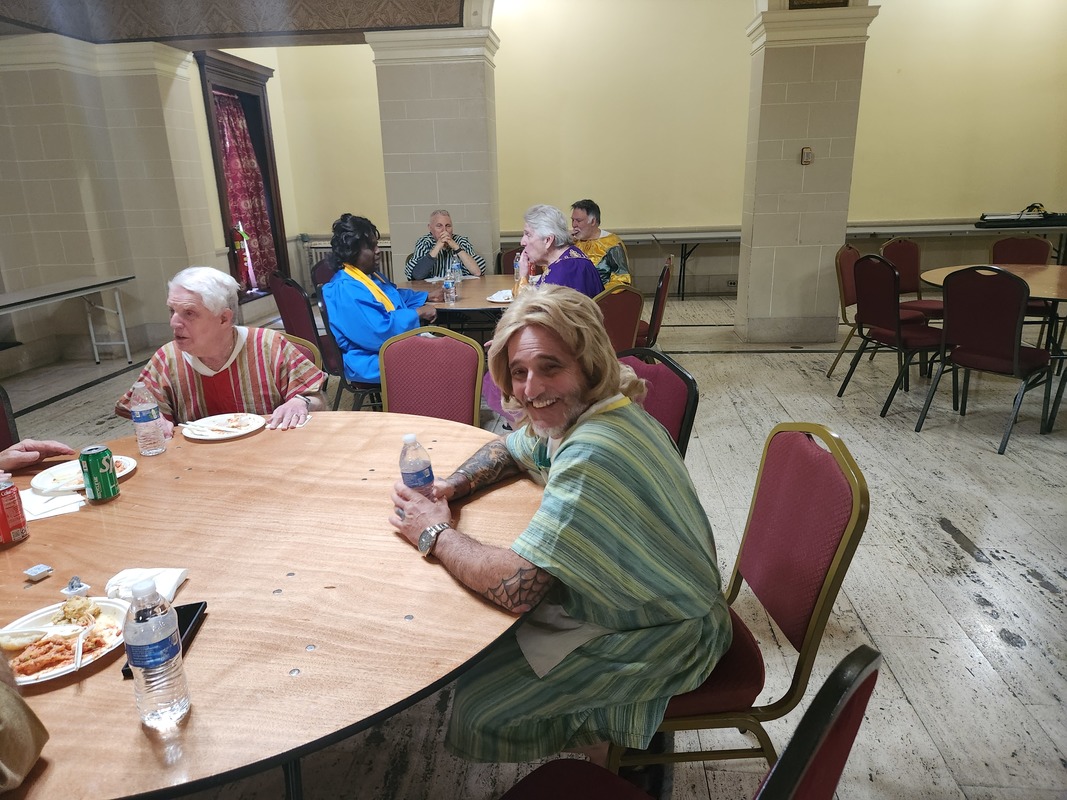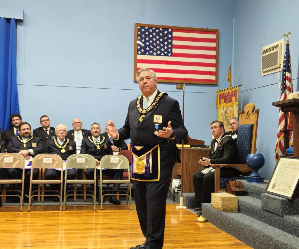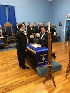 Benjamin Franklin speaking about his history as a Mason at a Union Table Lodge
