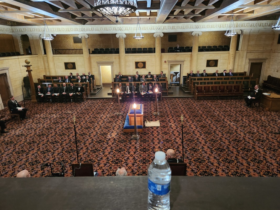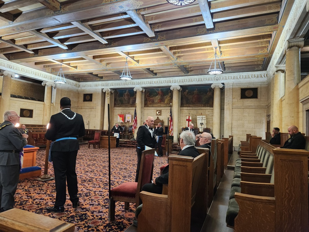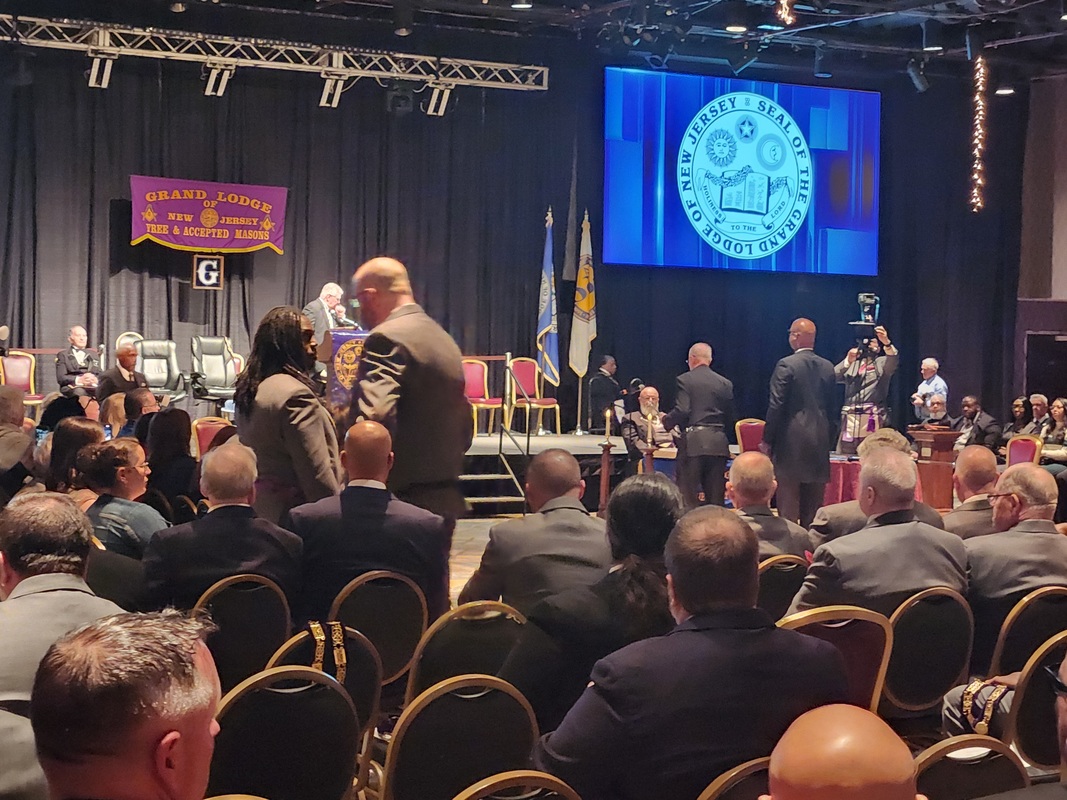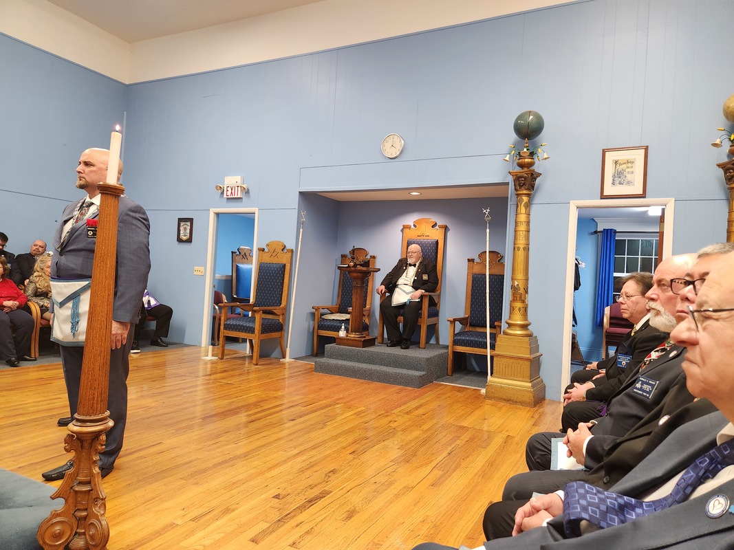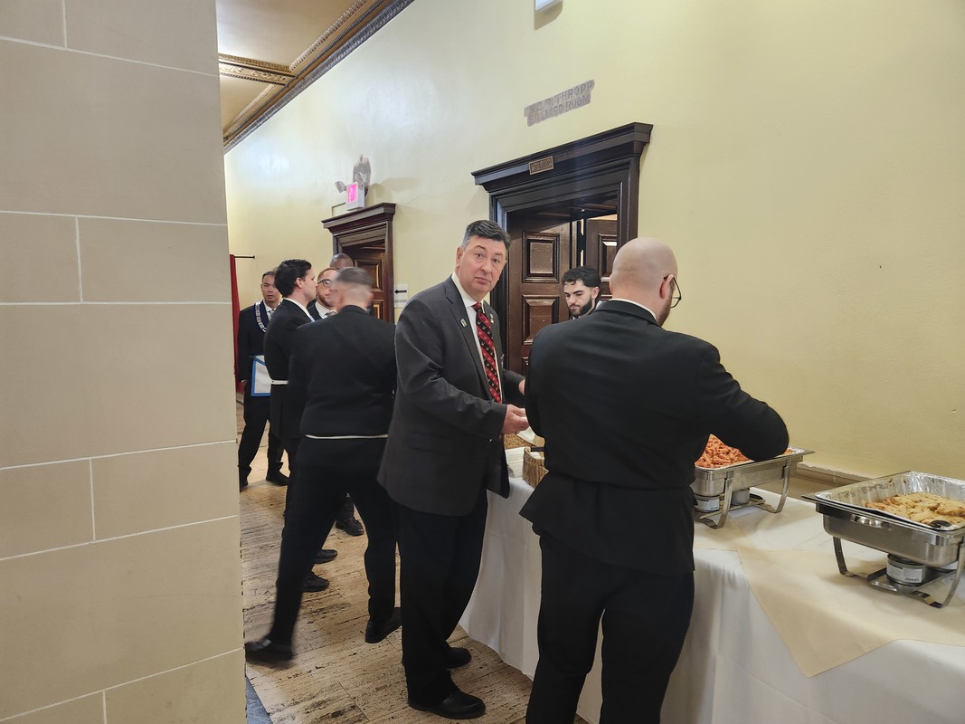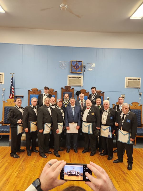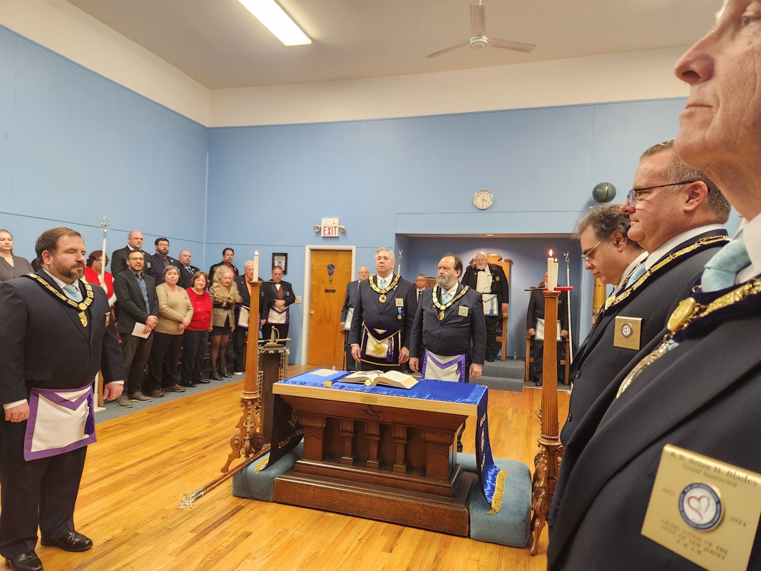 Benjamin Franklin speaking about his history as a Mason at a Union Table Lodge