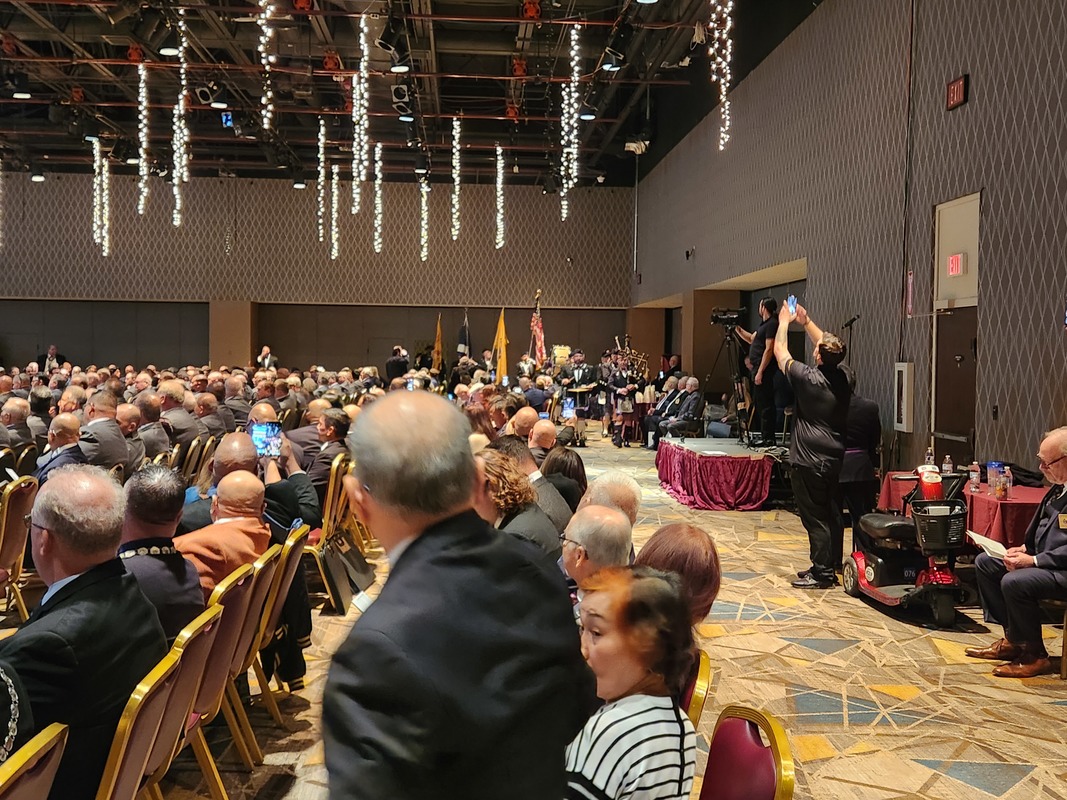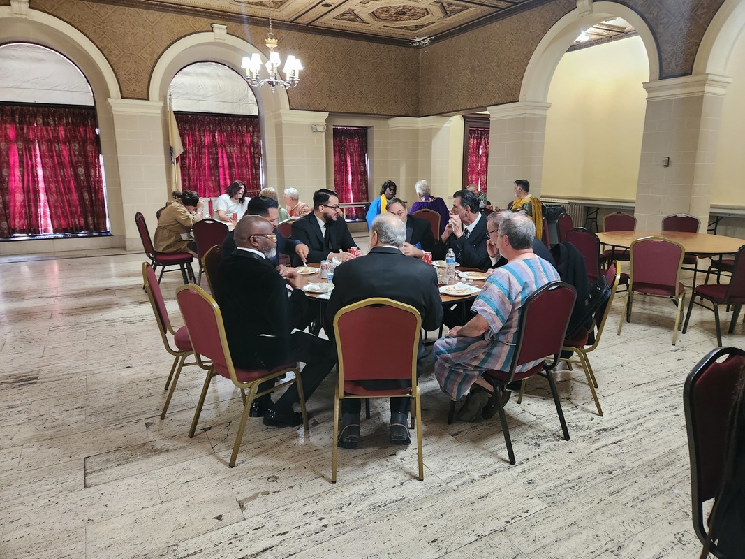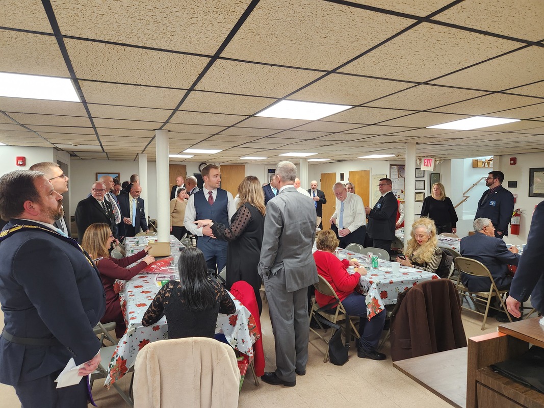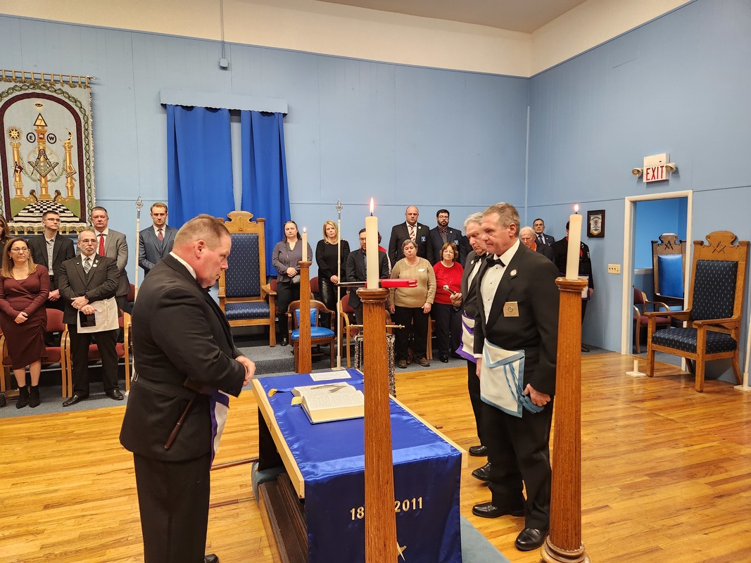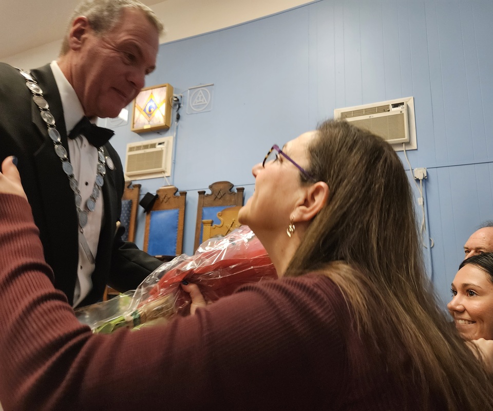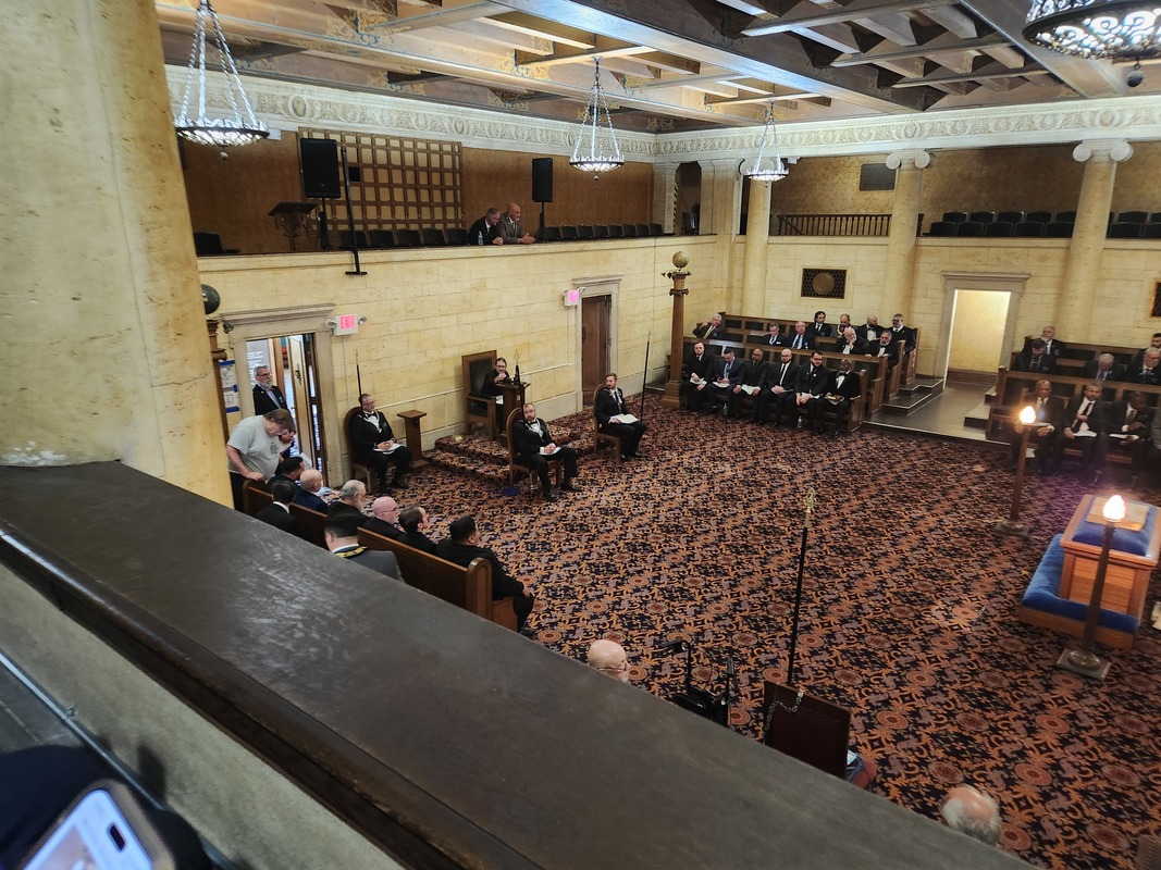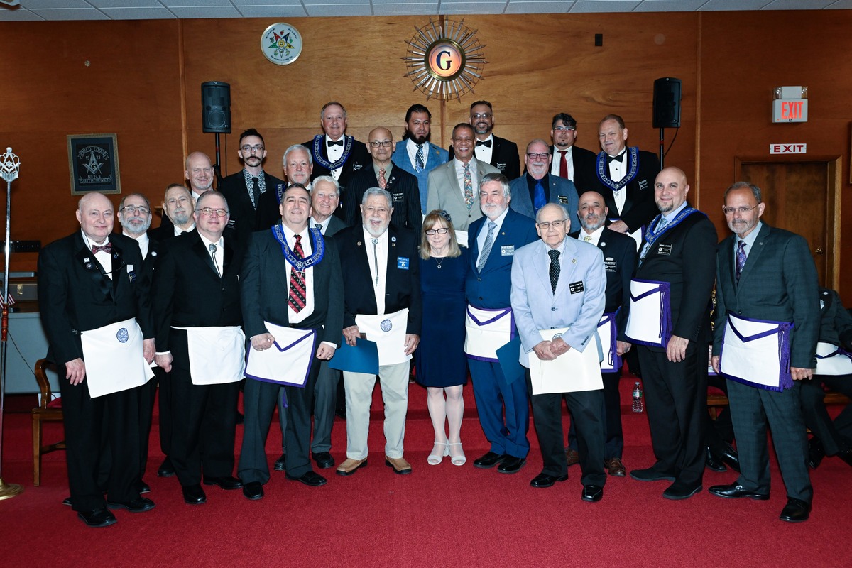 Benjamin Franklin speaking about his history as a Mason at a Union Table Lodge