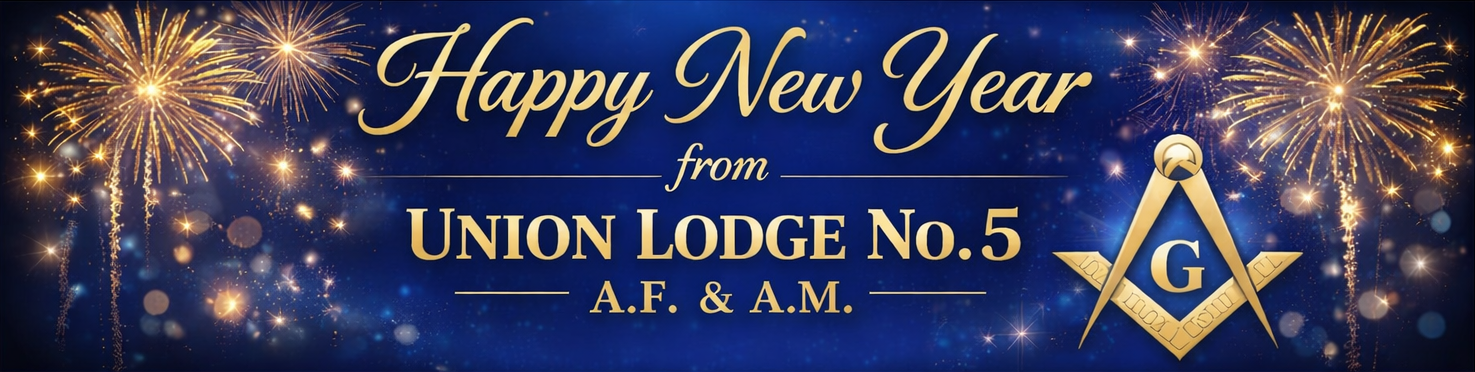 As we welcome a new year, Union Lodge No. 5, A.F. & A.M. extends our warmest wishes to you and your loved ones. May the coming year bring renewed hope, good health, prosperity, and continued fellowship. We are grateful for the bonds we share and look forward to another year guided by Brotherly Love, Relief, and Truth. Happy New Year, |
