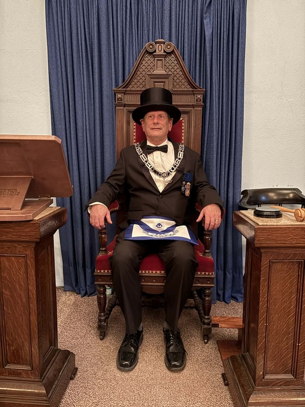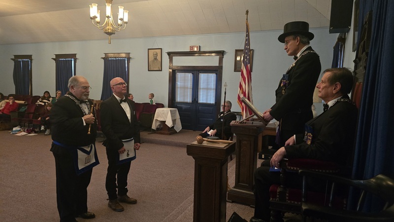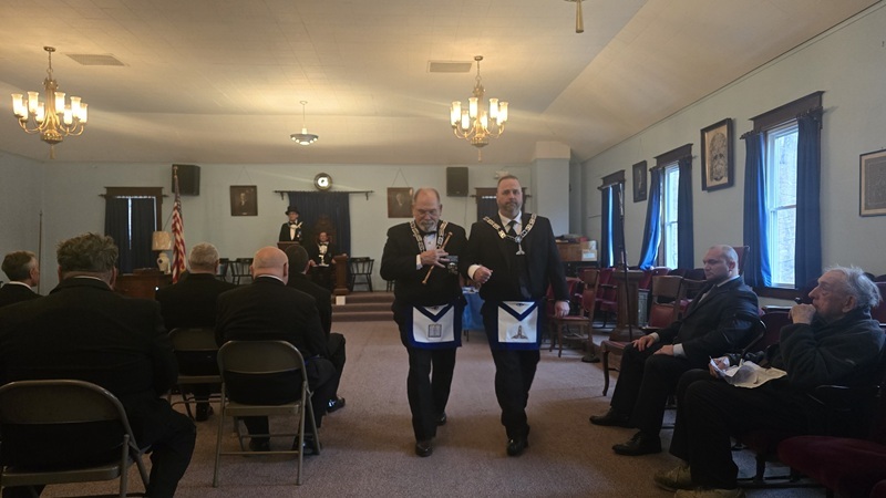 WB Peter Van Doren Junior Warden for 2026 escorted by WB James A. Locicero