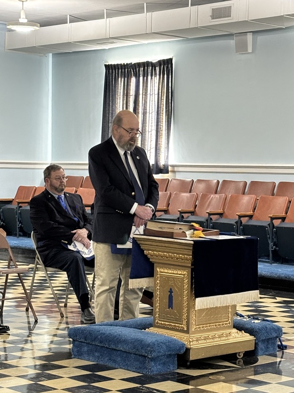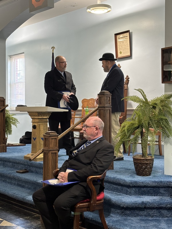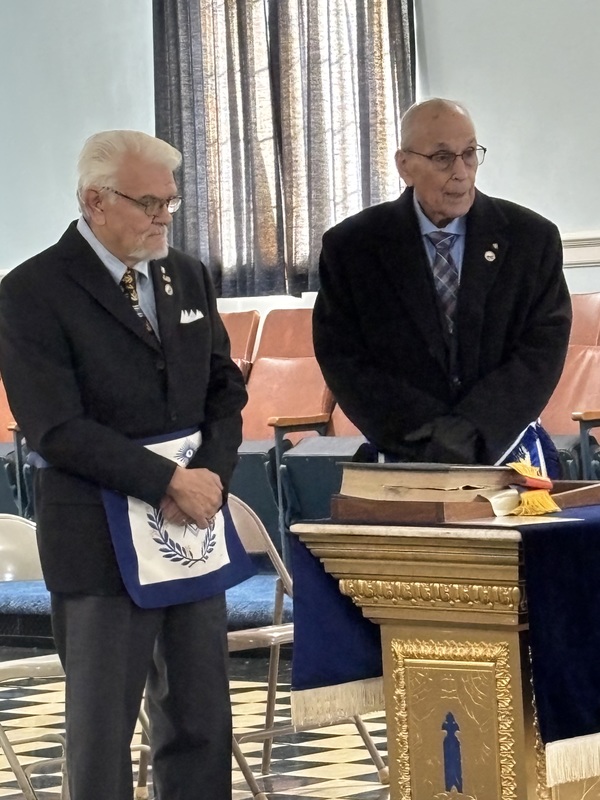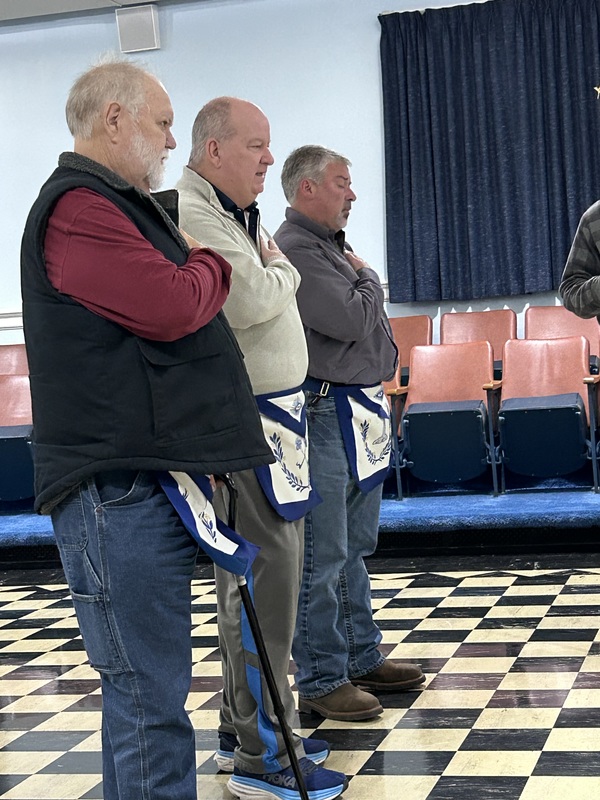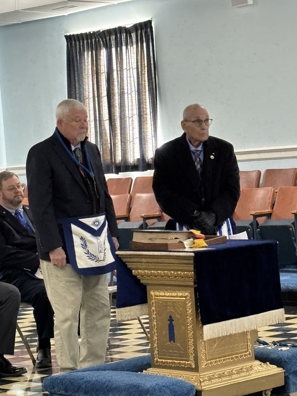 | An installation of the 2026 officers of the lodge was held at 10:00 A.M. on December 20, 2025, in an open installation at the lodge. Installing Officer was WB Clifford Shrewsbury, 22nd DDGM,; Installing Marshall was WB Marvin Preble, PM. Installing Chaplain was WB Daryl Crowder, PM. Installing Secretary was WB Eddie Bruce ("Bruce") Needham, PM.Brother John Dudley ("JD") Paschal was escorted to the Altar and was presented with the Apron and Jewel of his office as Master.He was then escorted to the East by the Installing Marshal, WB Marvin Preble, PM..Arriving in the East, Brother JD was presented with the Gavel and Charter of the lodge and his hat by the Installing Officer, WB Cliford Shrewsbury, DDGM 22nd District..Brother Melvin Hill was next escorted to the altar and presented with the Apron and Jewel of his office as Junior Warden..Brother Robert Kessler ("Rocky") Turner was next escorted to the altar and presented with the Apron and Jewel of his office as Secretary..WB John Durham was next escorted to the altar and presented with the Apron and Jewel of his office as Senior DeaconWB Joseph Jimmy ("Joe") Castellano was next escorted to the altar and presented with the Apron and Jewel of his office as Junior Deacon.Brother Samuel Walter "Sammy" Fulp was next escorted to the altar and presented with the Apron and Jewel of his office as Chaplain.Each brother was escorted to their seat or places by the Installing Marshall after each presentation WB JD Paschal then closed the Installation and thanked everyone present for their attendance and help. |