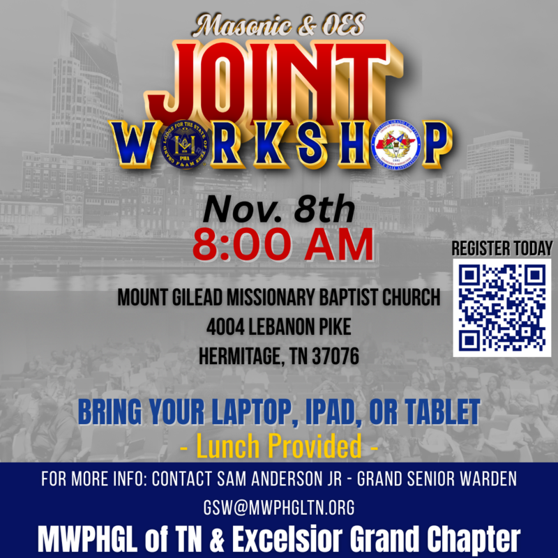 | Greeting Brothers, Attached is the link to the Joint Masonic and OES workshop November 8, 2025. Hosted at Mt. Gilead MBC at 8 am. If available that today can you register to attend. Fraternally, Bro. Dominick Holland Secretary https://docs.google.com/forms/d/e/1FAIpQLSft_op7RwgwE0tBYYGLGauiFKaBzFJBRN49_fOpkfnWFffKog/viewform |