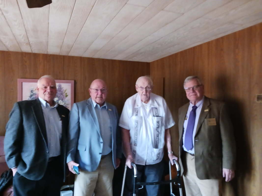 | Worshipful Master Archie D Canterbury, SD Michael D Henry (WM Elect) and SW Larry Wright traveled to Hale, Michigan on November 11th to present Brother Herbert Cole with his 75 year pin and certificate. They were joined by the Grand Master of the State of Michigan MW William Sauget. Herbert is 97 years old, lives independently in Hale, and still drives to Big Bob's Diner for lunch every day. It was a great day in Masonry. Herbert seemed very pleased with the visit, and we were able to buy Herbert lunch at nowhere else, but Big Bob's Diner. |