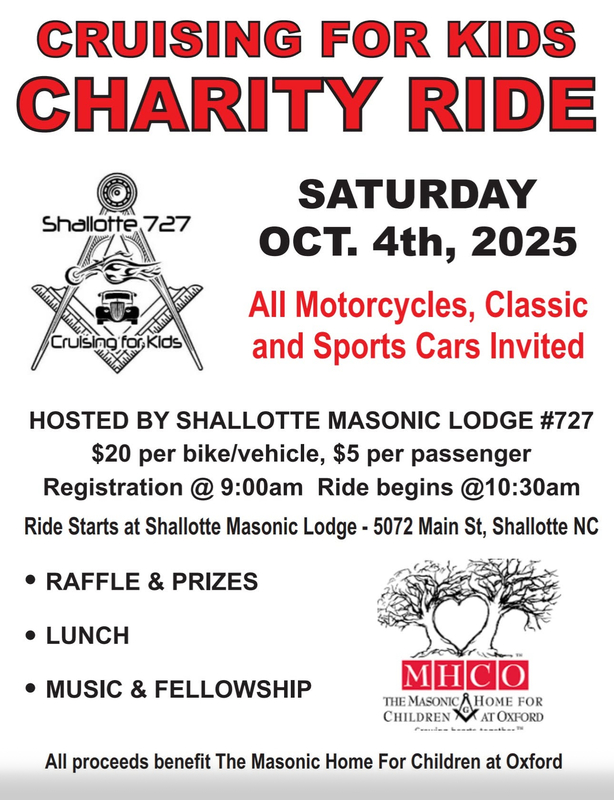 Please join us Saturday at Shallotte Masonic Lodge and support The Masonic Home for Children at Oxford.