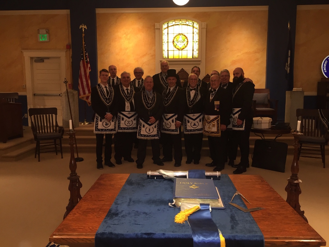 On Sunday January 5, 2020, PGM Walter Koechel installed a full line of officers at Temple Lodge 65, accompanied by friends, family, and curious onlookers. First row (left to right): Daniel Kamzik – SS, Frank Caolo -Treasurer, Scott Adelman – JW, Gary M. Sandler – WM, Bruce Duff – SW, Walter Ketchel Second row: Tom Fagan – Secretary, Mark Yurkiw – JD, Matt Caputo – Organist, Richard Ruggiano – Chaplain, Bradley Agar – Almoner, Steve Bowen – Historian, Luke Lamparelli Not Shown: Irving Lief – Marshall, Harvey Hartin – Tyler.