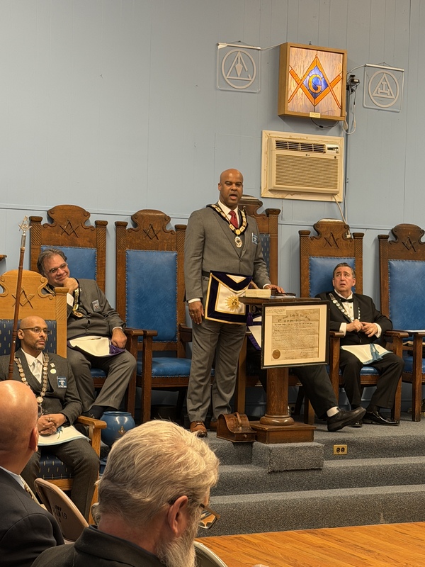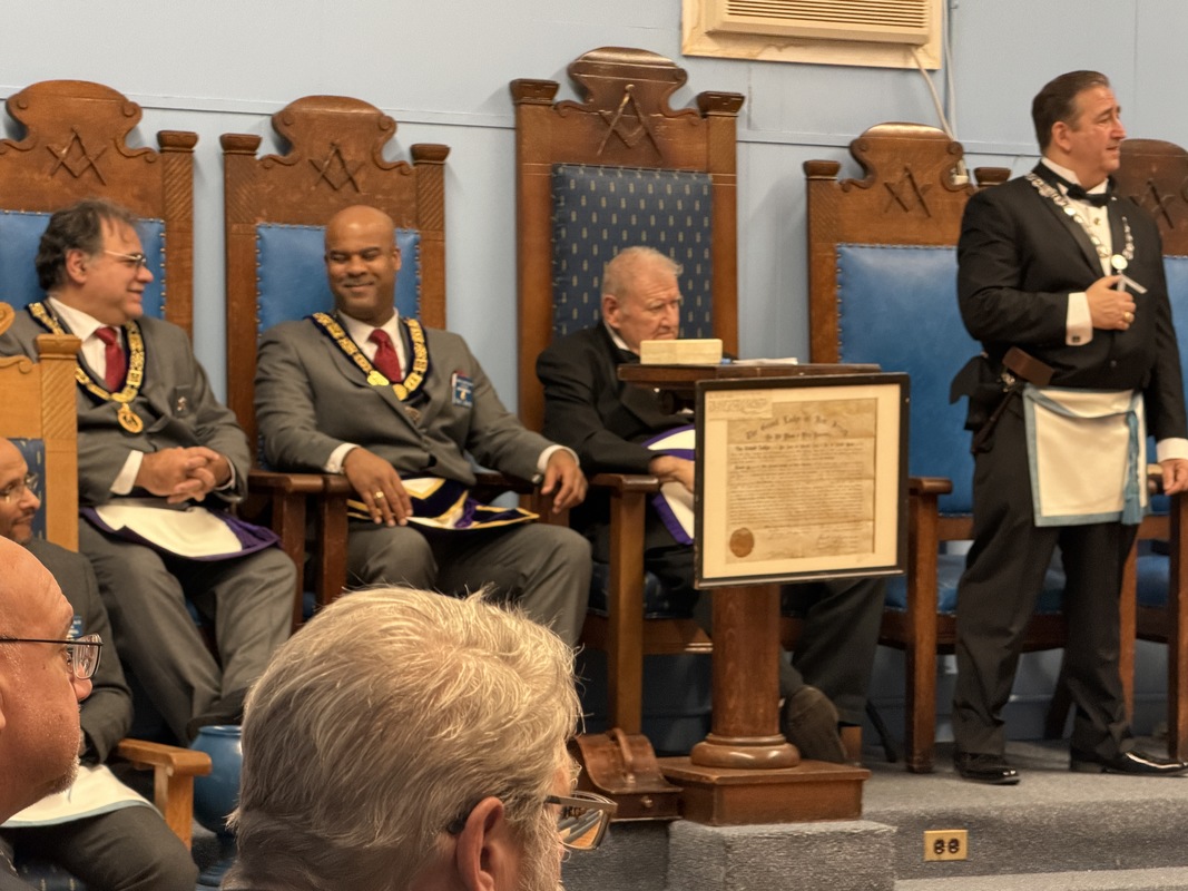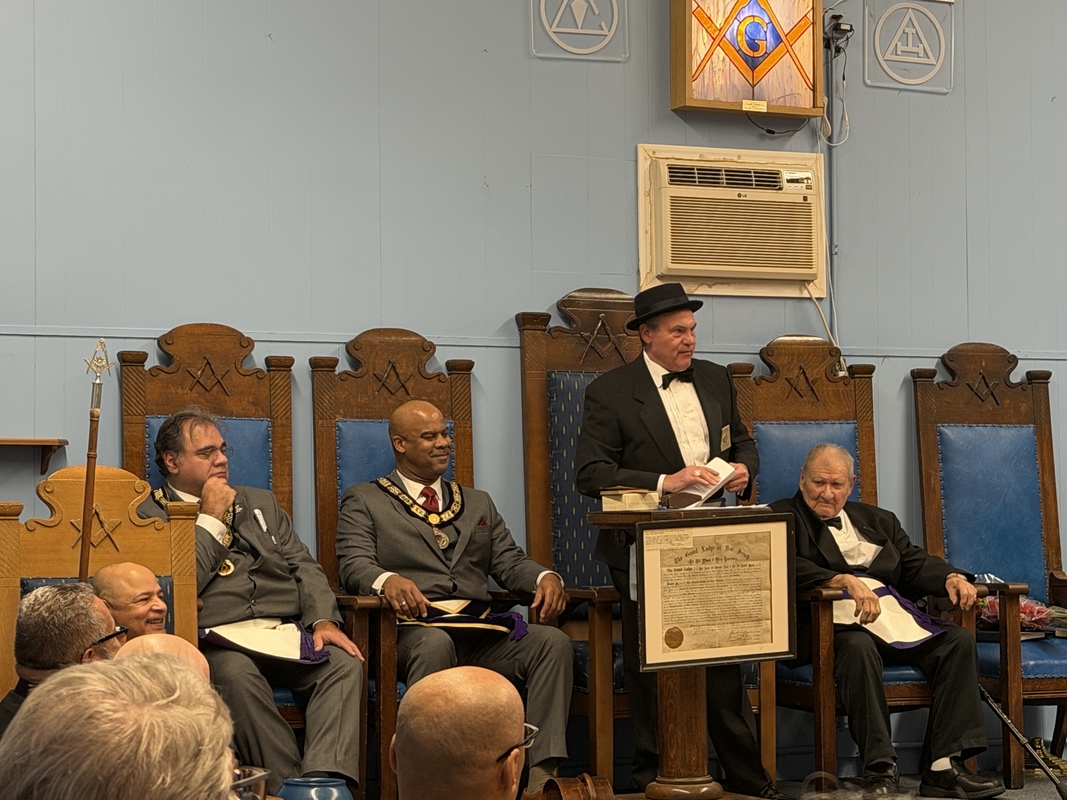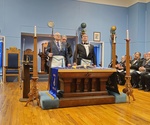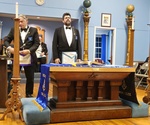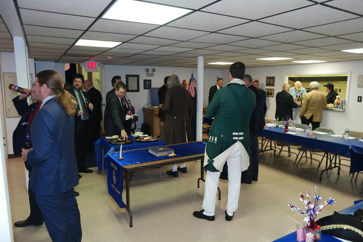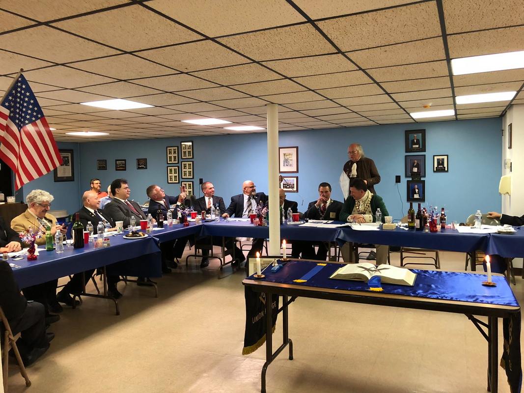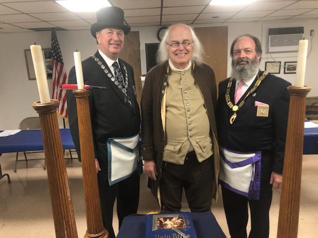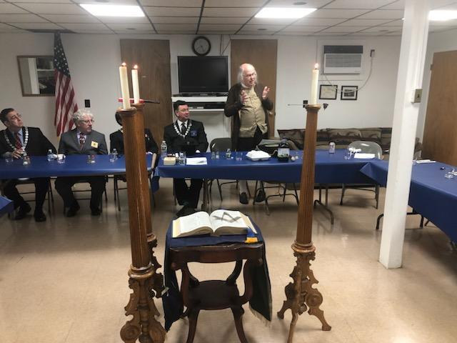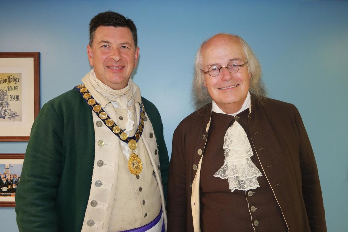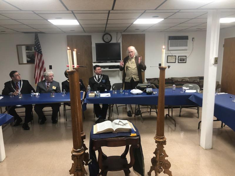 Benjamin Franklin speaking about his history as a Mason at a Union Table Lodge