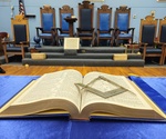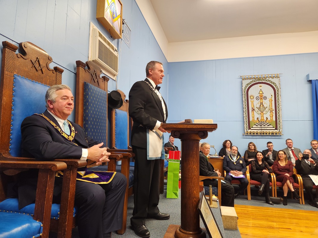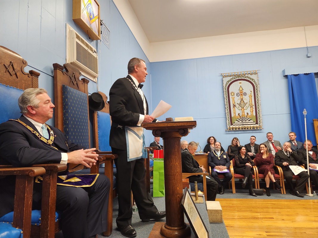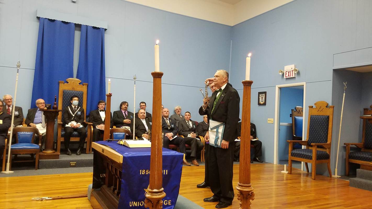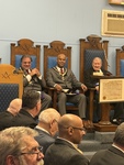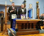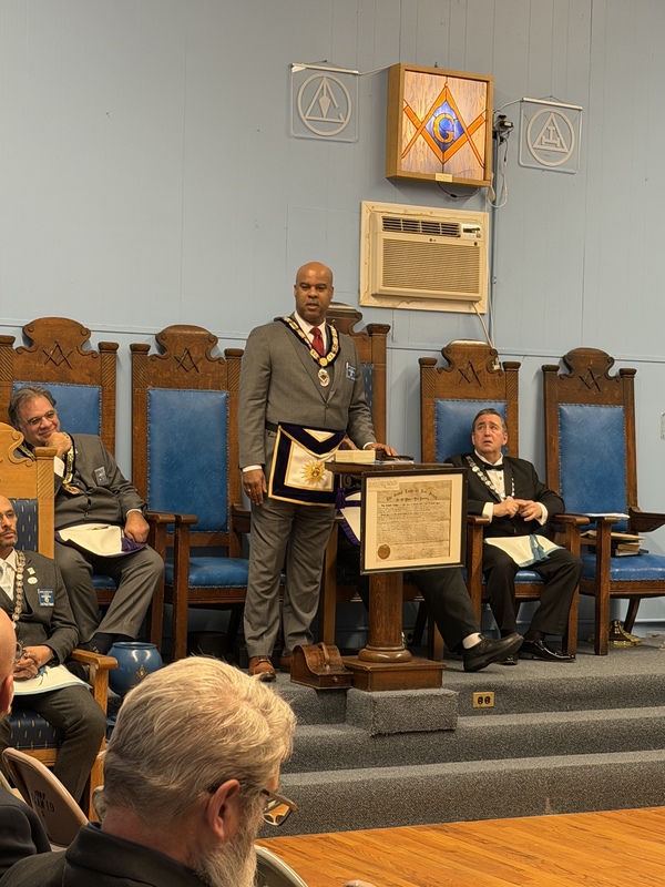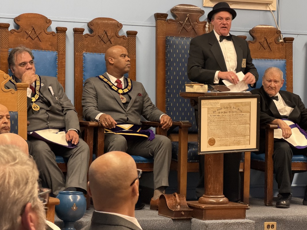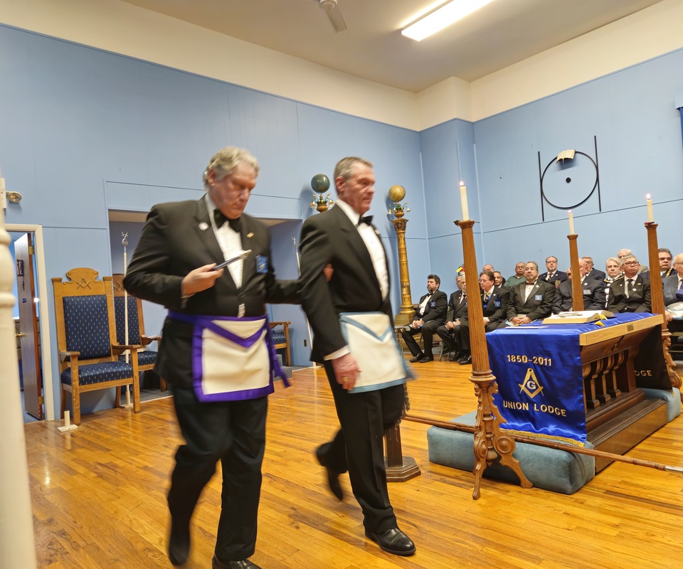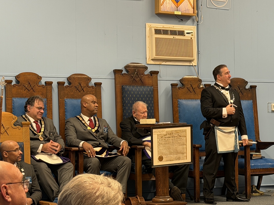 Benjamin Franklin speaking about his history as a Mason at a Union Table Lodge