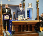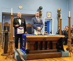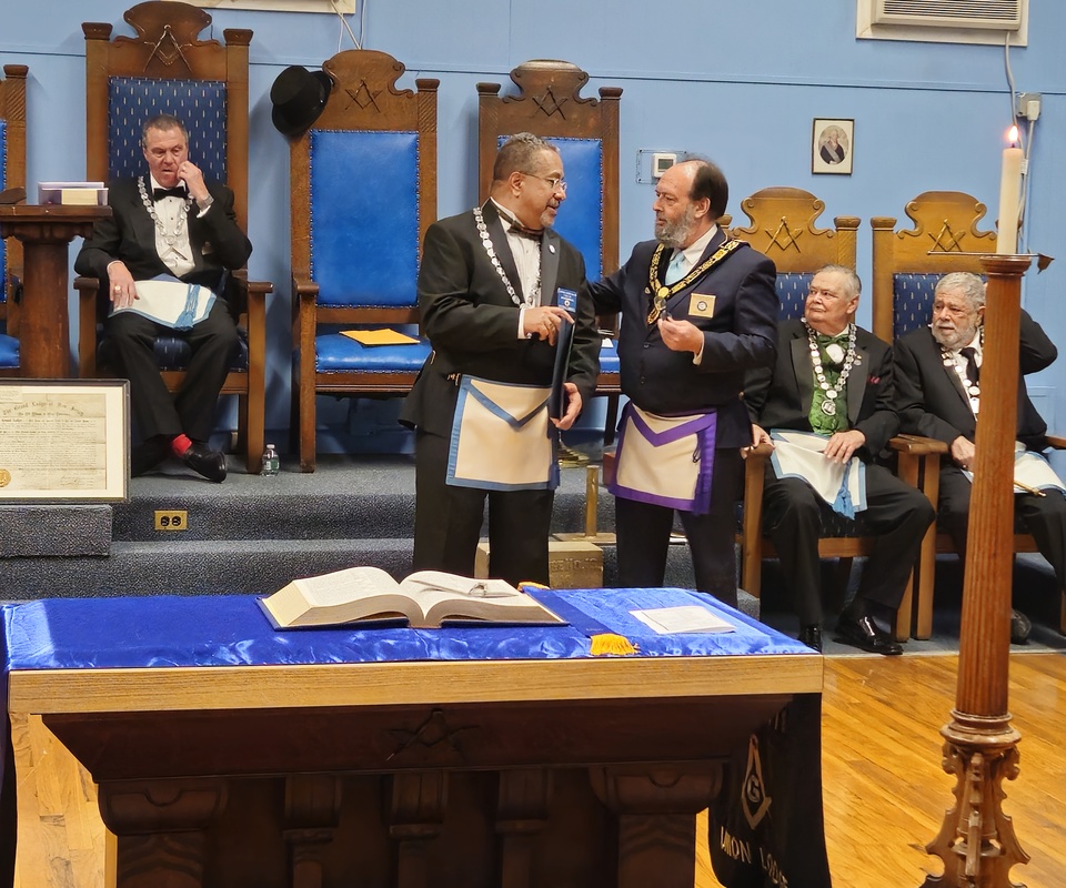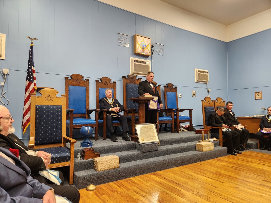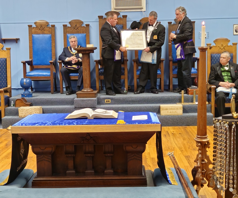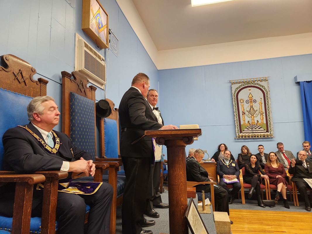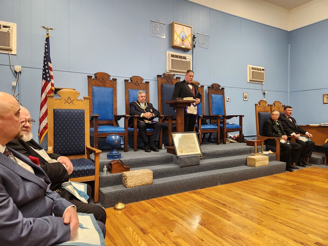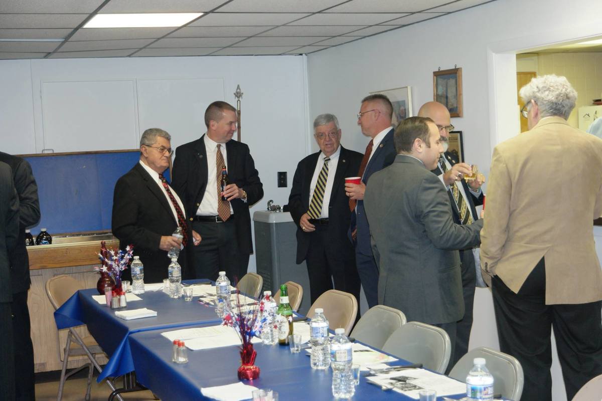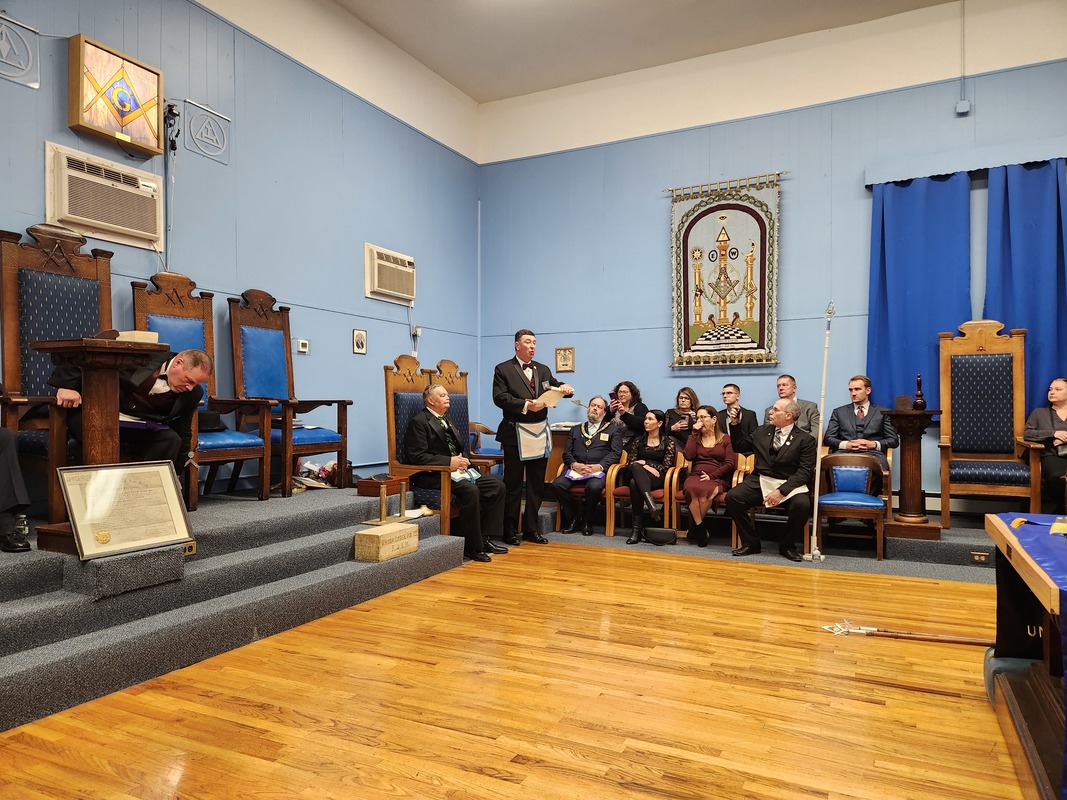 Benjamin Franklin speaking about his history as a Mason at a Union Table Lodge