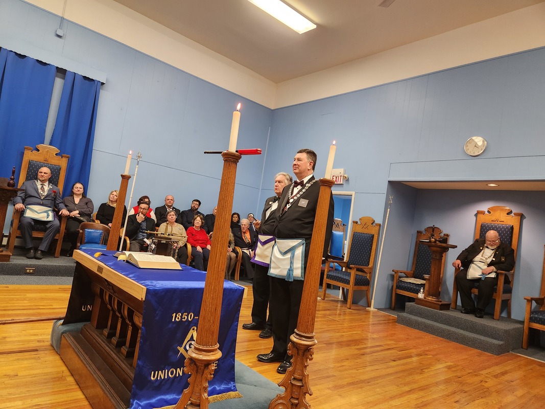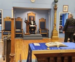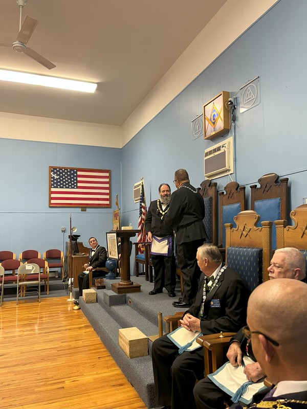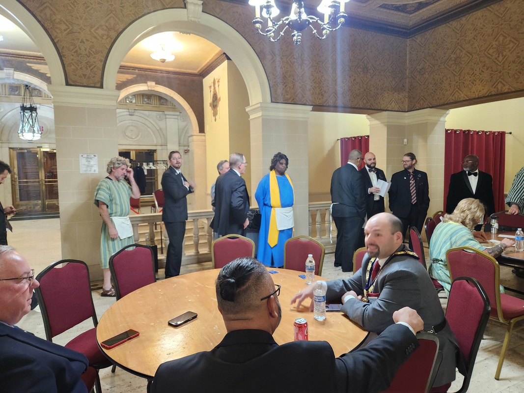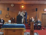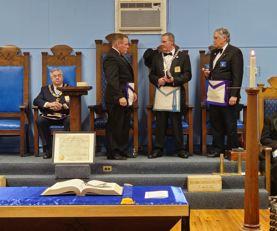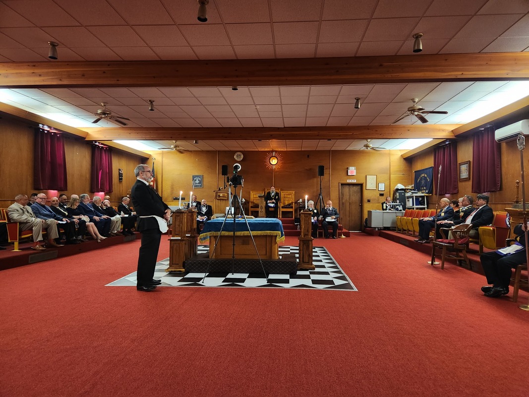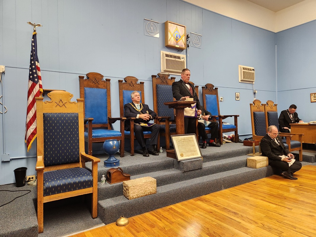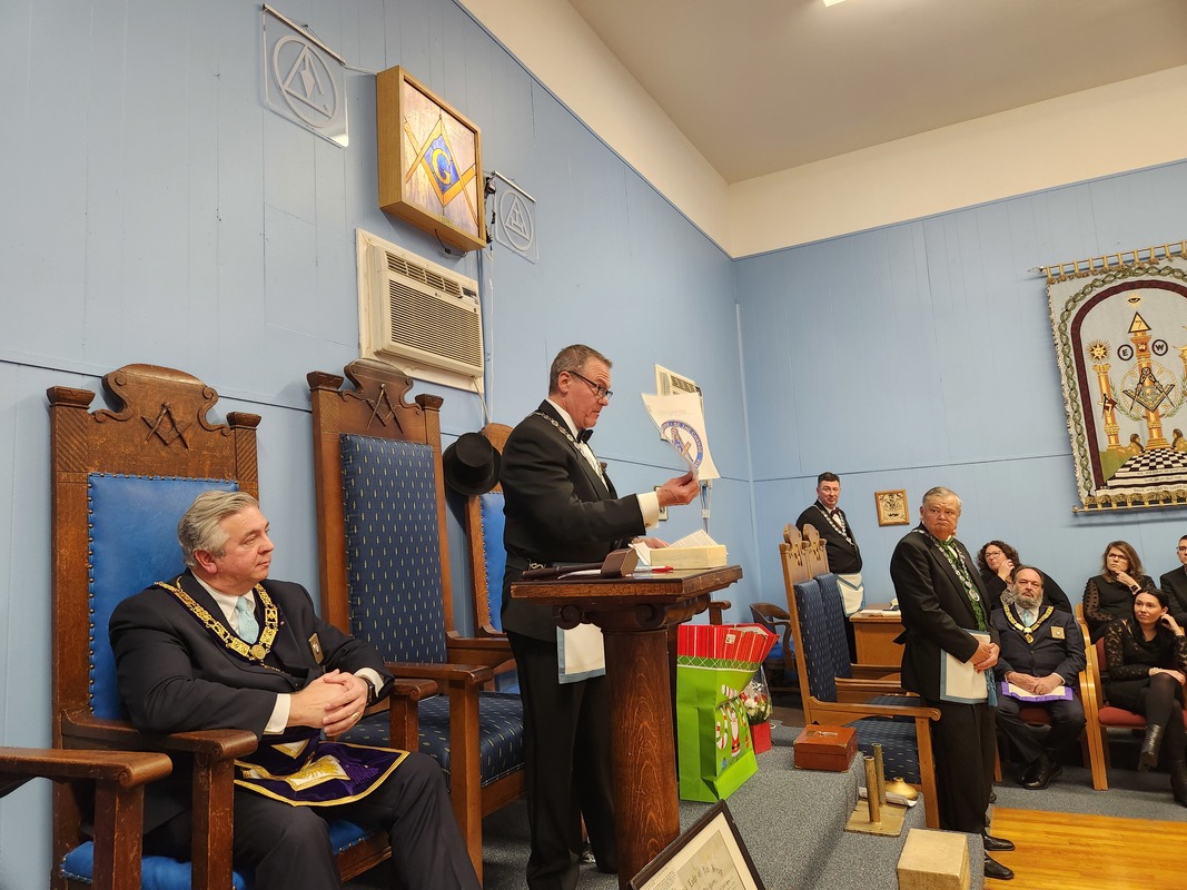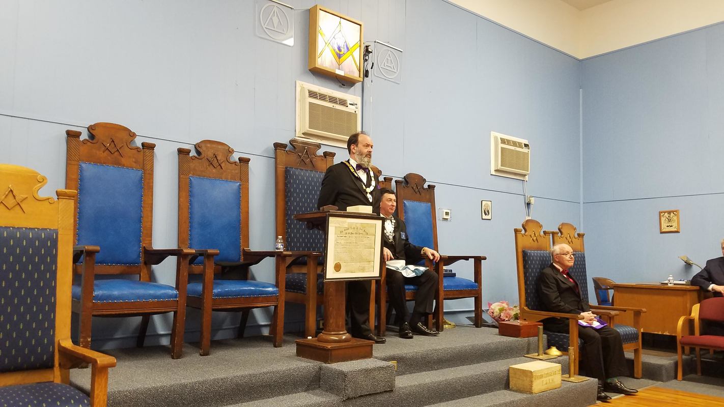 Benjamin Franklin speaking about his history as a Mason at a Union Table Lodge