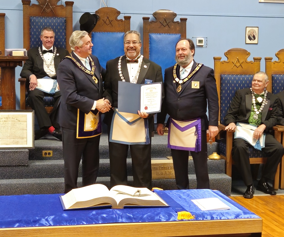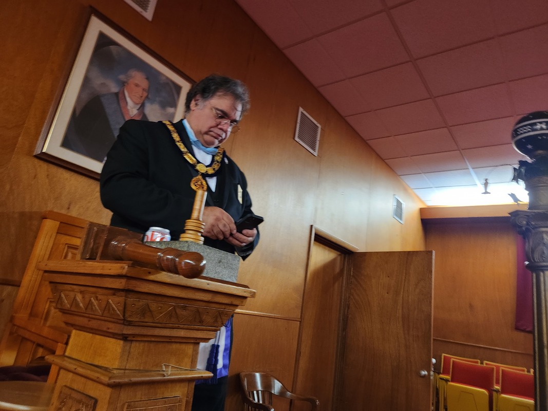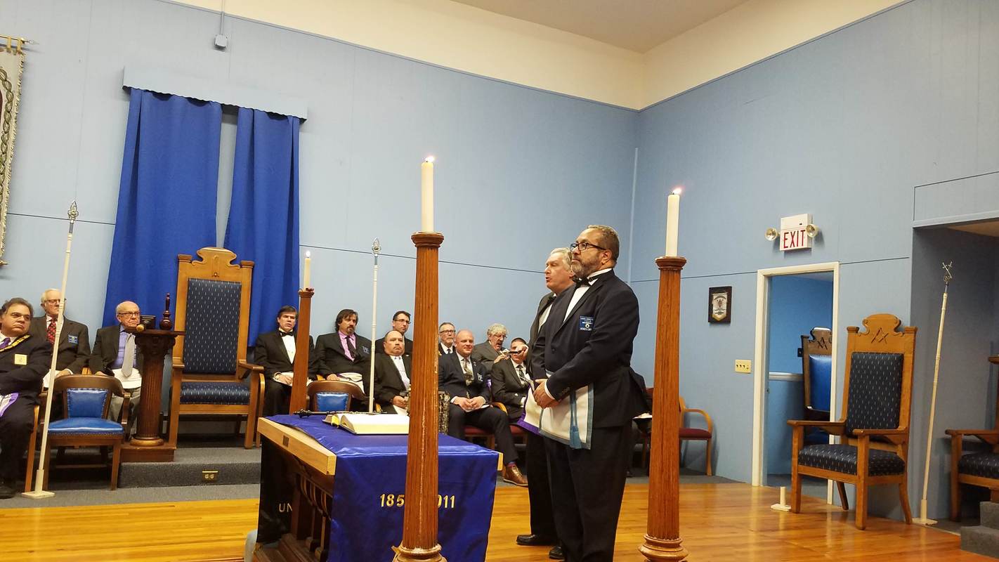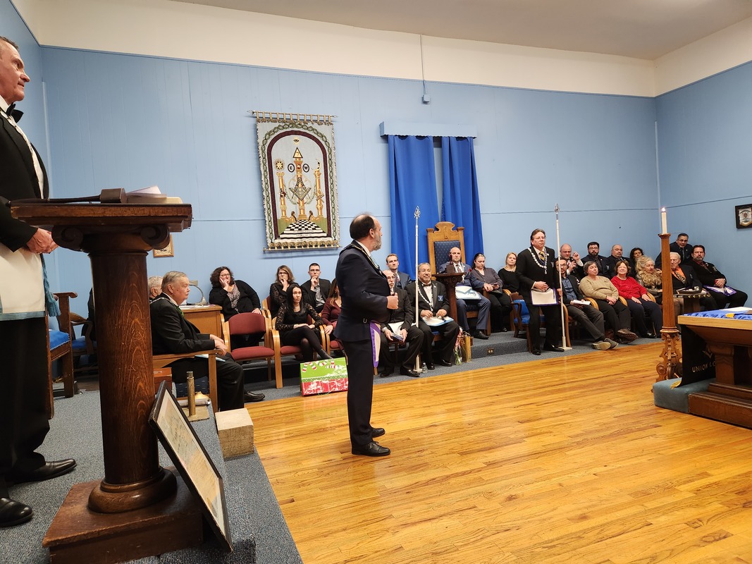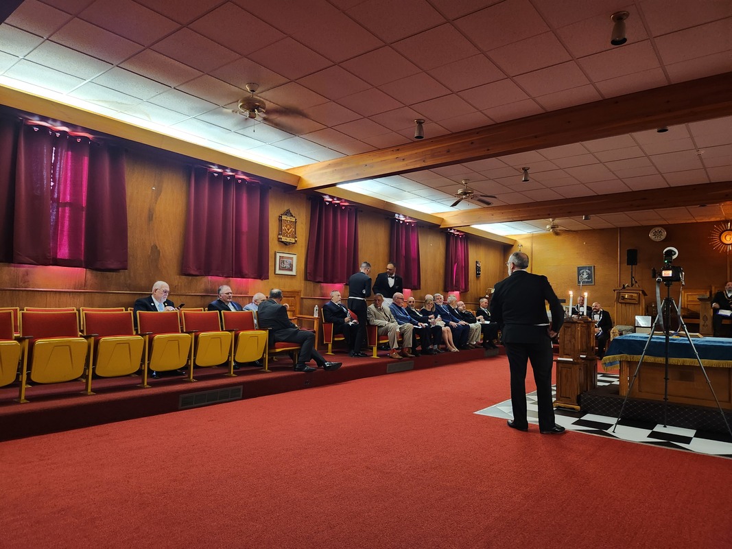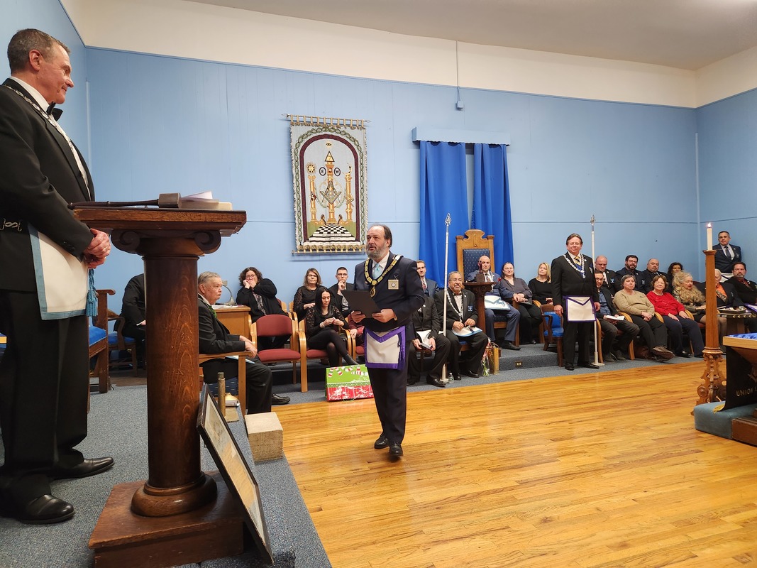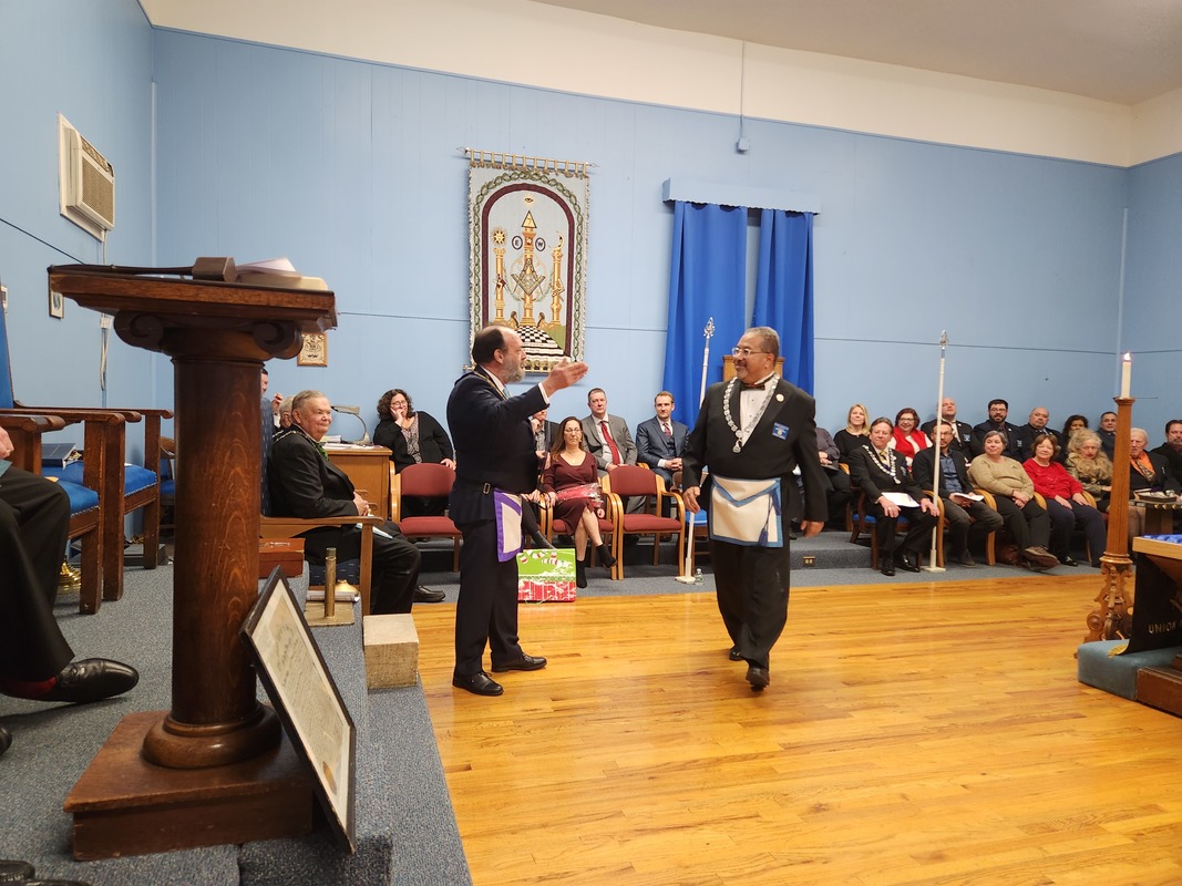 Benjamin Franklin speaking about his history as a Mason at a Union Table Lodge