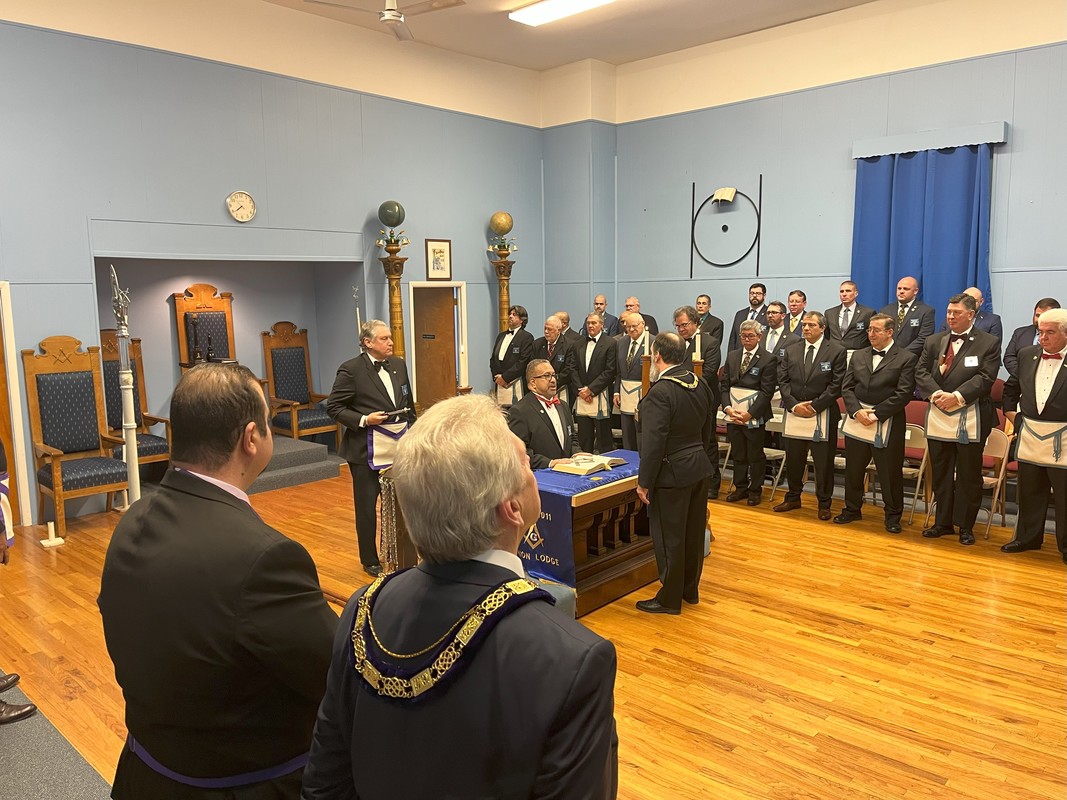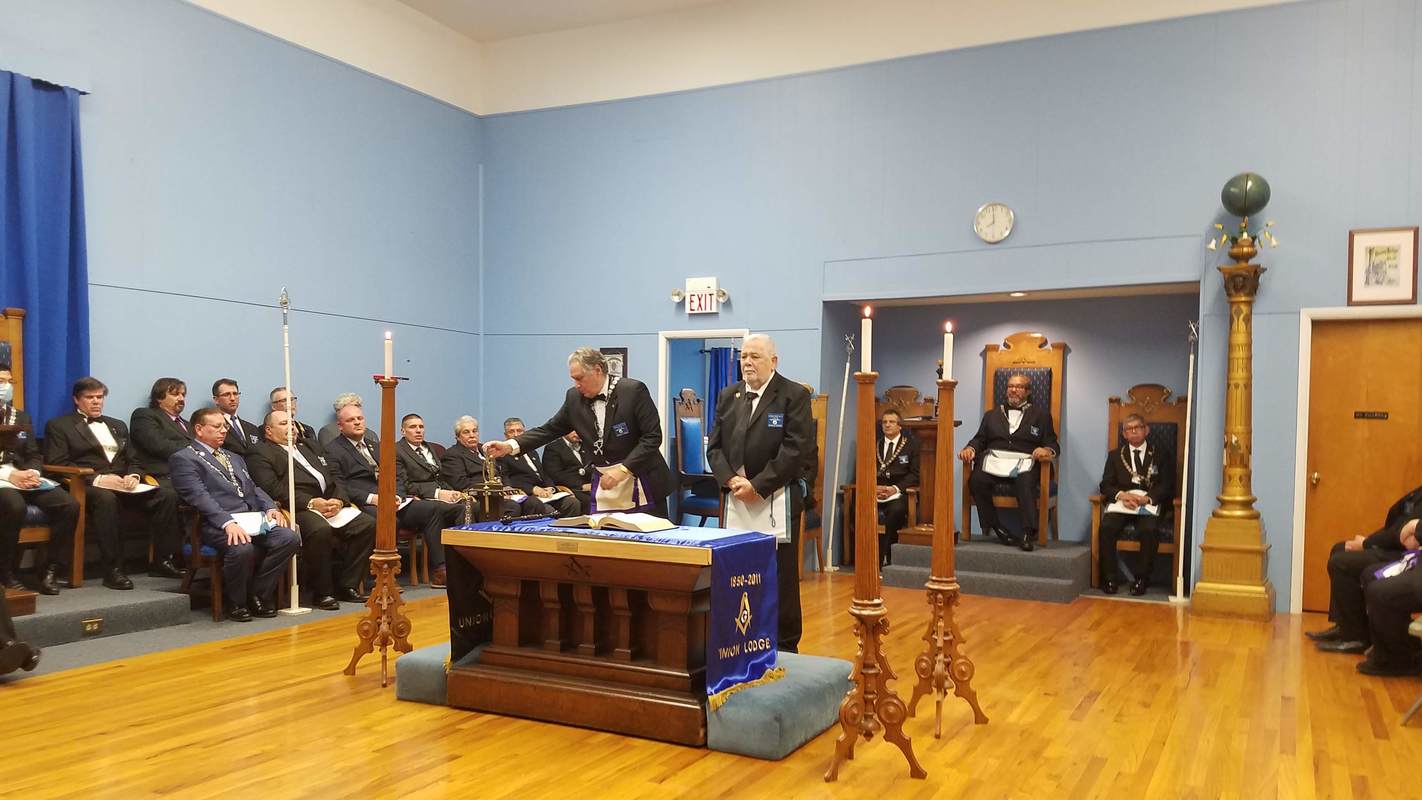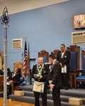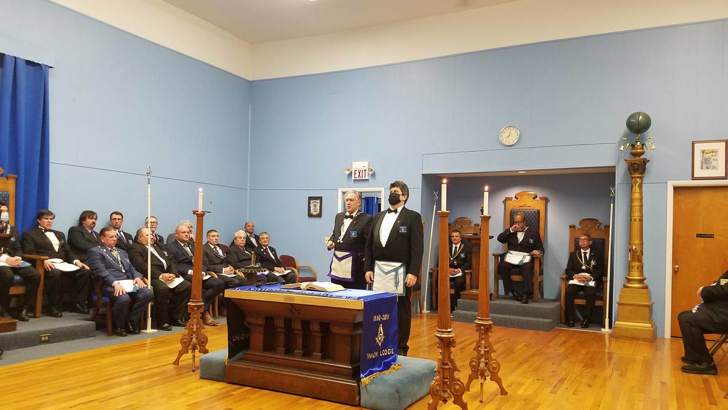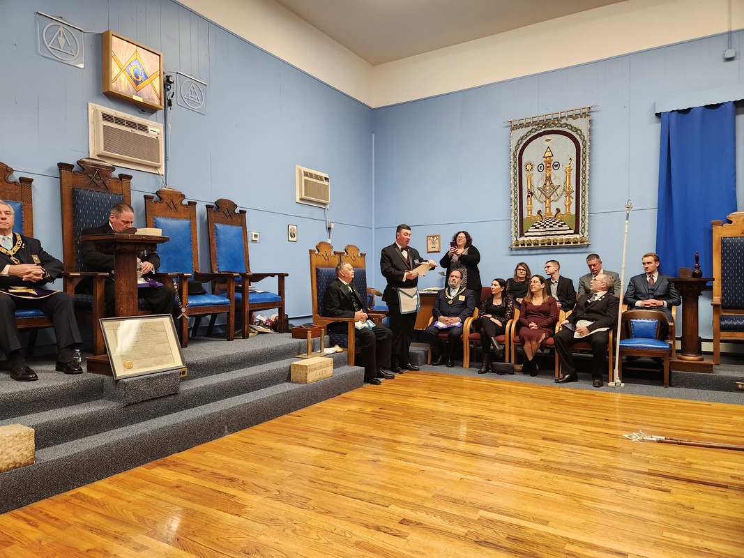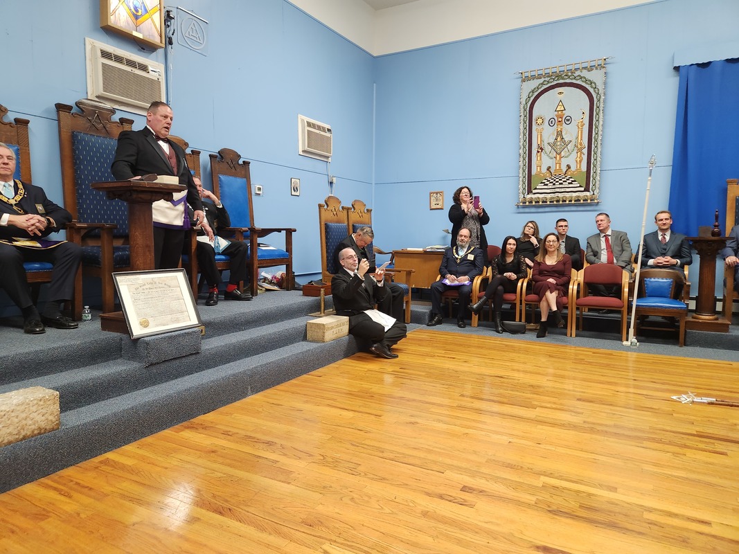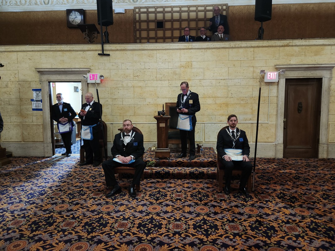 Benjamin Franklin speaking about his history as a Mason at a Union Table Lodge