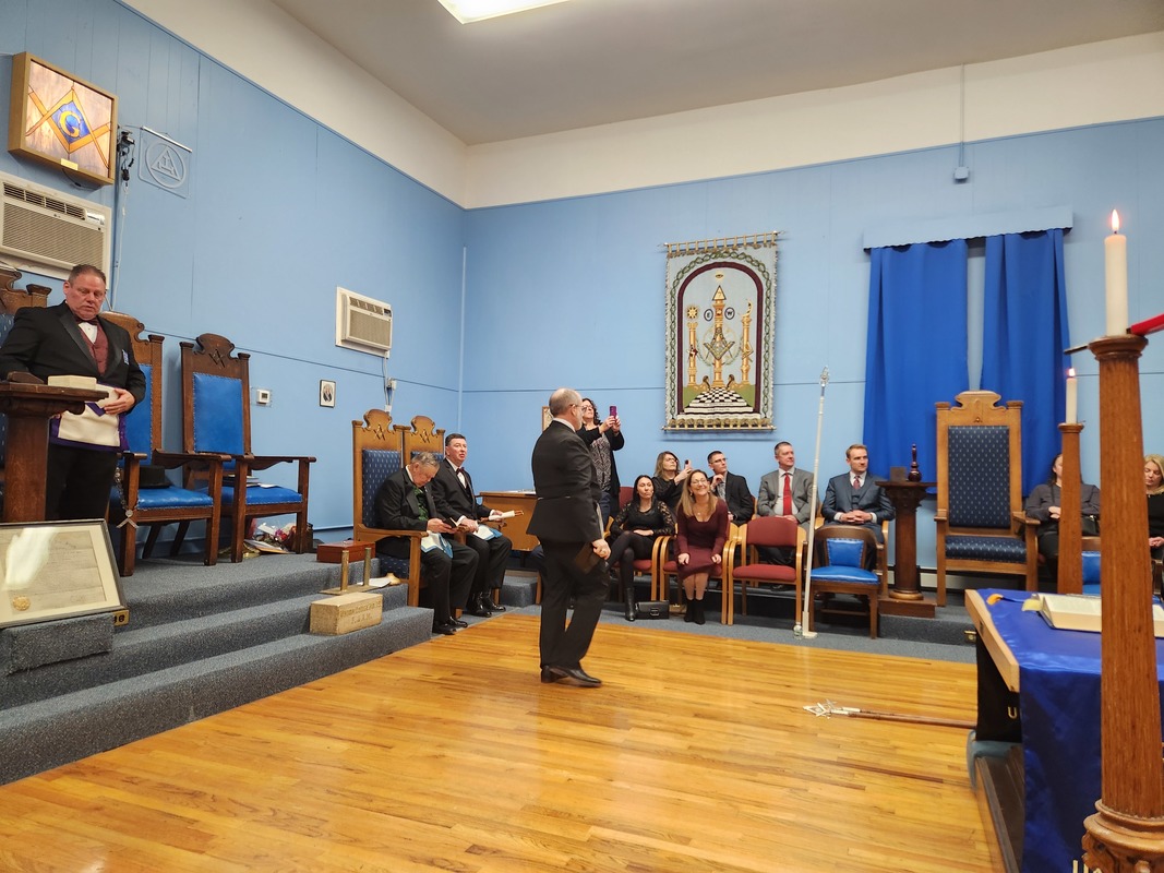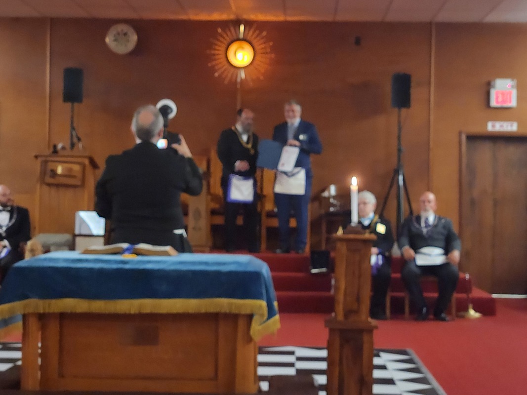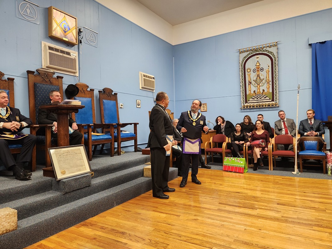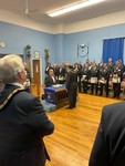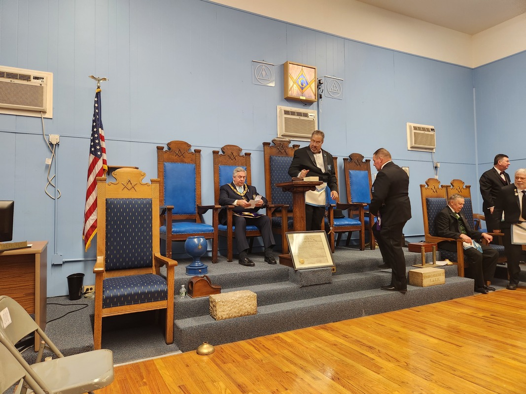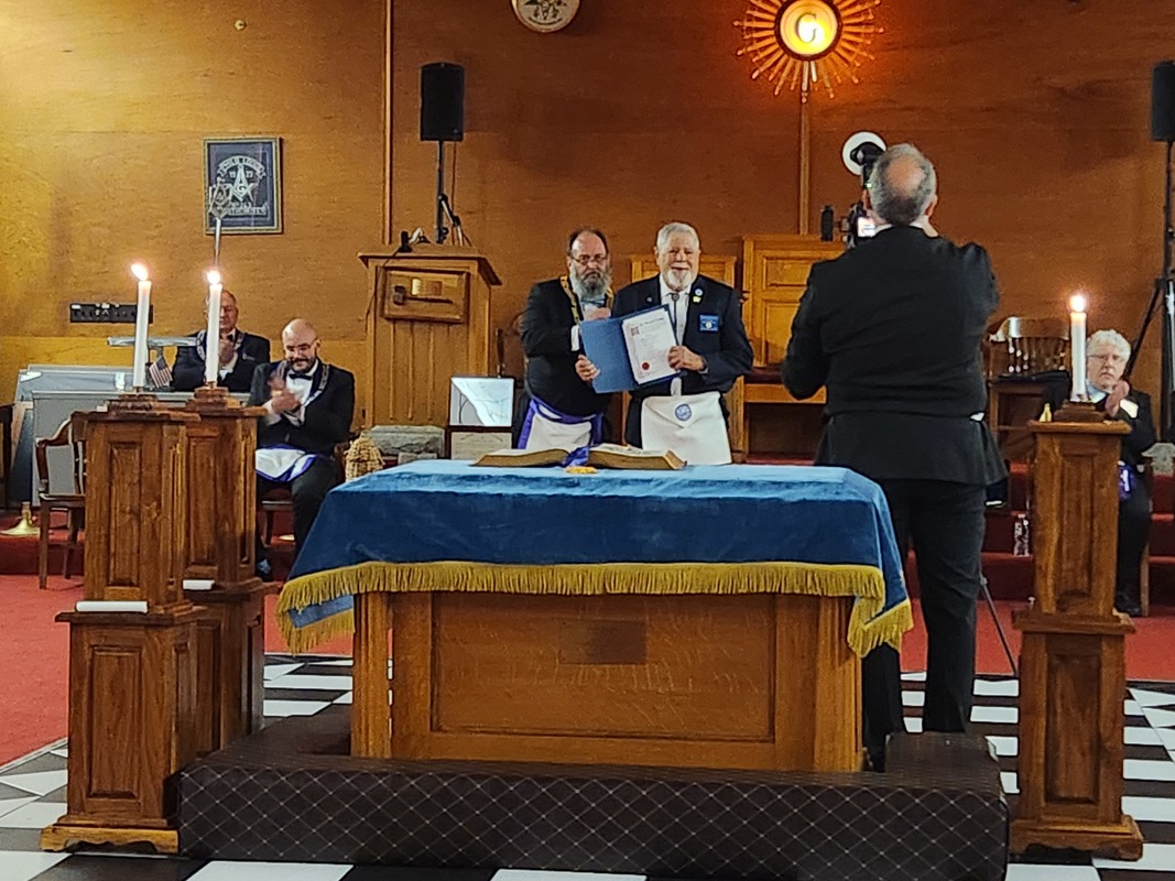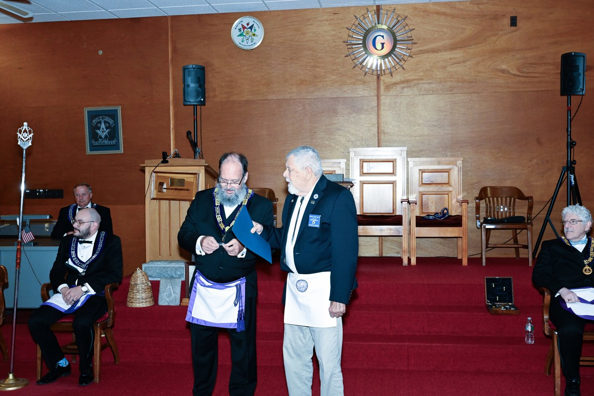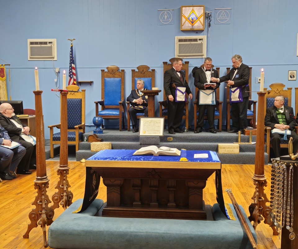 Benjamin Franklin speaking about his history as a Mason at a Union Table Lodge