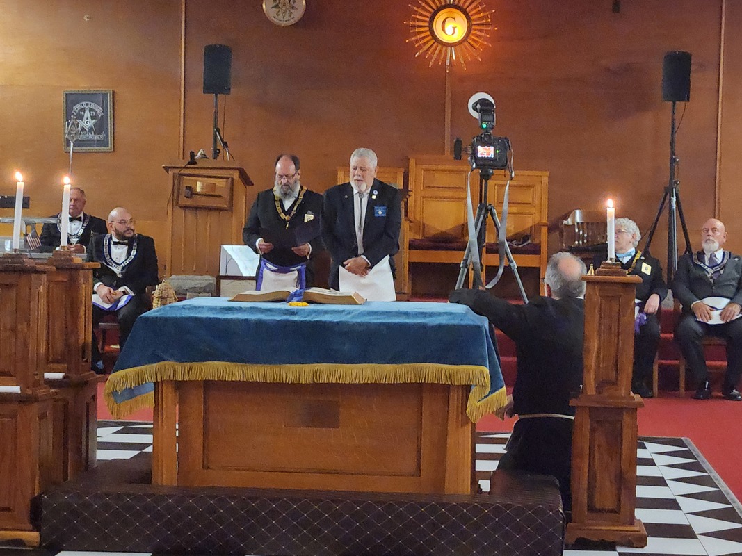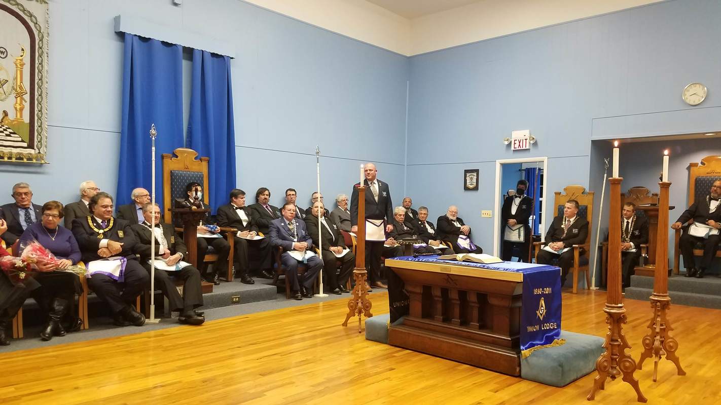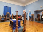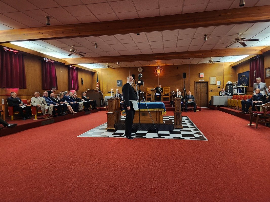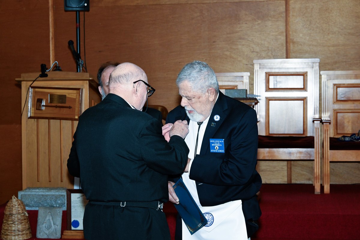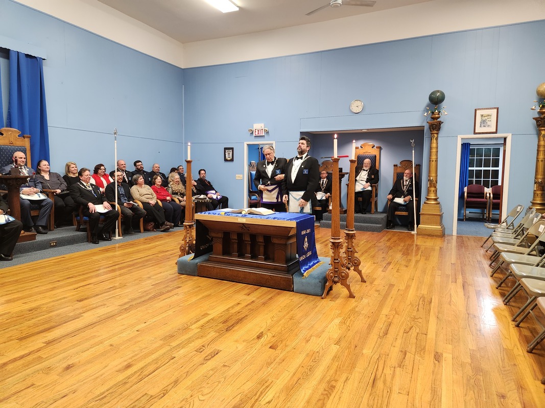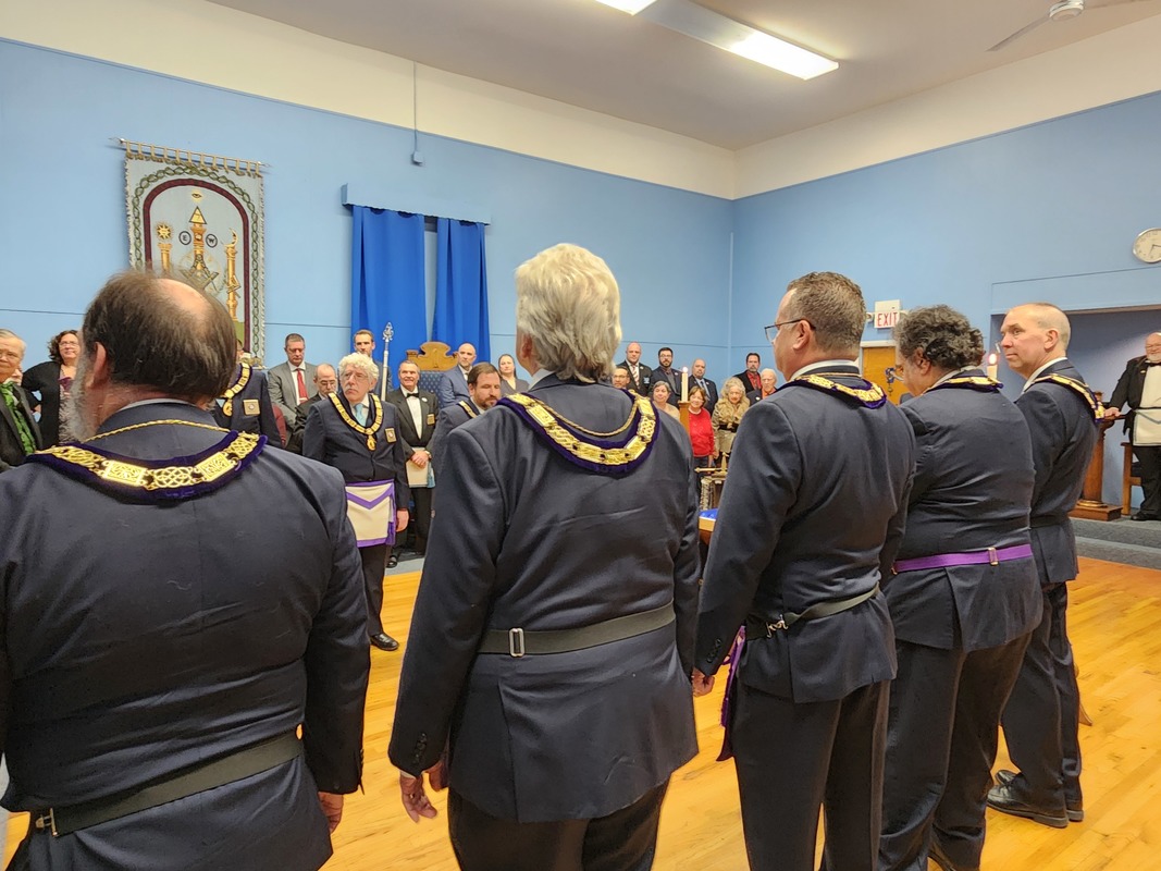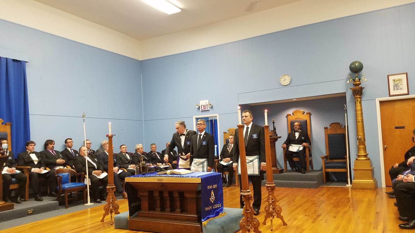 Benjamin Franklin speaking about his history as a Mason at a Union Table Lodge
