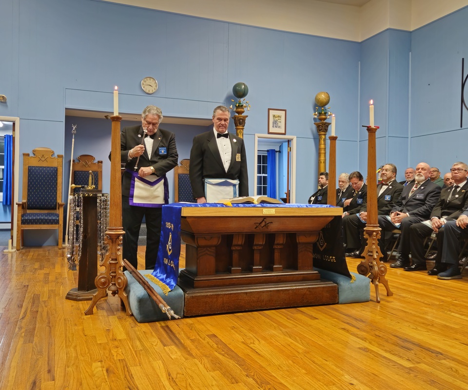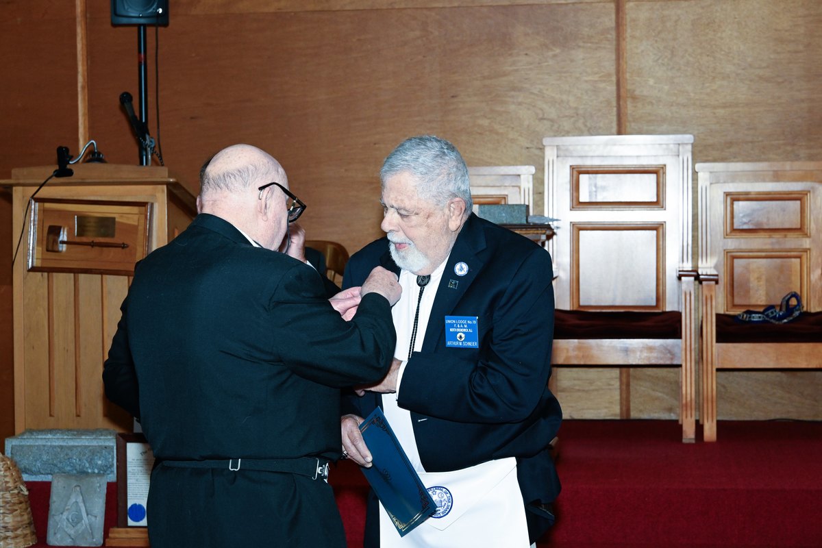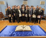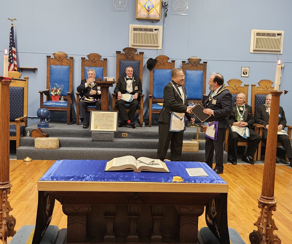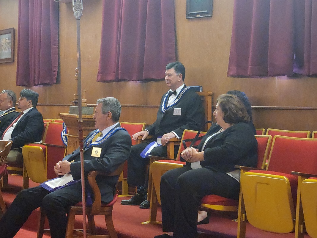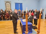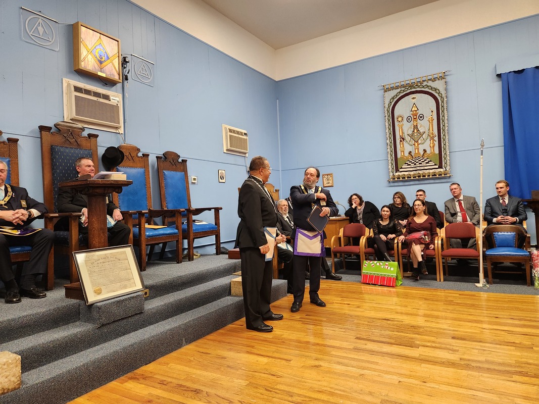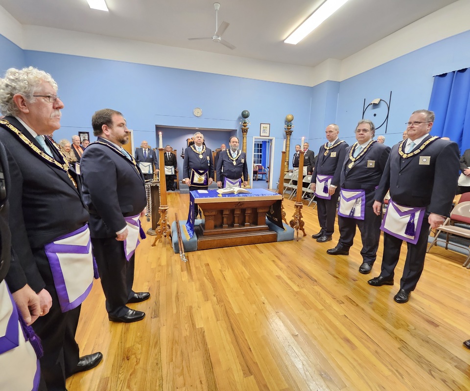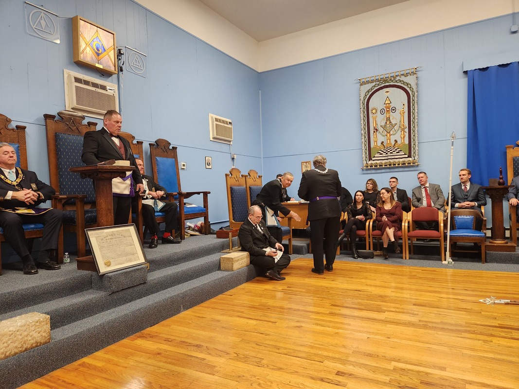 Benjamin Franklin speaking about his history as a Mason at a Union Table Lodge
