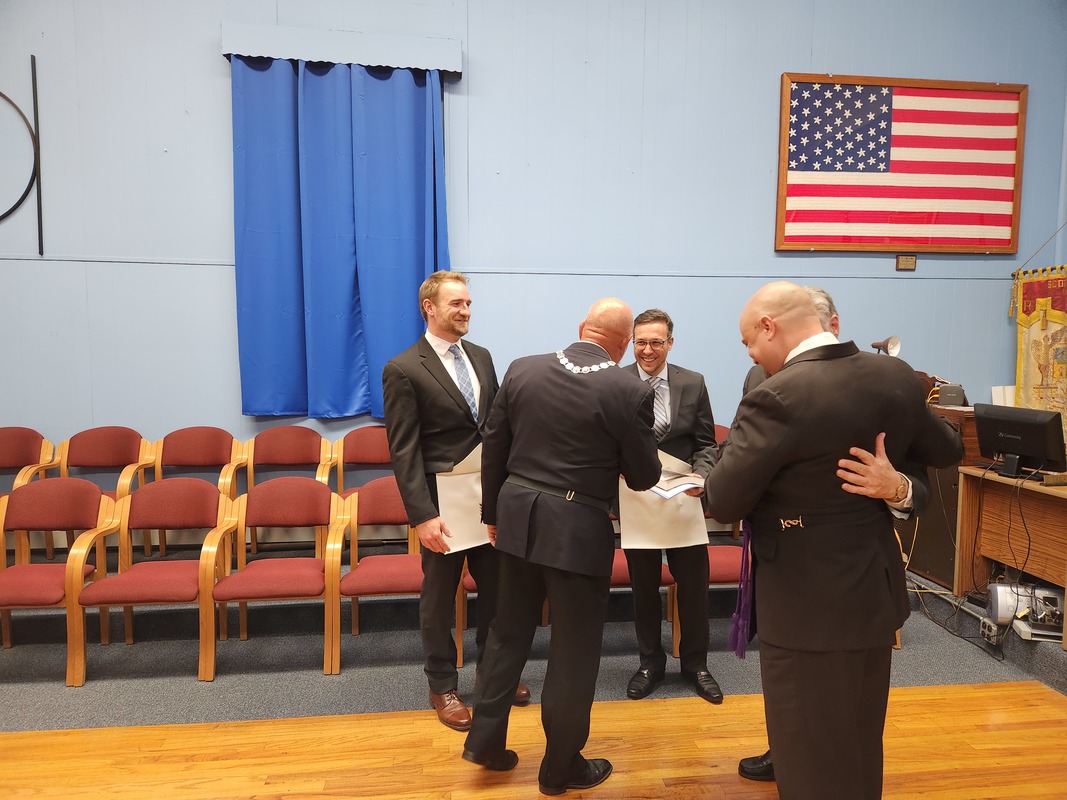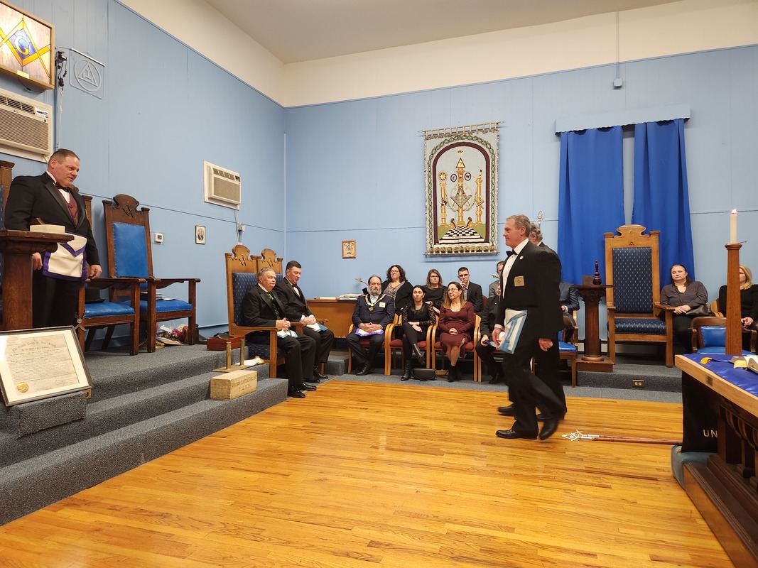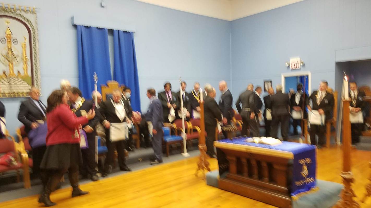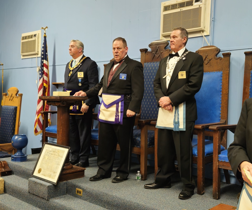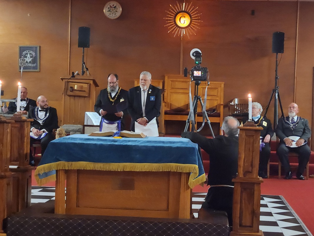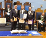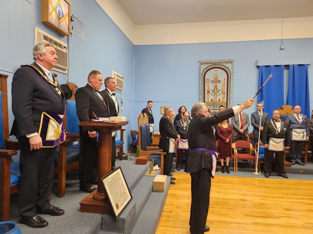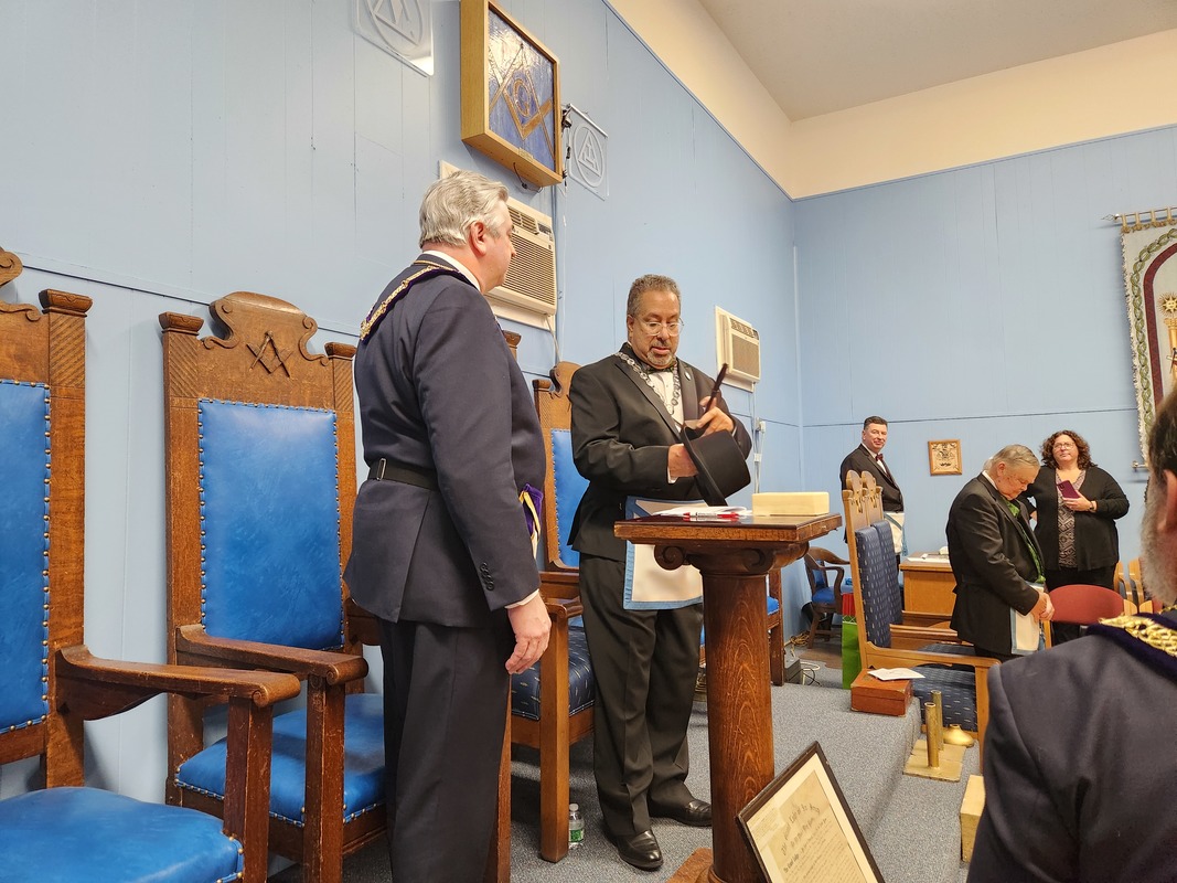 Benjamin Franklin speaking about his history as a Mason at a Union Table Lodge