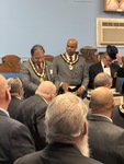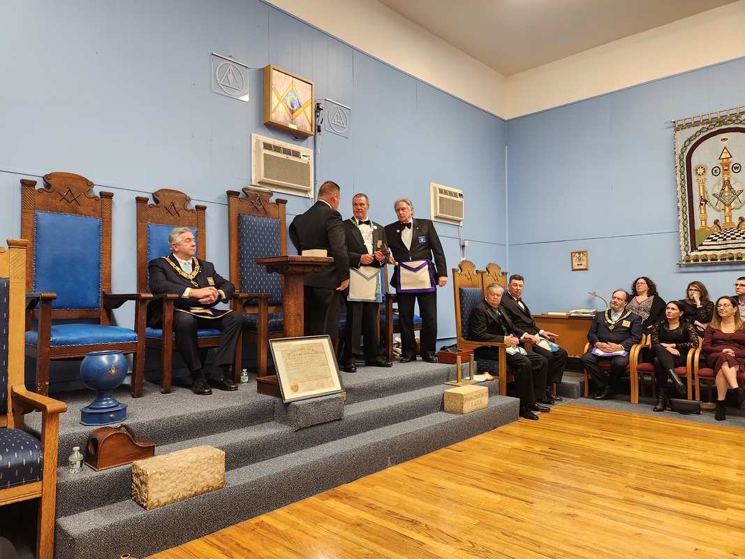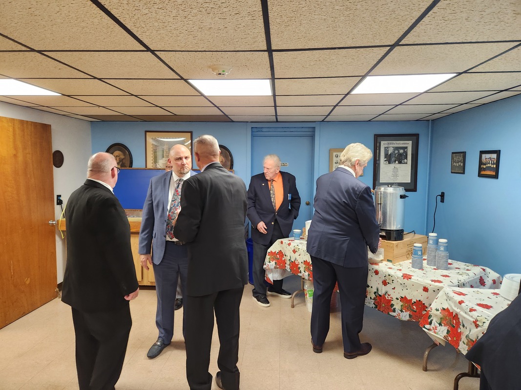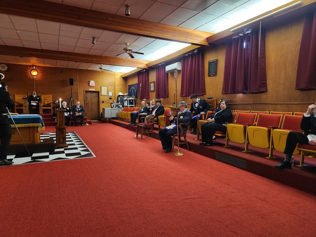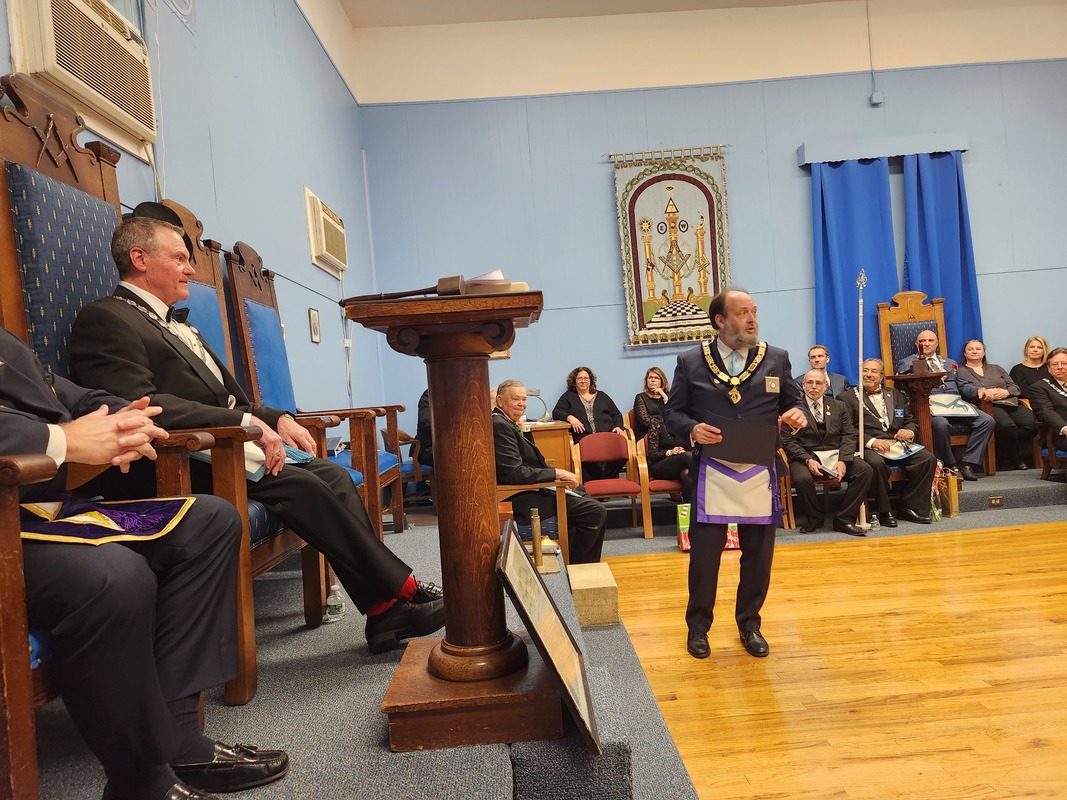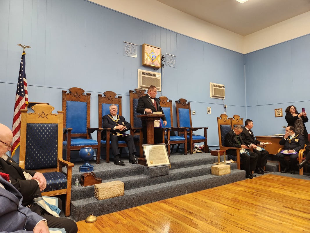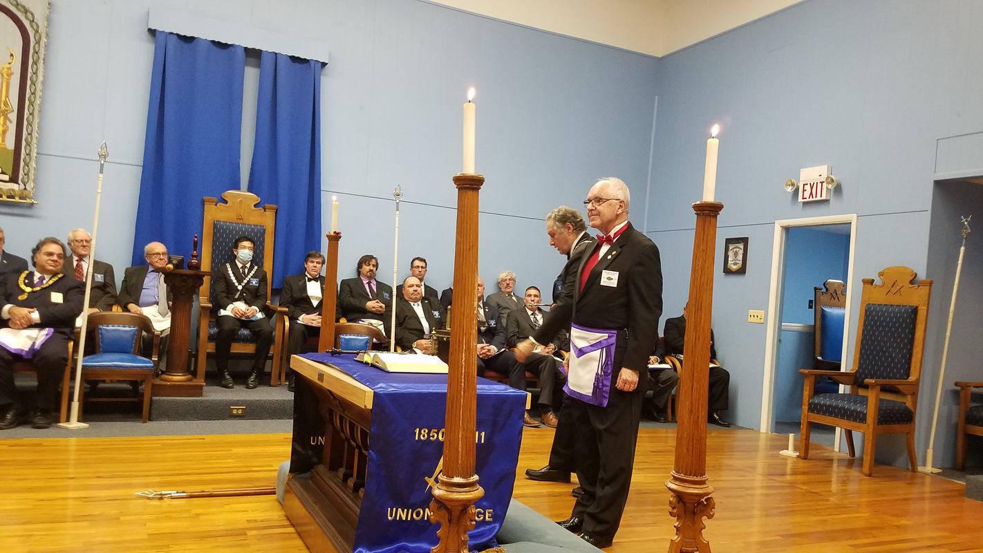 Benjamin Franklin speaking about his history as a Mason at a Union Table Lodge