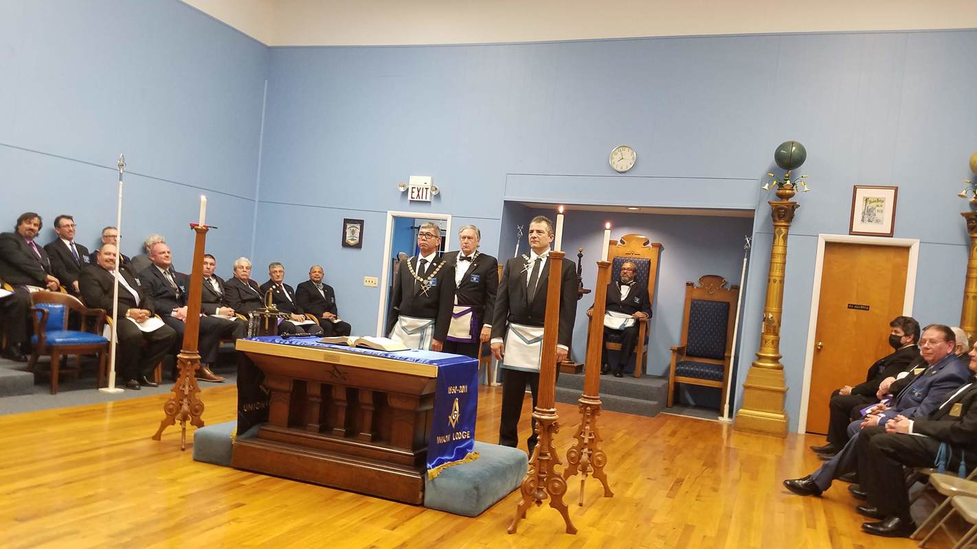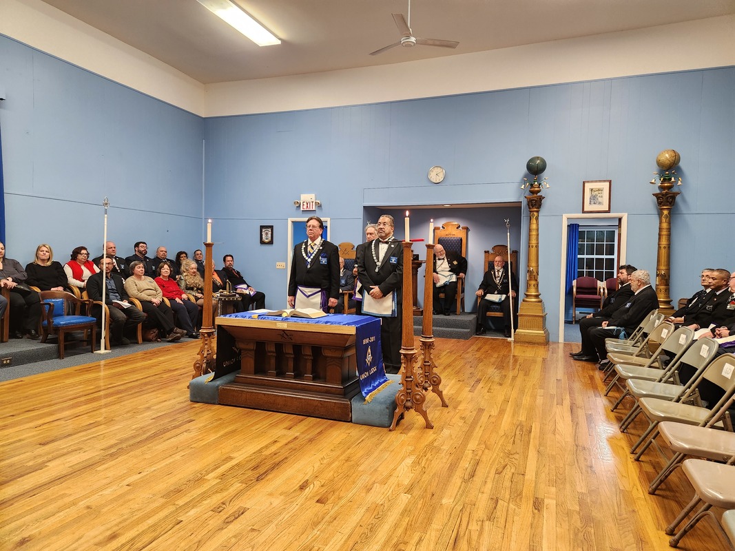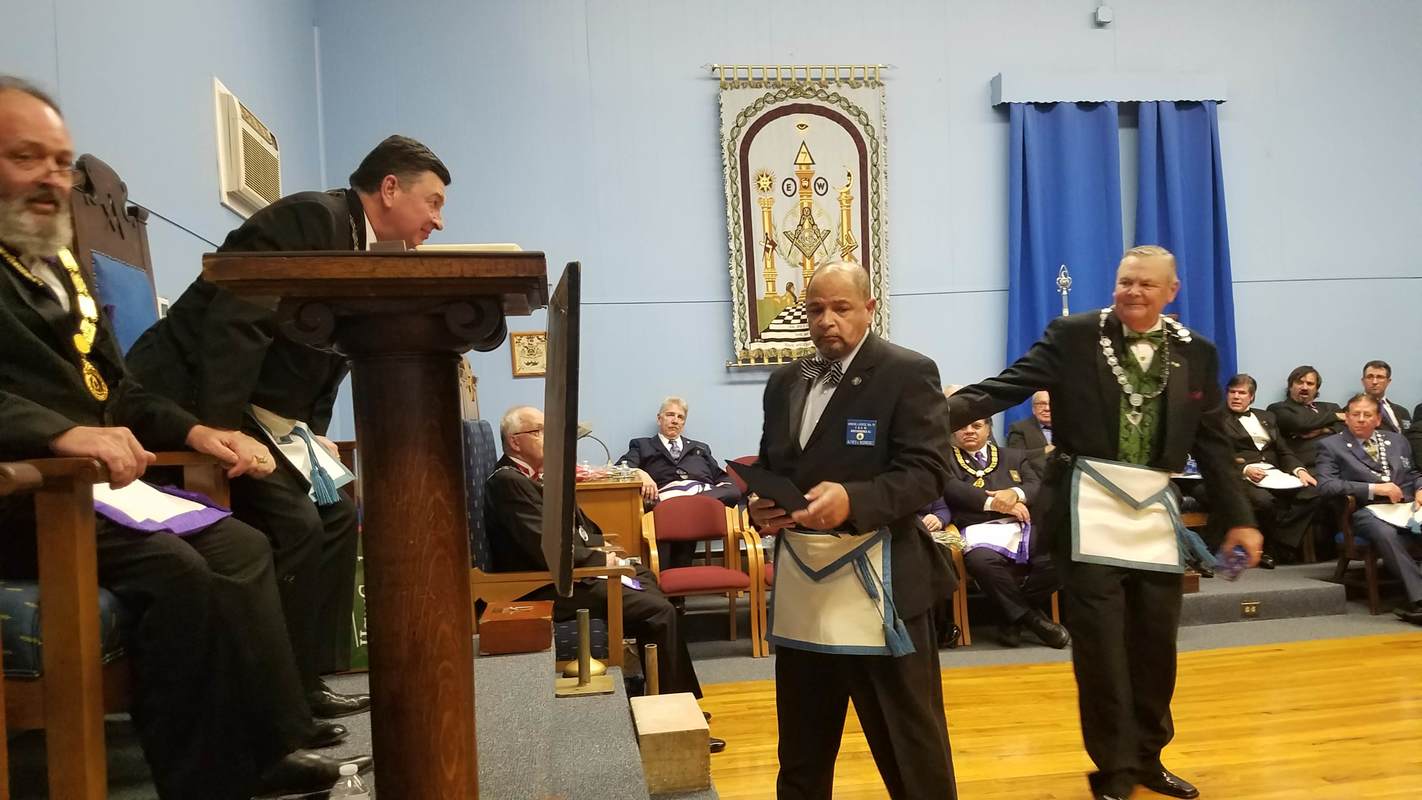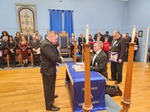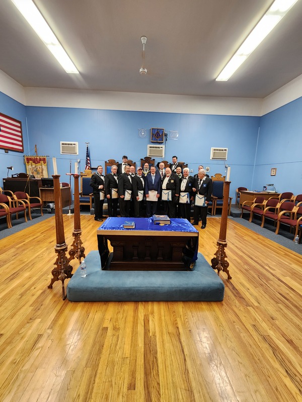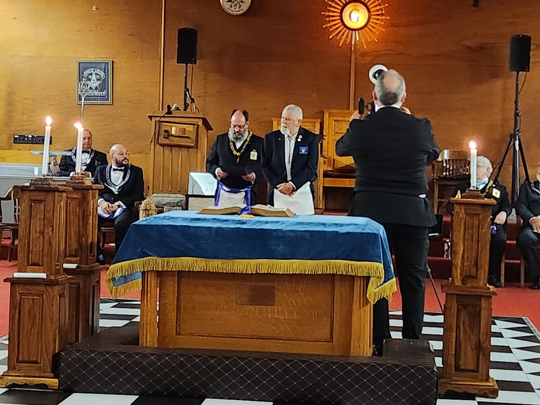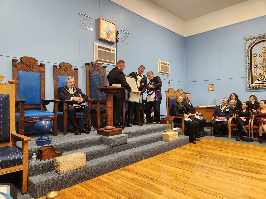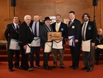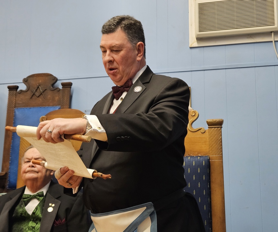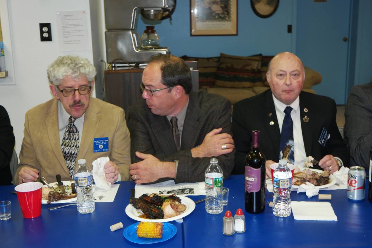 Benjamin Franklin speaking about his history as a Mason at a Union Table Lodge