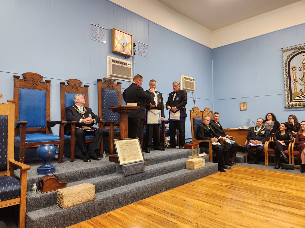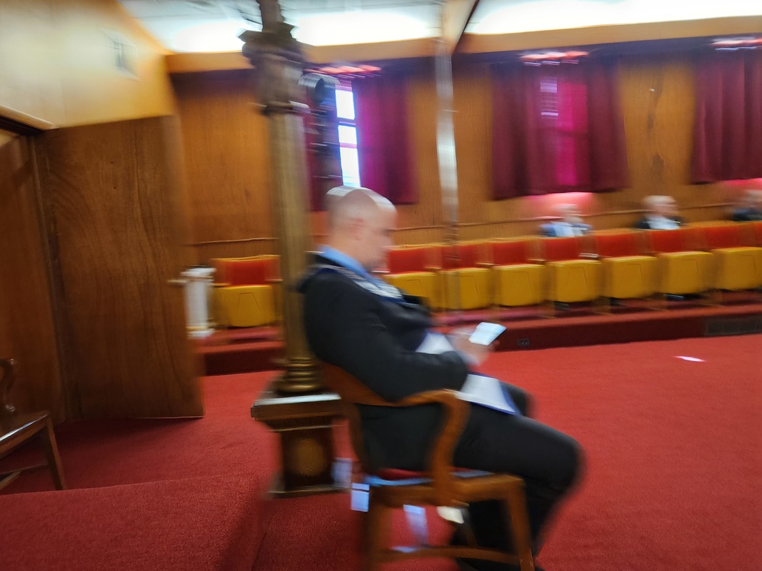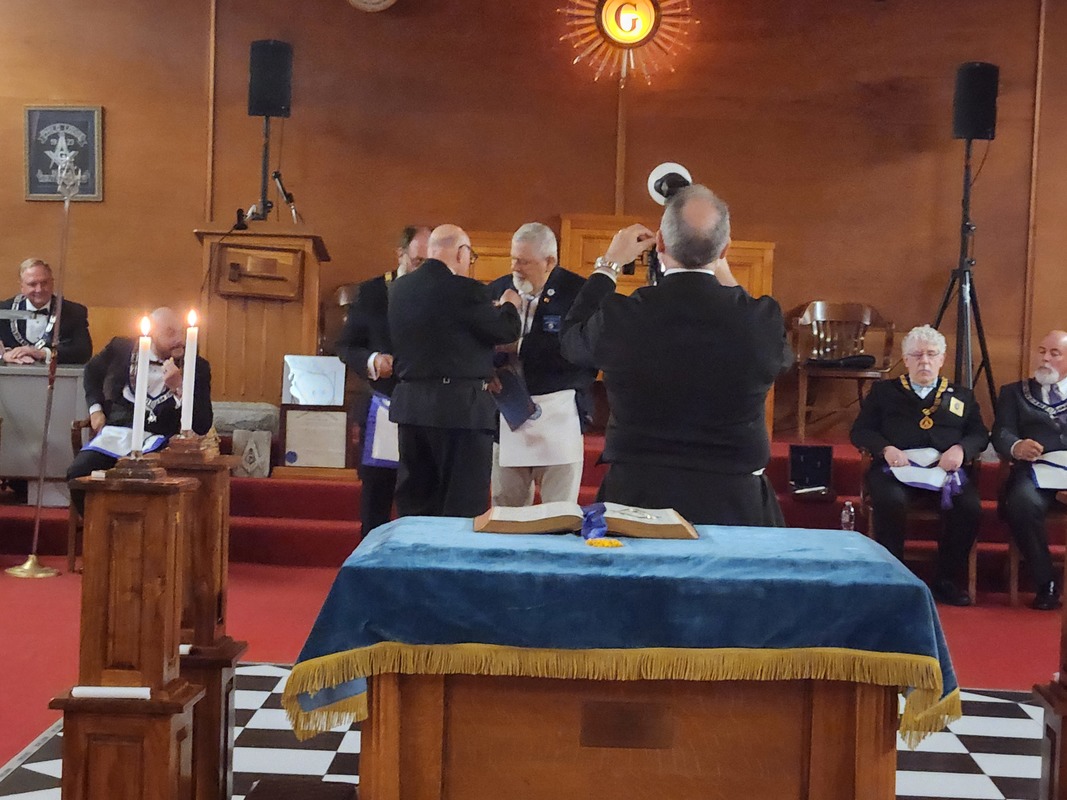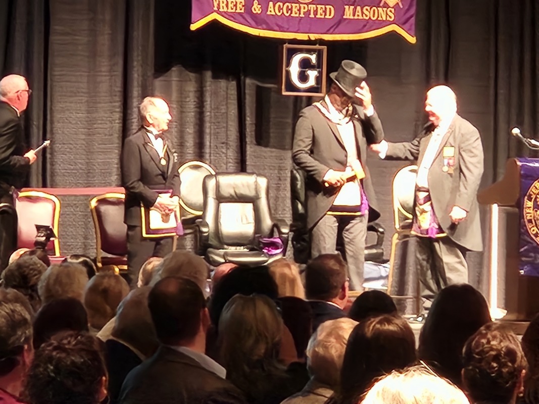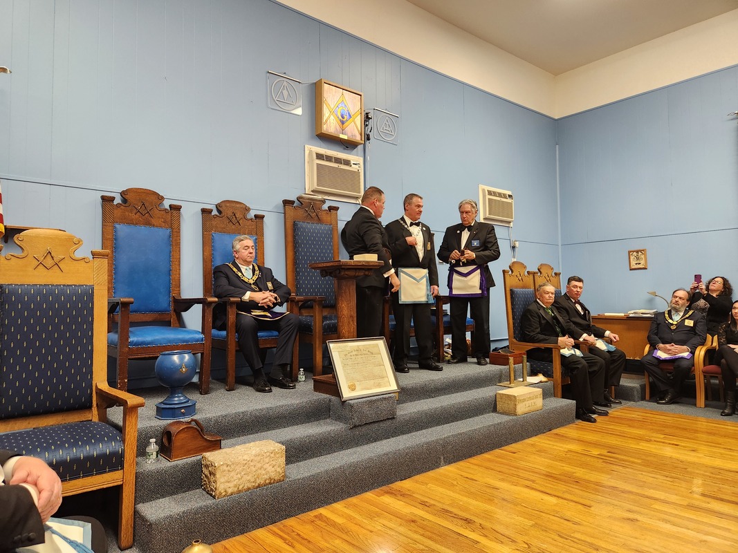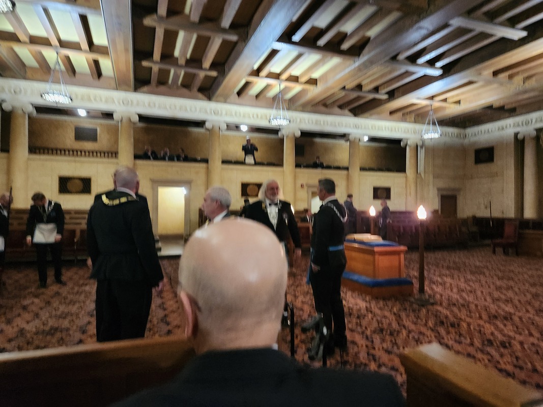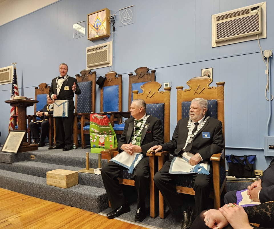Benjamin Franklin speaking about his history as a Mason at a Union Table Lodge