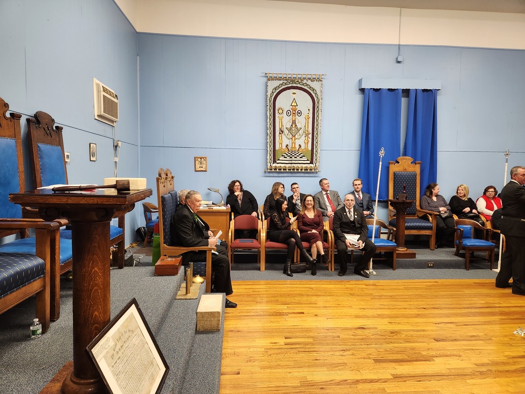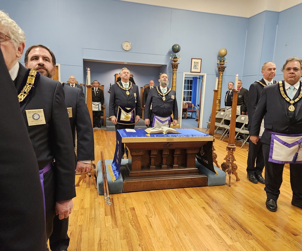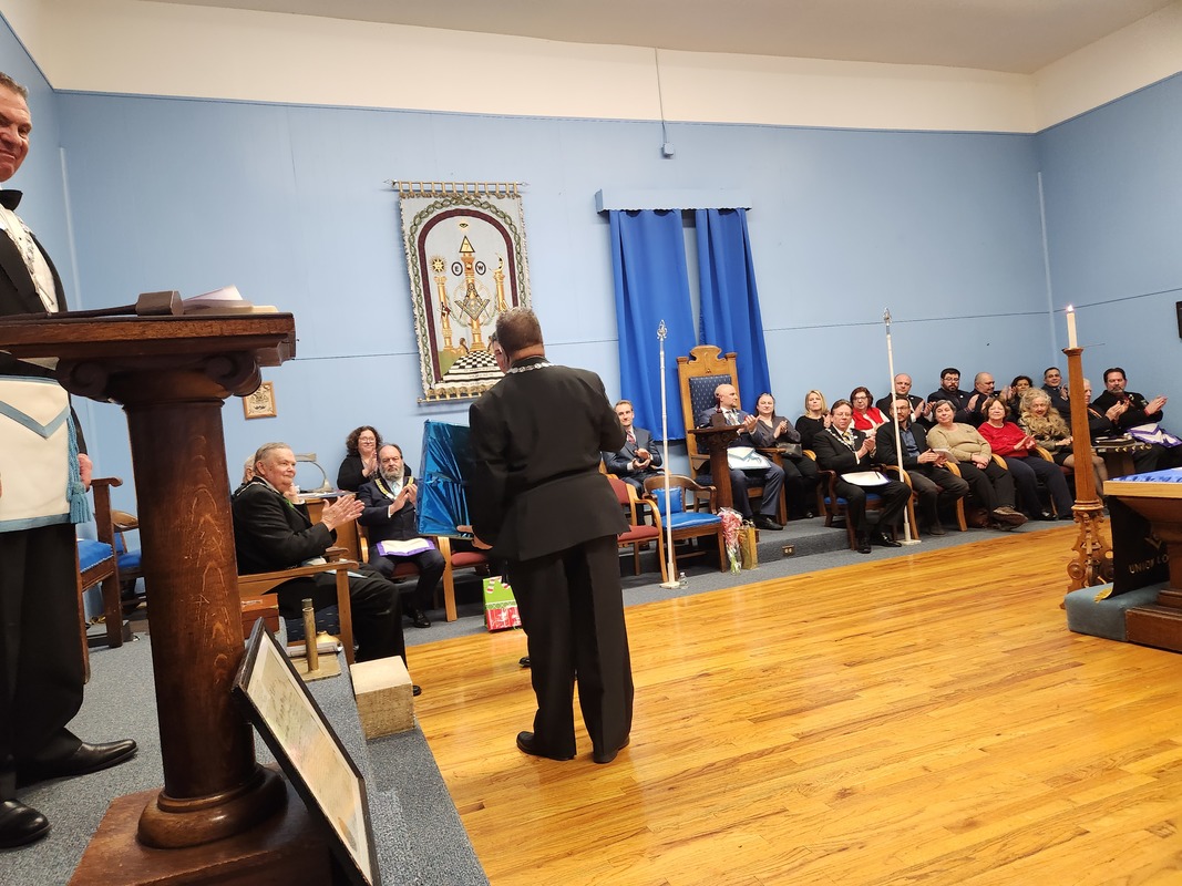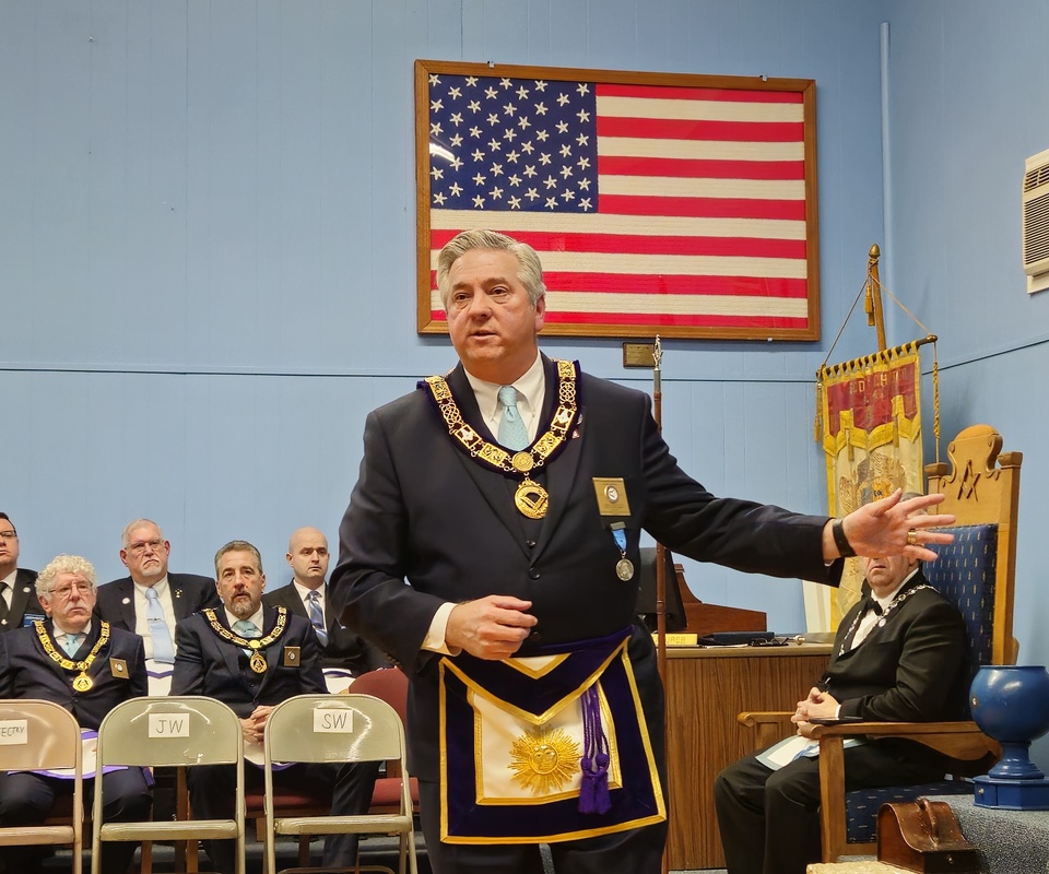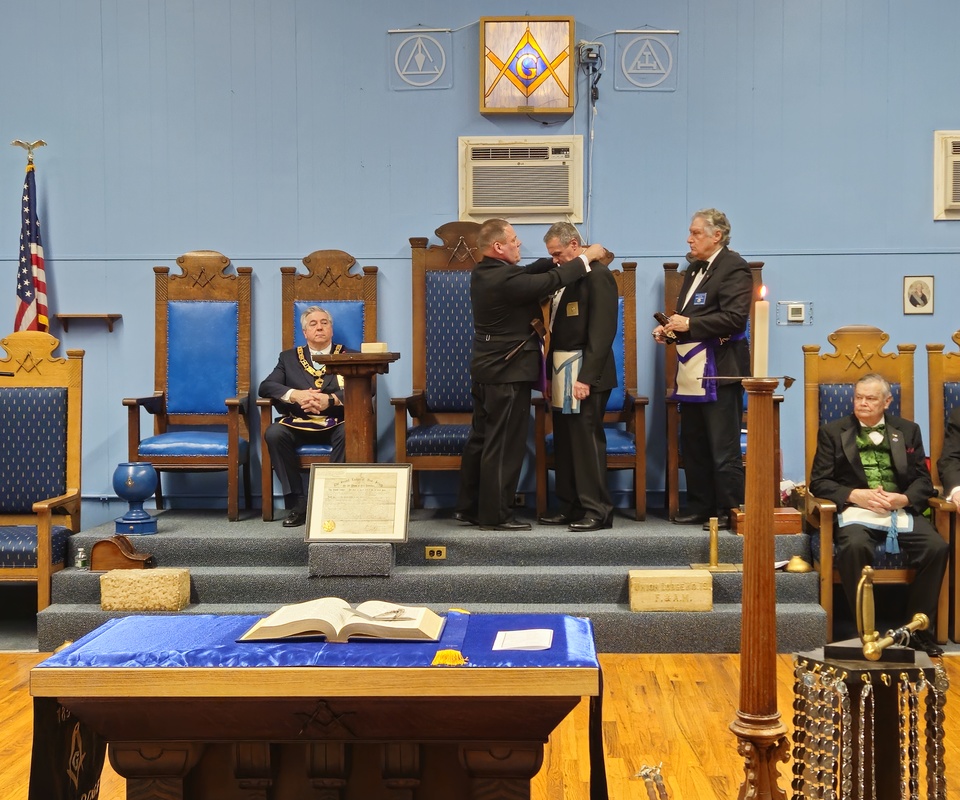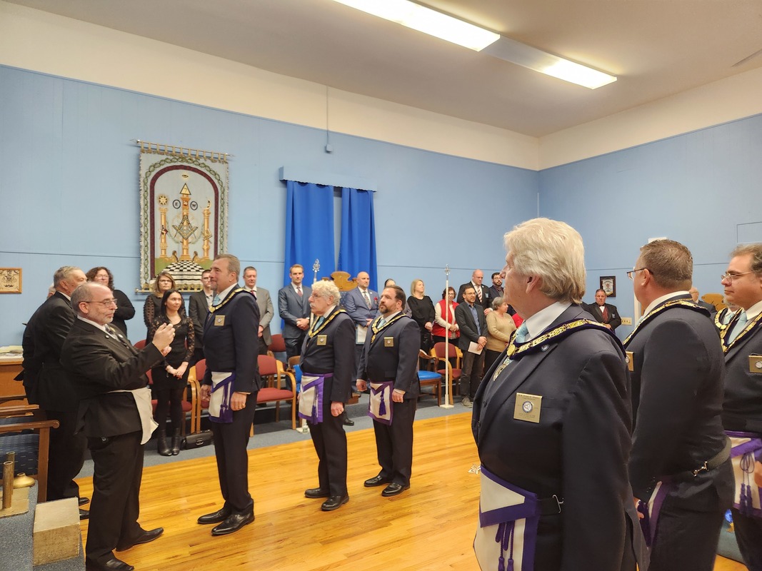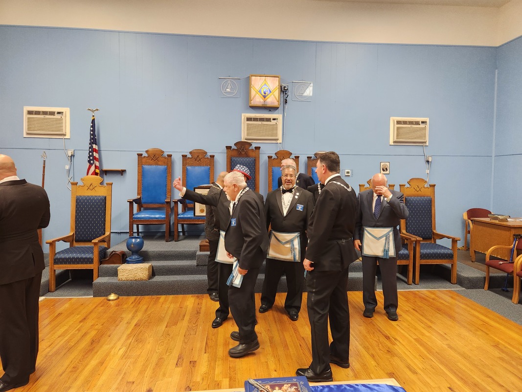 Benjamin Franklin speaking about his history as a Mason at a Union Table Lodge