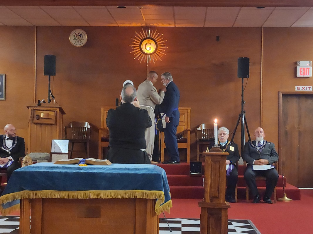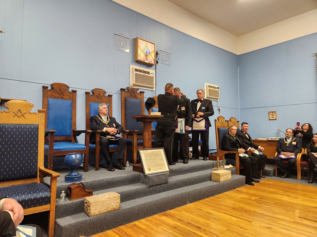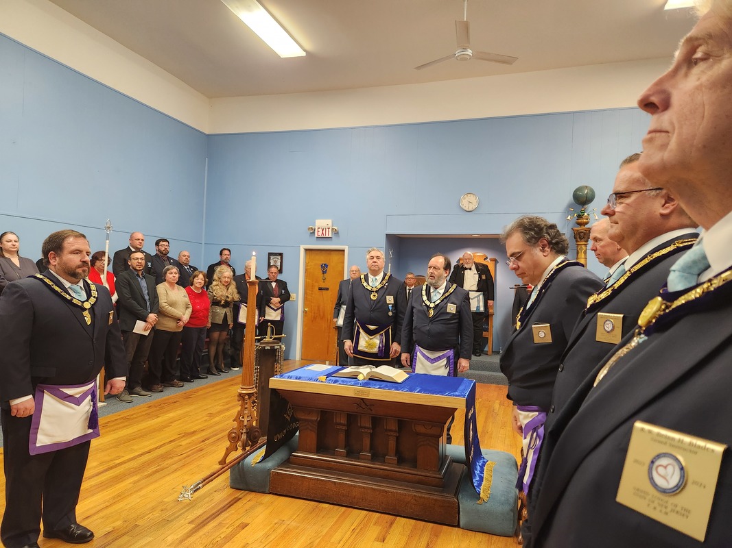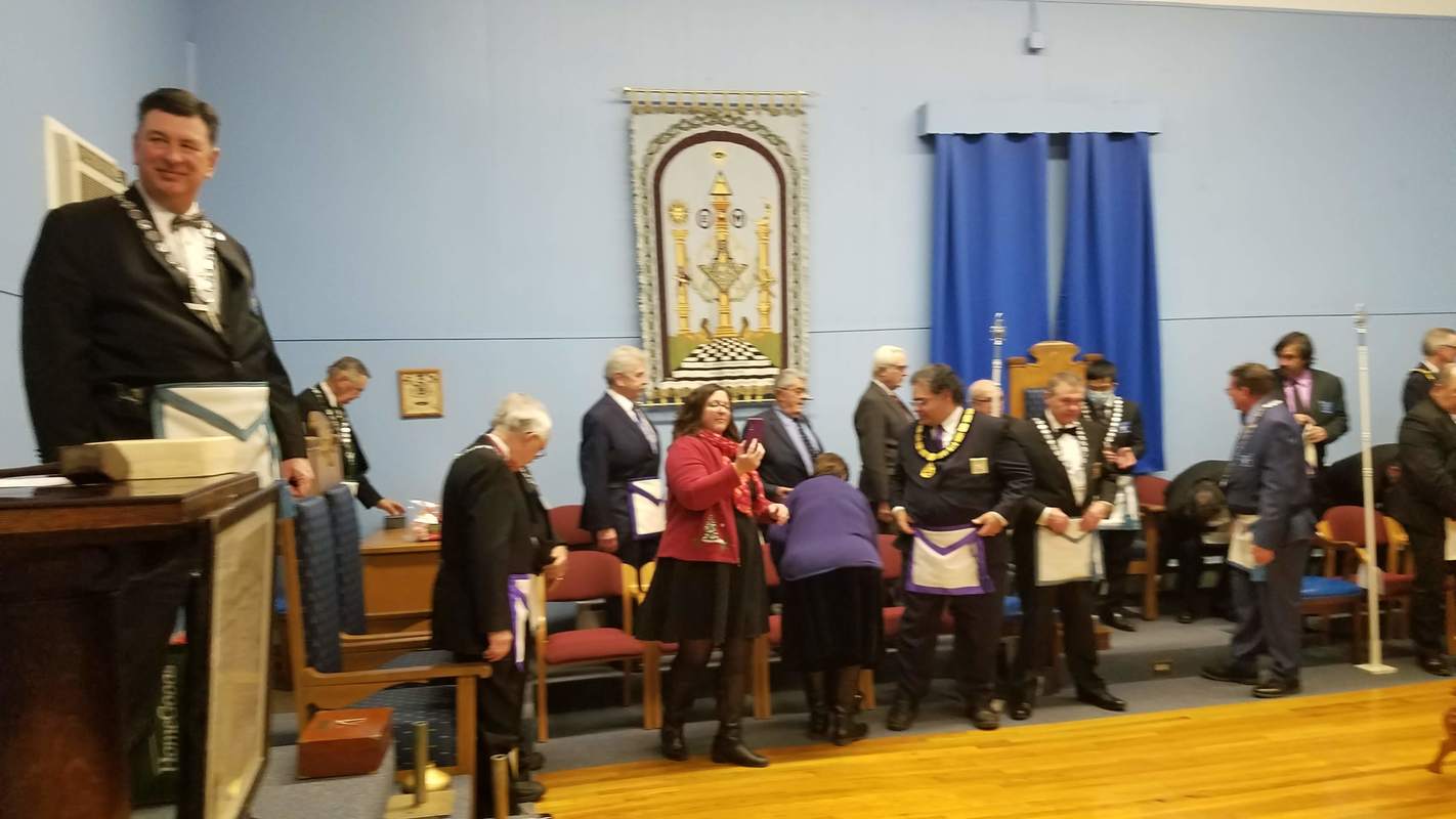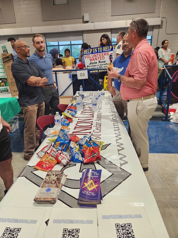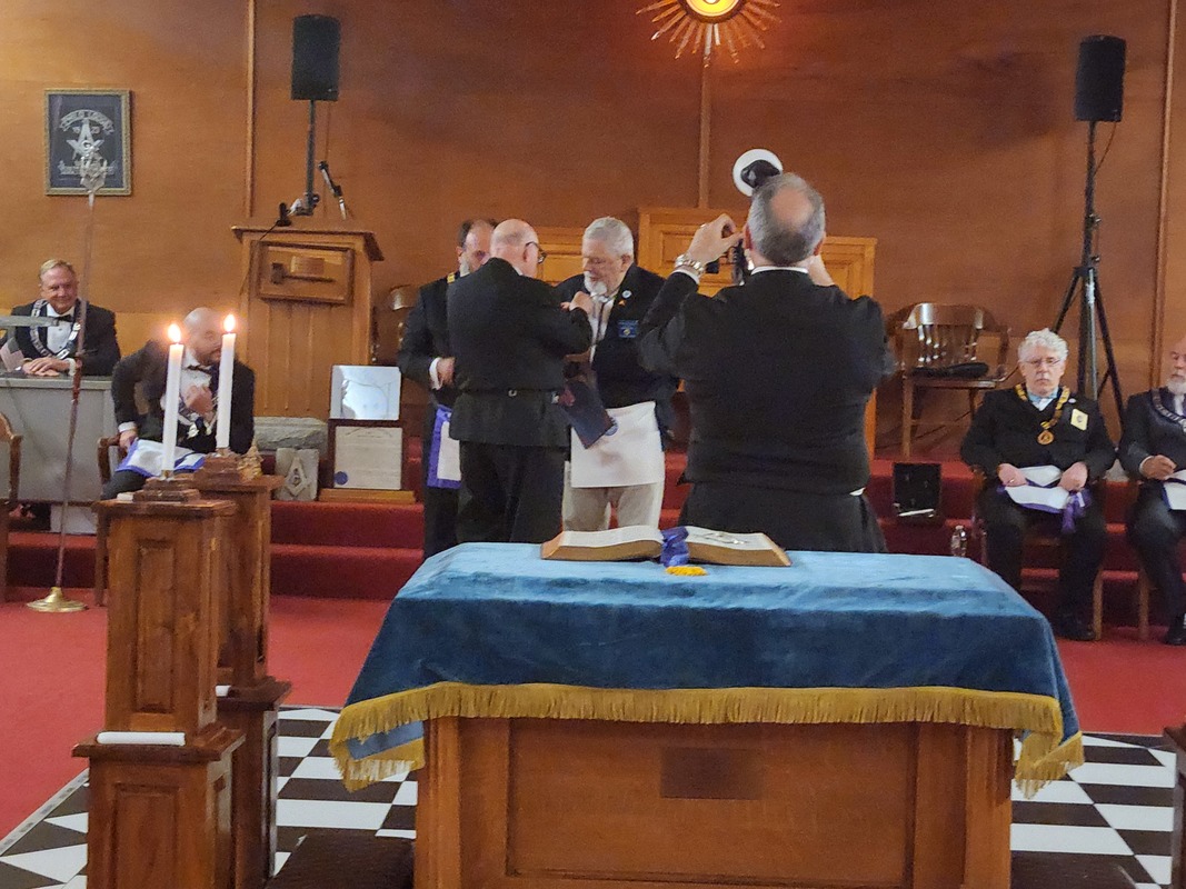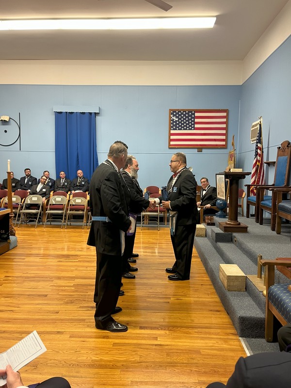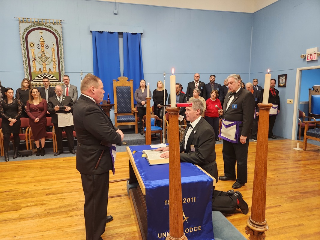 Benjamin Franklin speaking about his history as a Mason at a Union Table Lodge