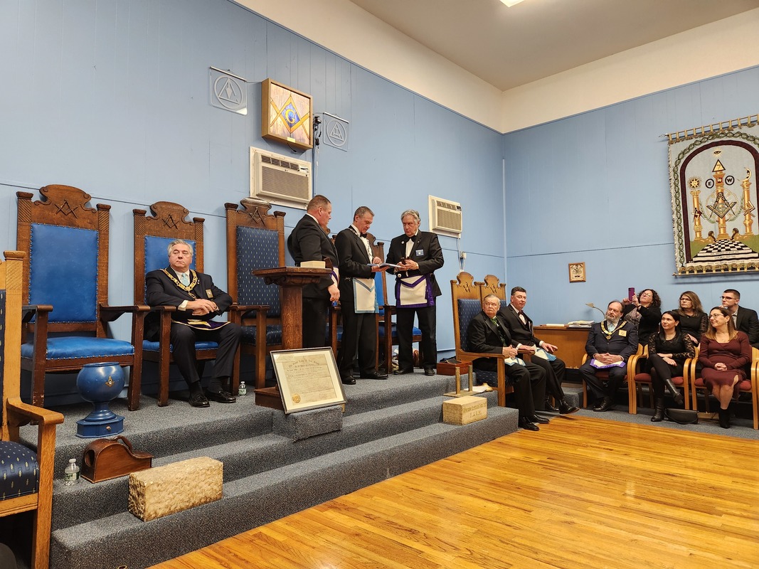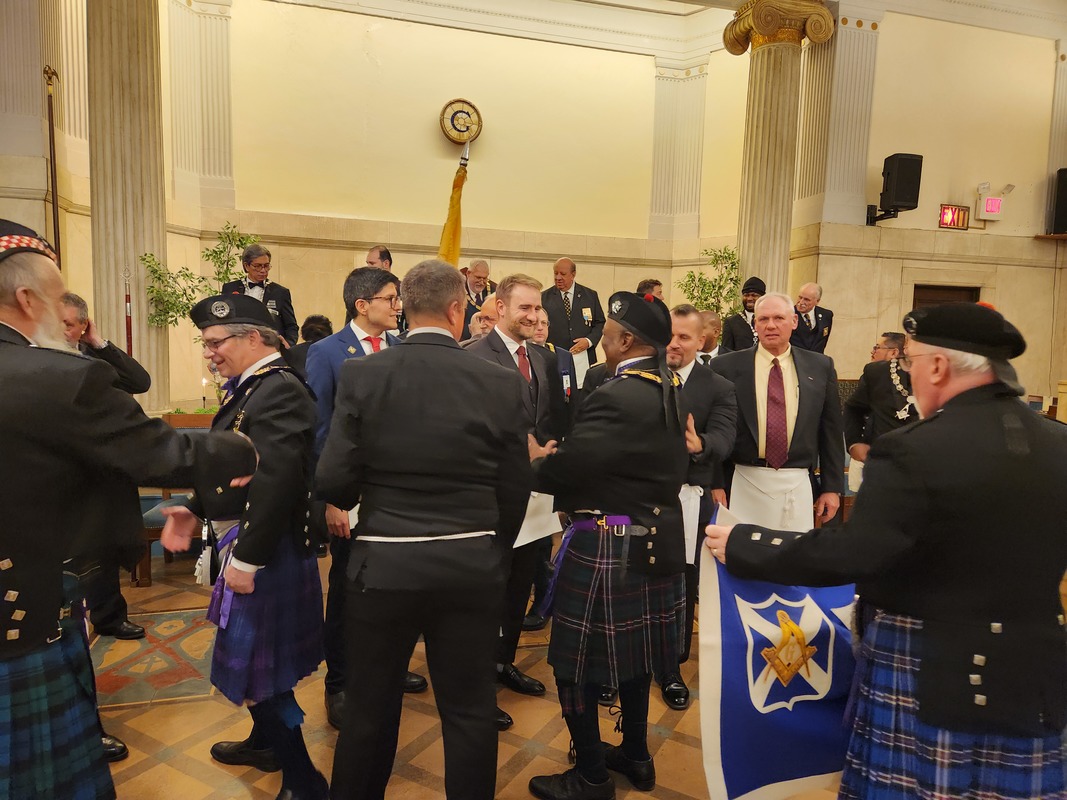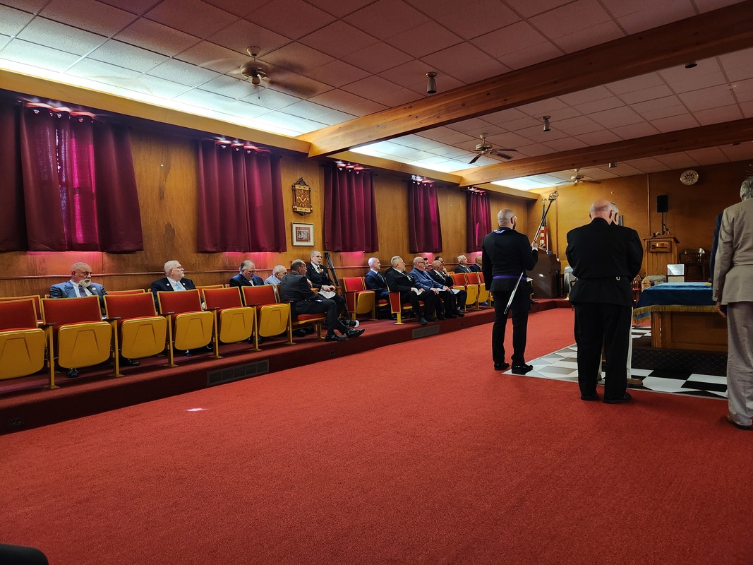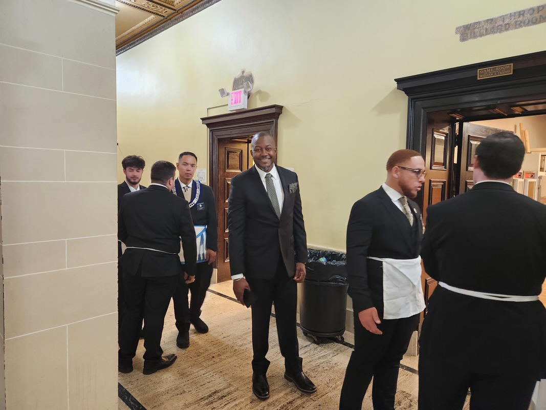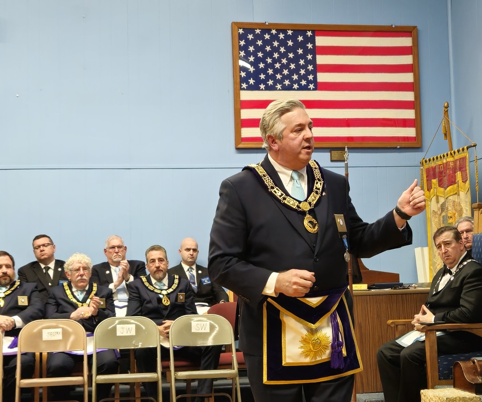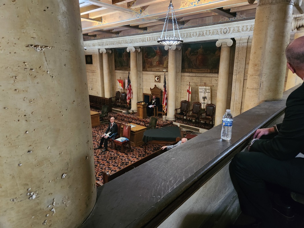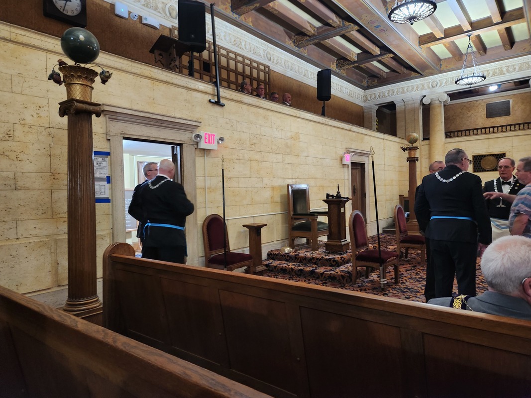Benjamin Franklin speaking about his history as a Mason at a Union Table Lodge