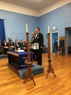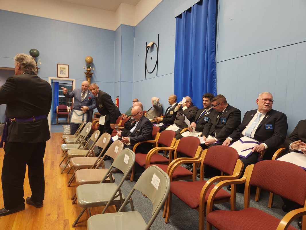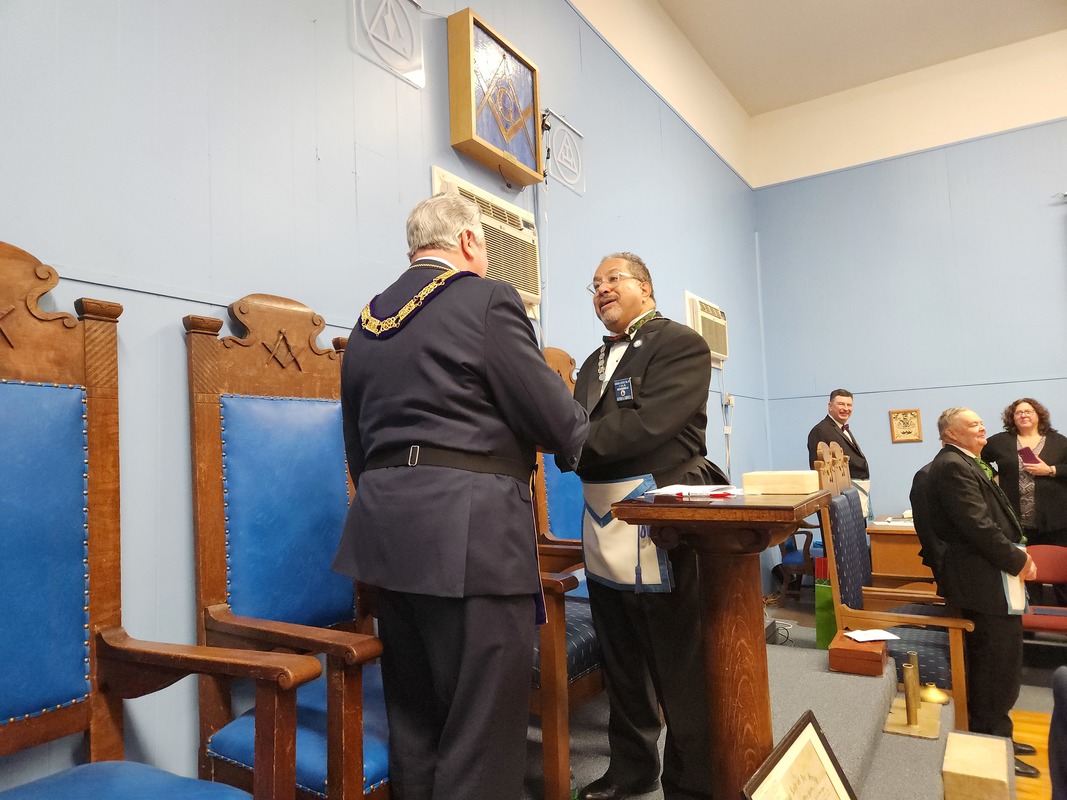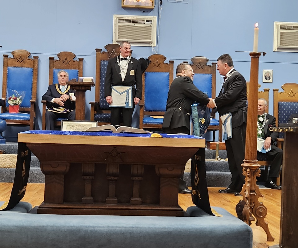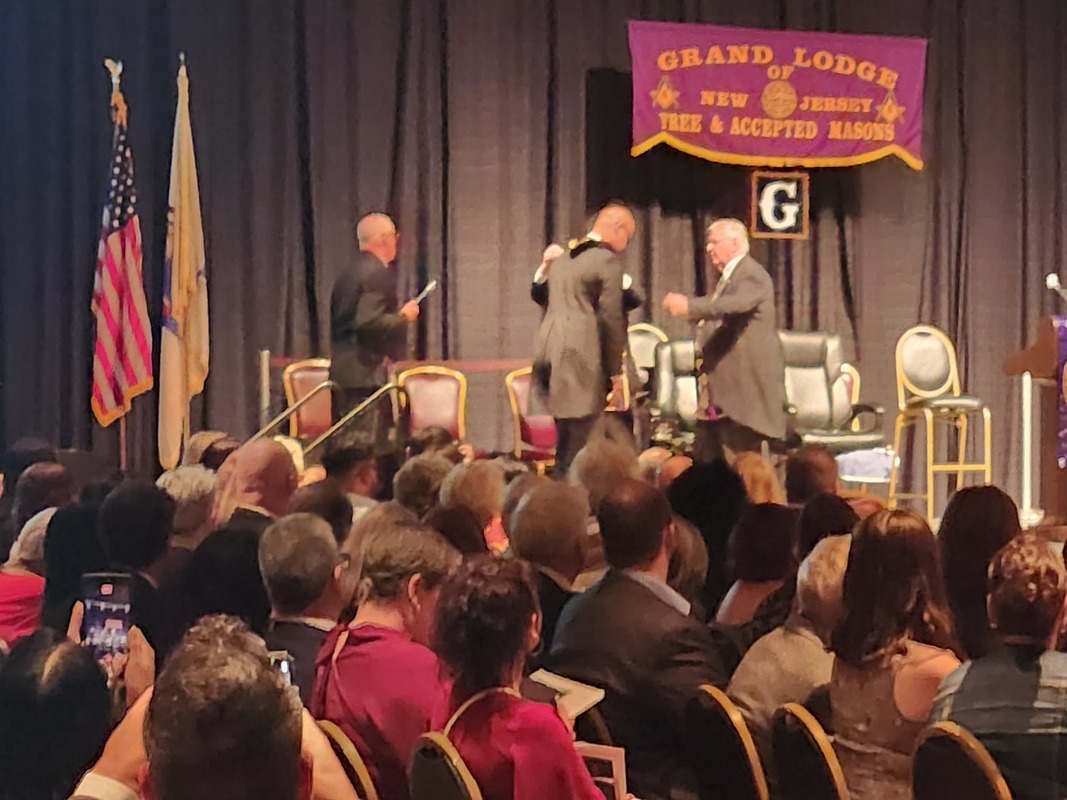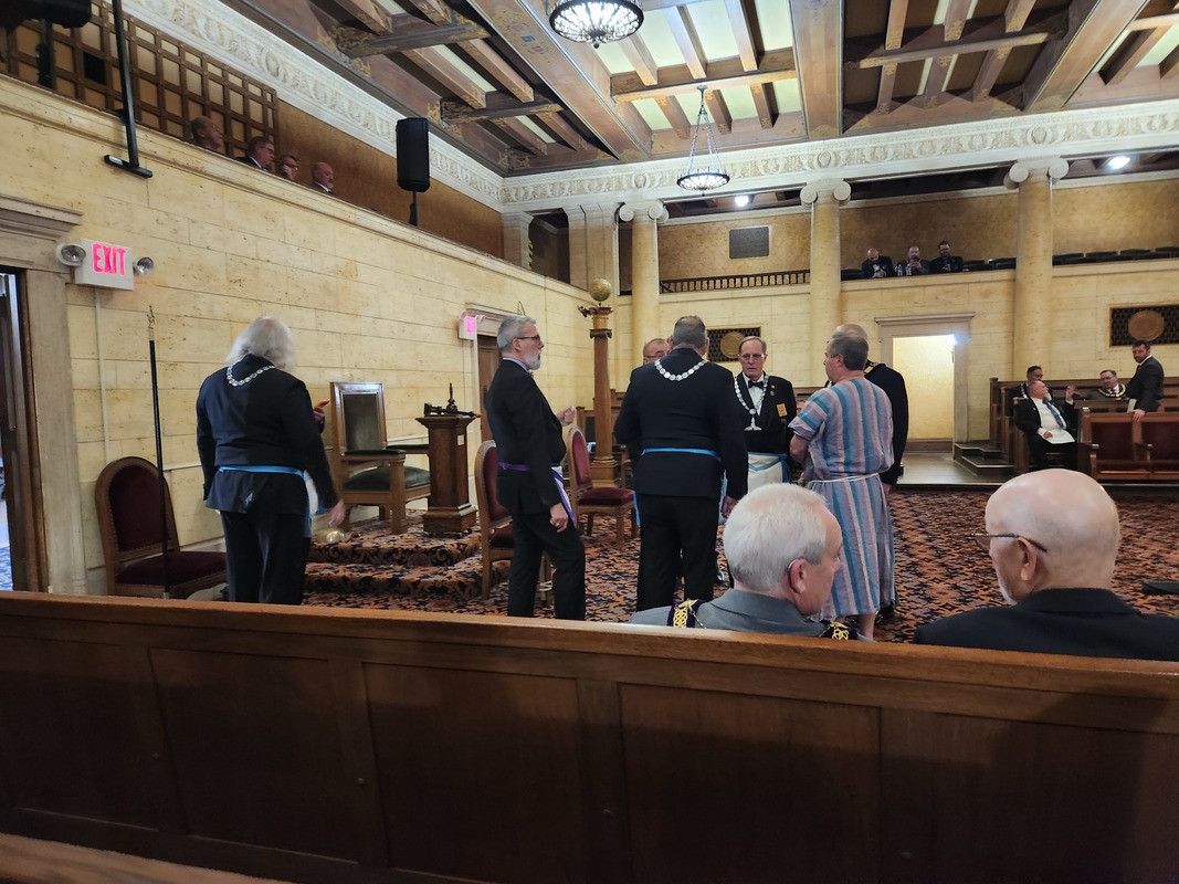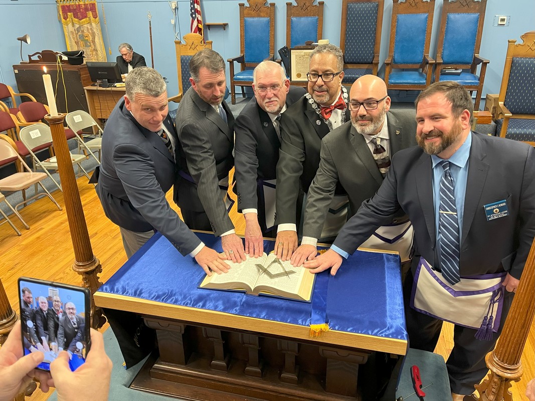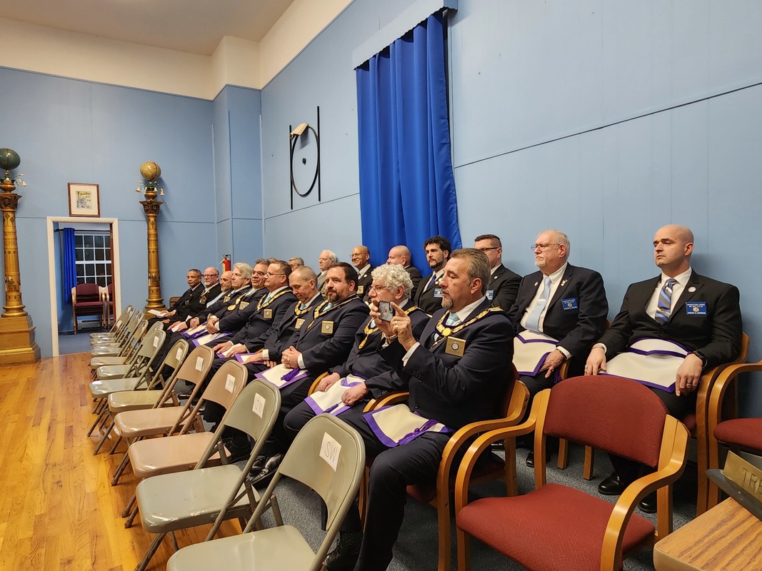 Benjamin Franklin speaking about his history as a Mason at a Union Table Lodge