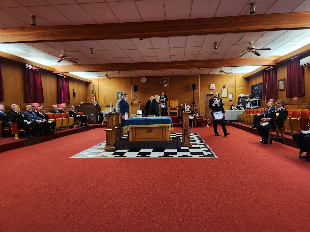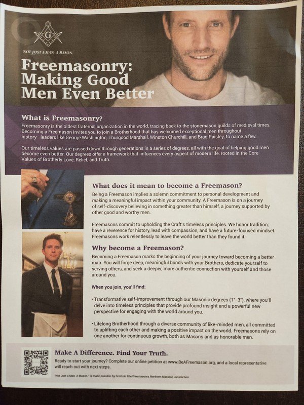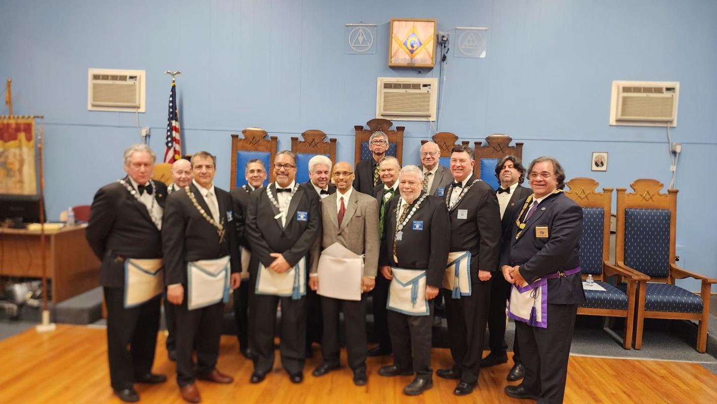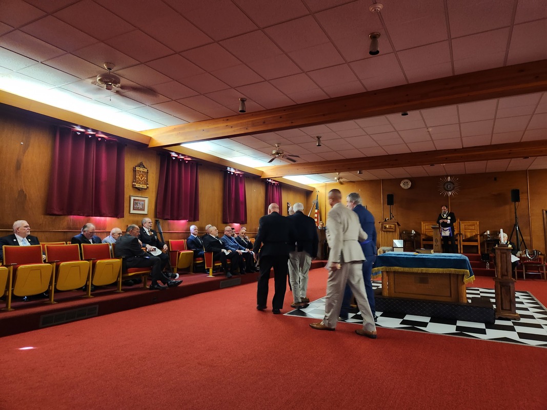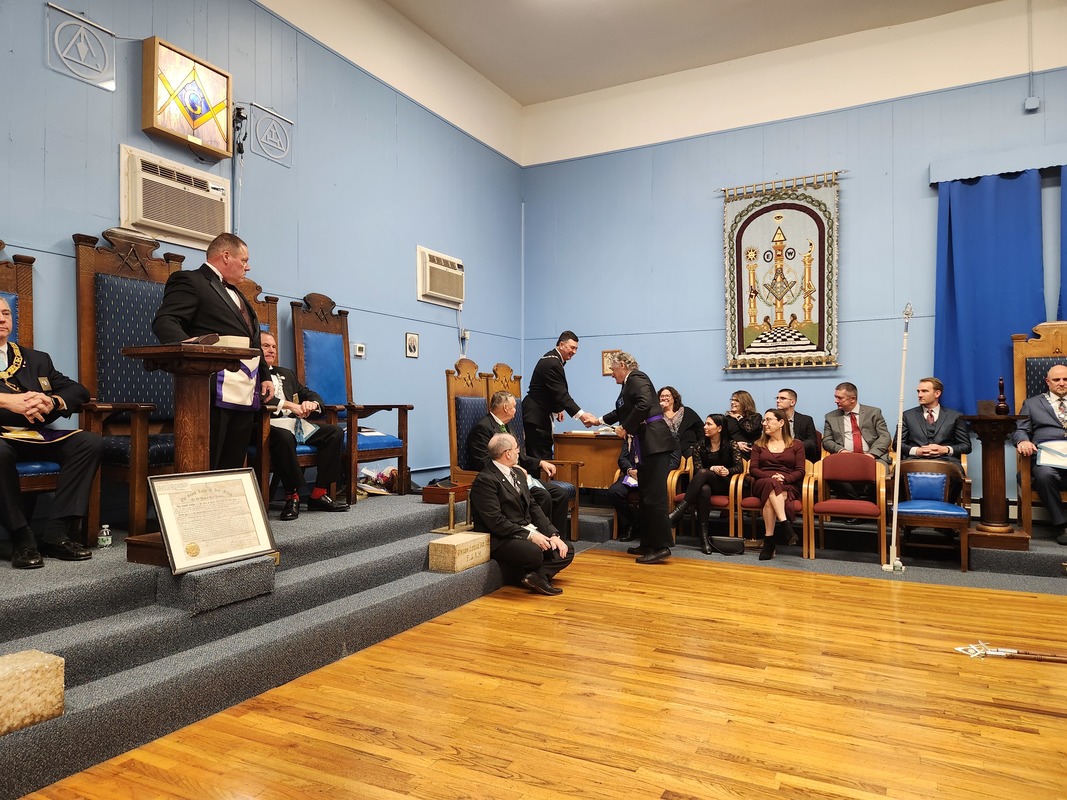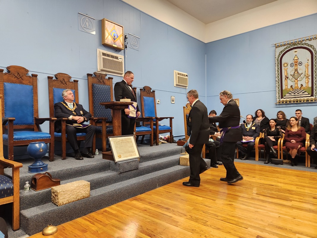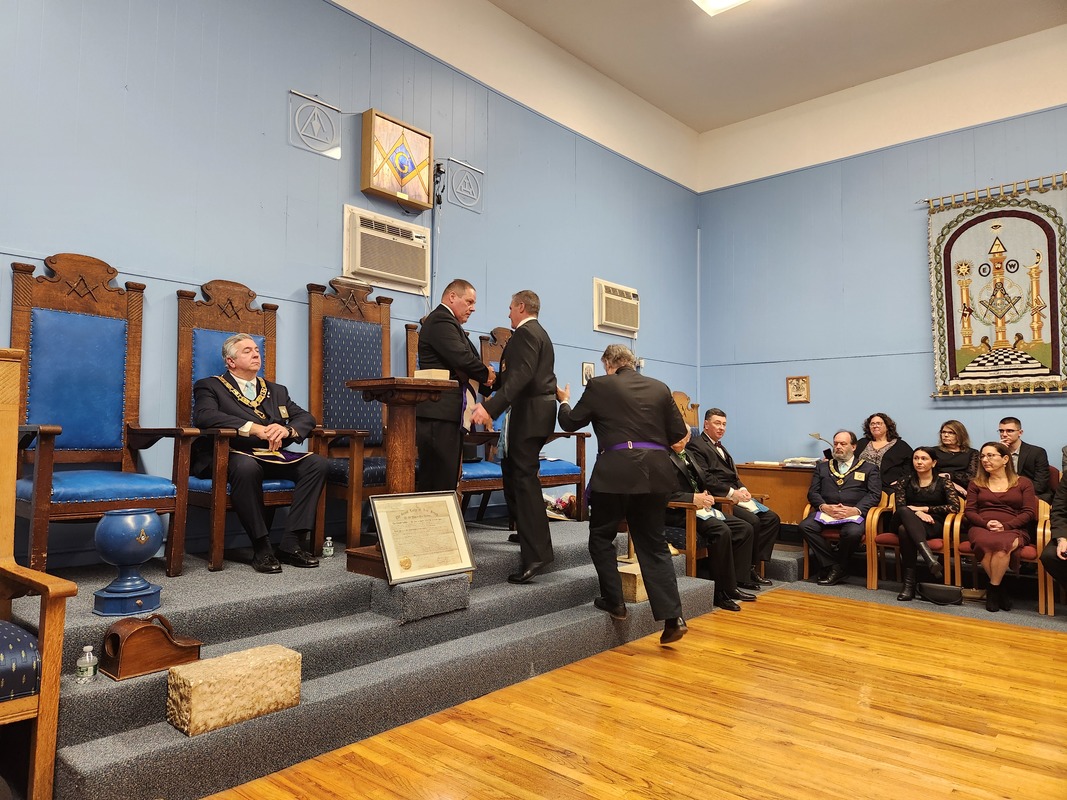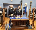 Benjamin Franklin speaking about his history as a Mason at a Union Table Lodge