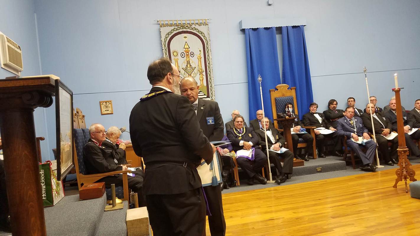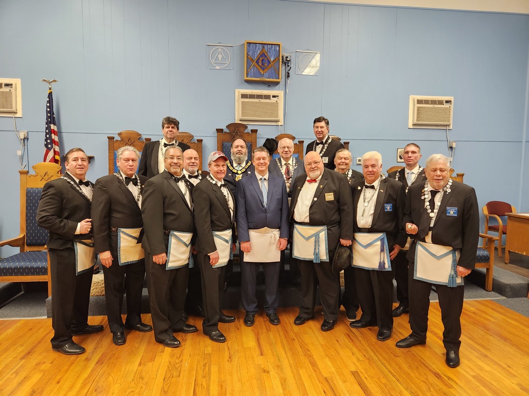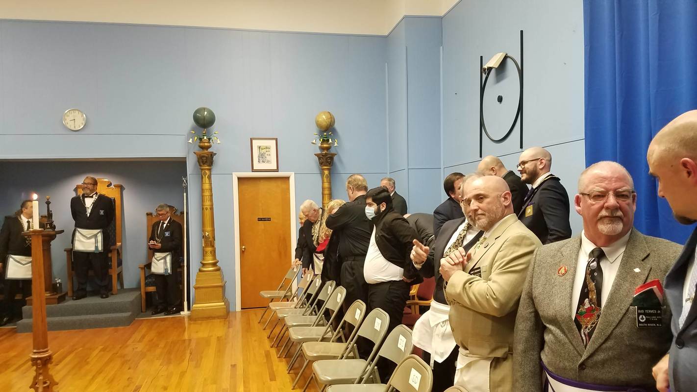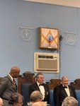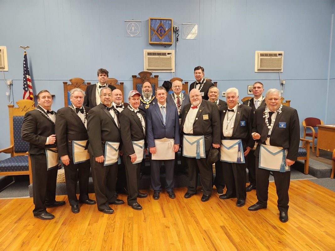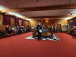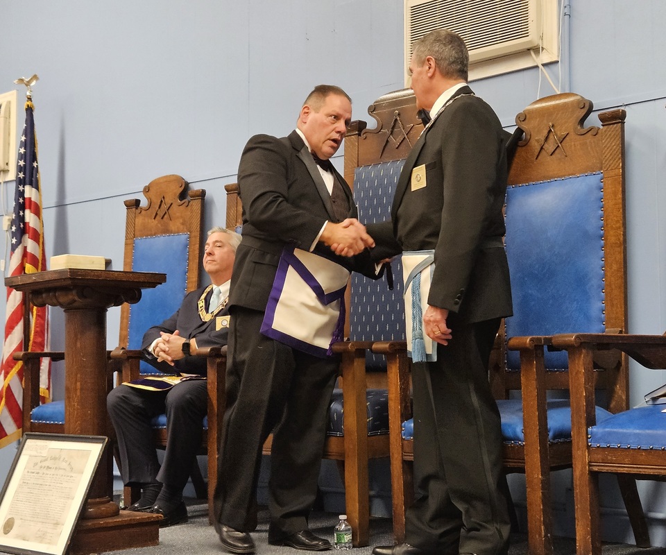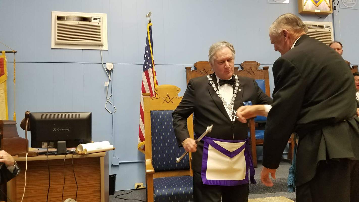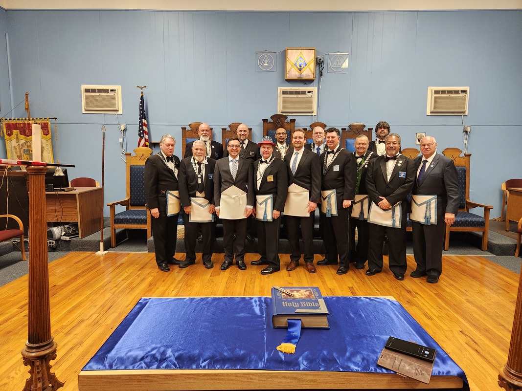 Benjamin Franklin speaking about his history as a Mason at a Union Table Lodge