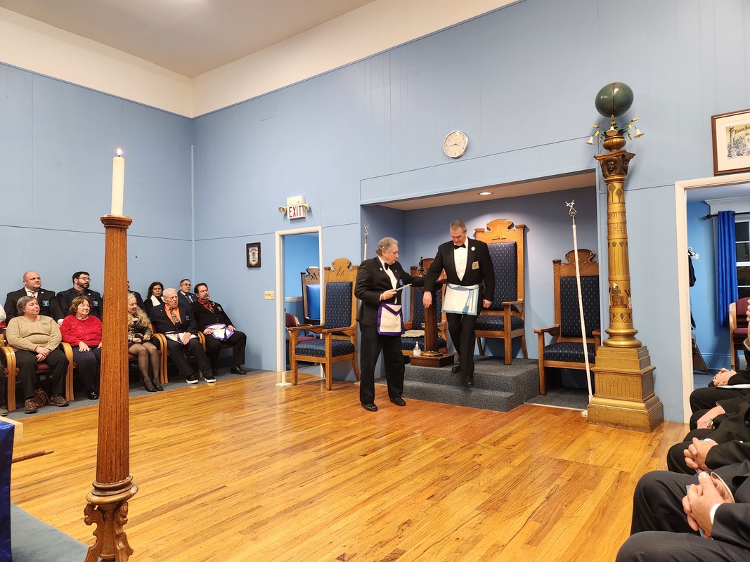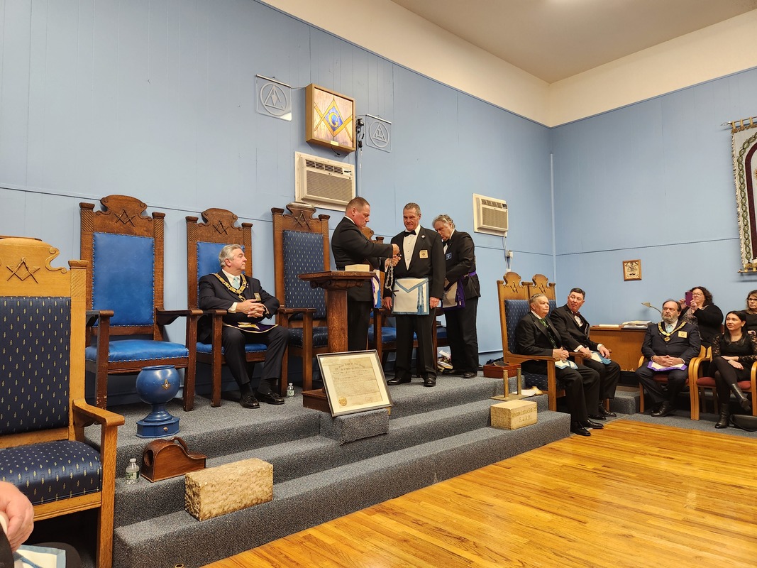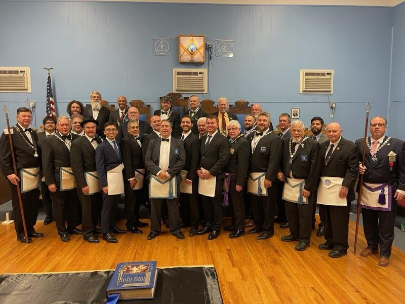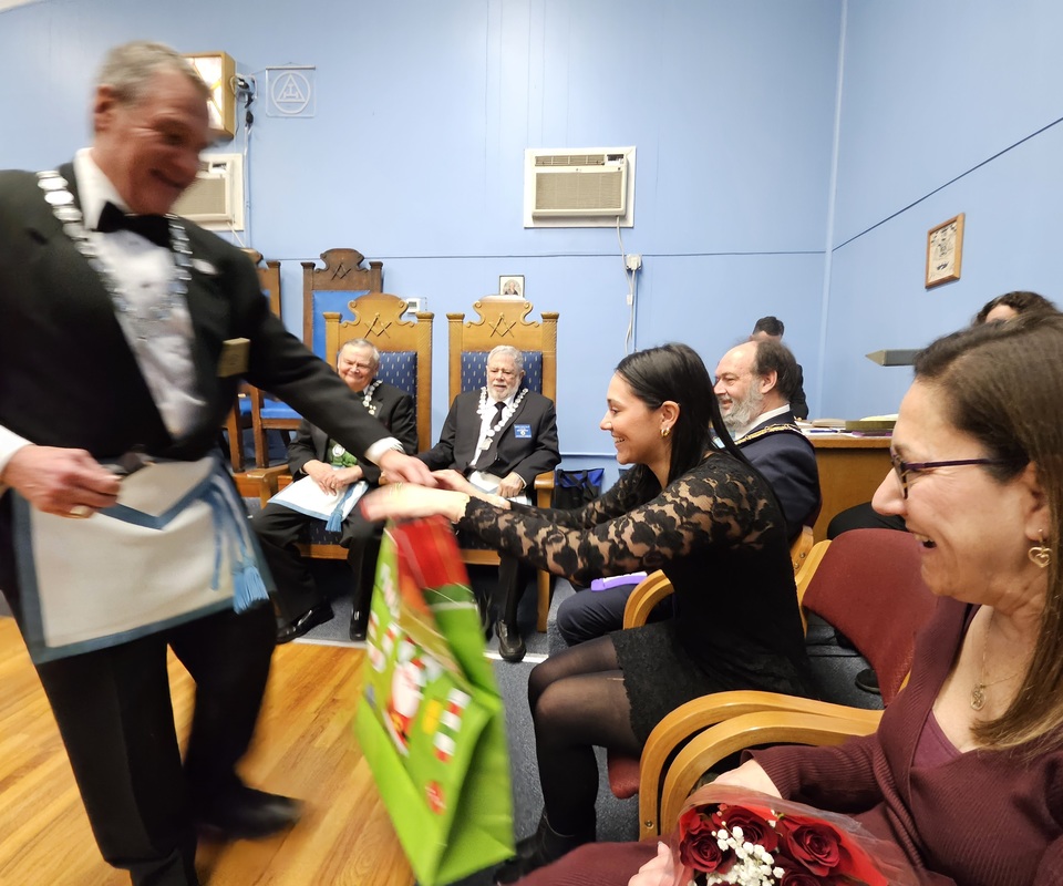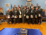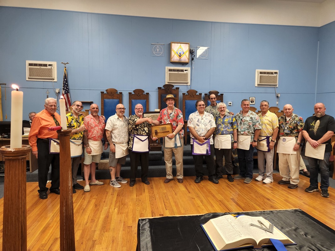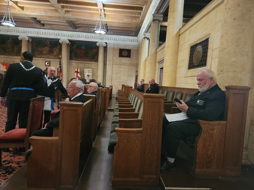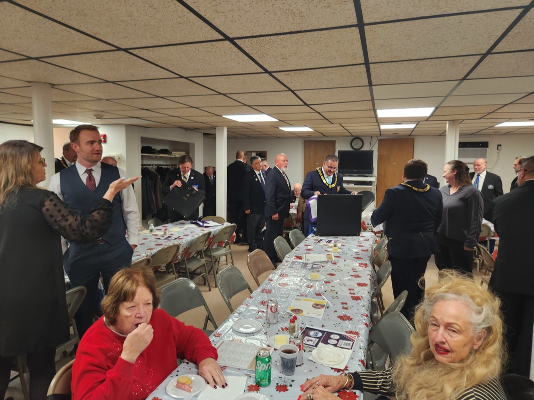 Benjamin Franklin speaking about his history as a Mason at a Union Table Lodge