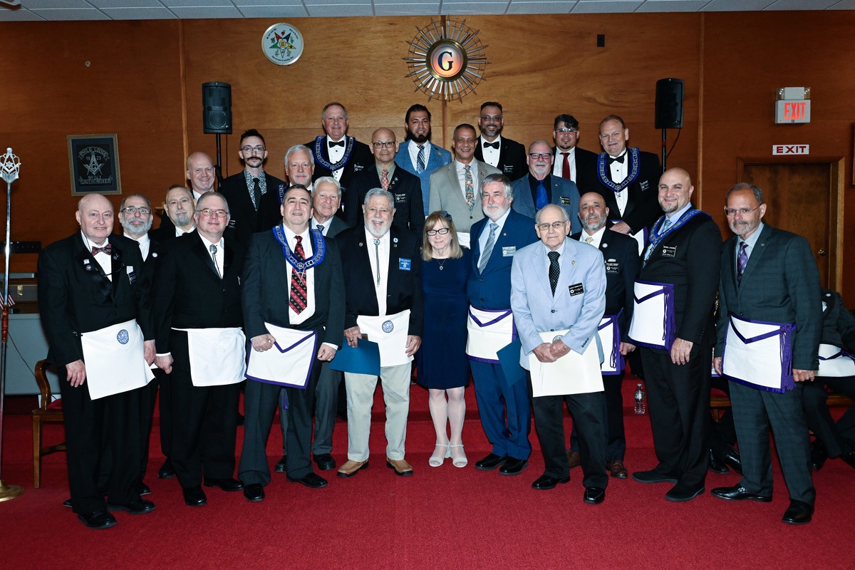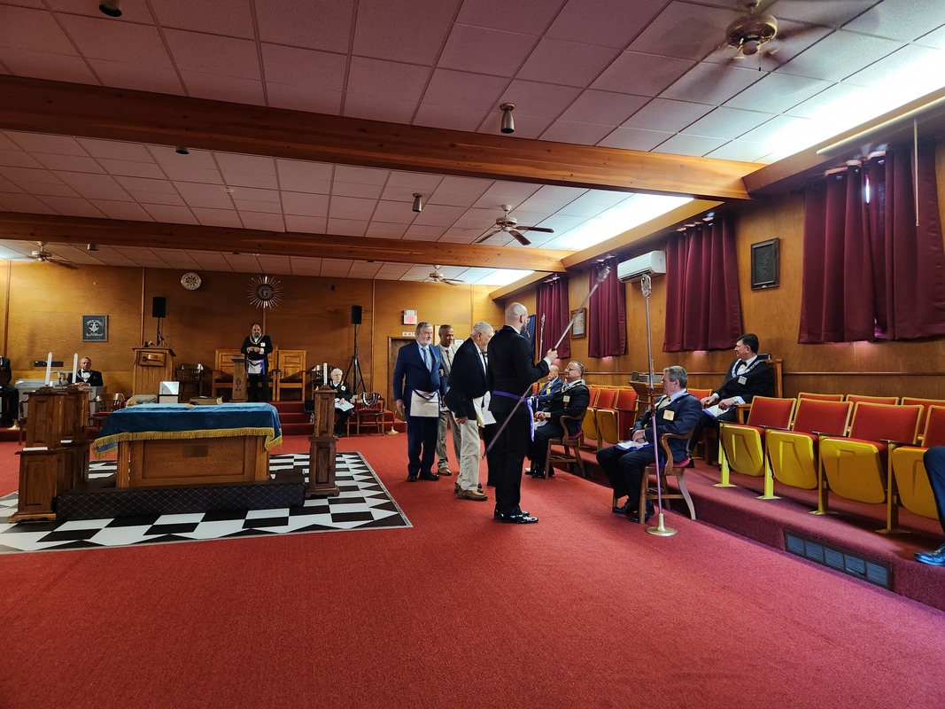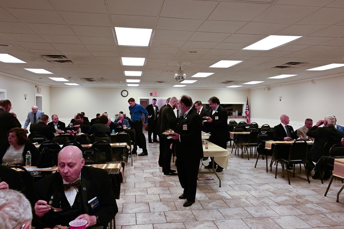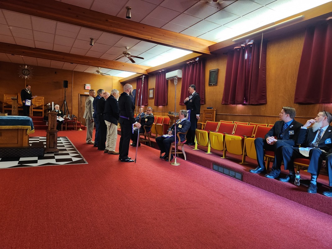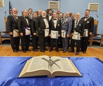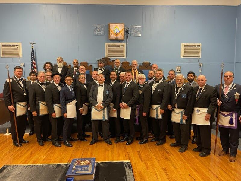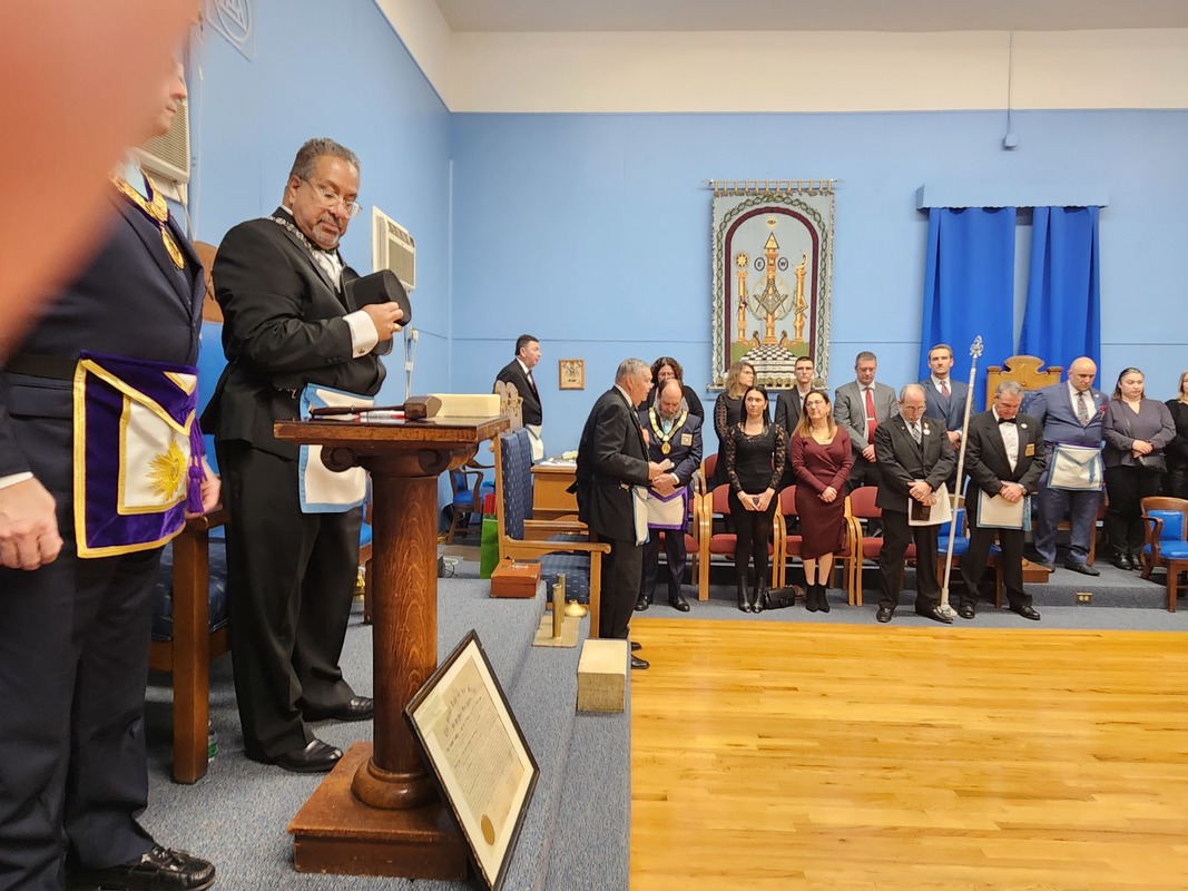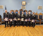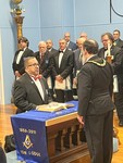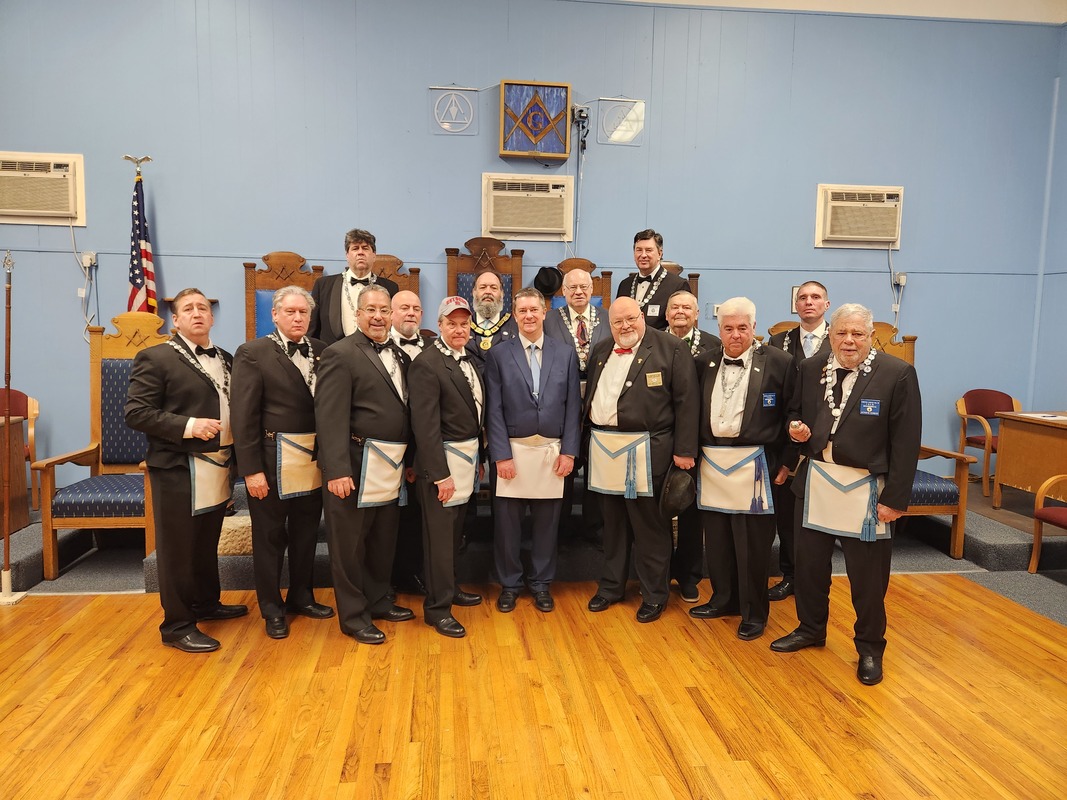 Benjamin Franklin speaking about his history as a Mason at a Union Table Lodge