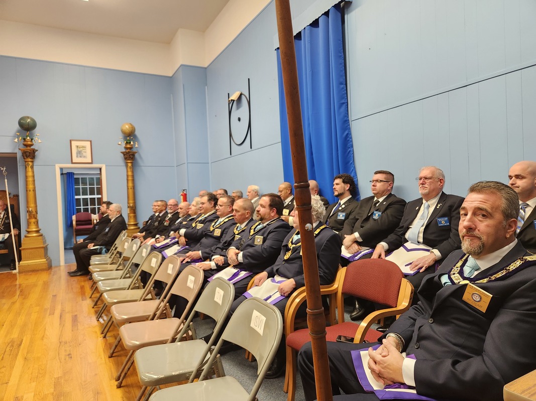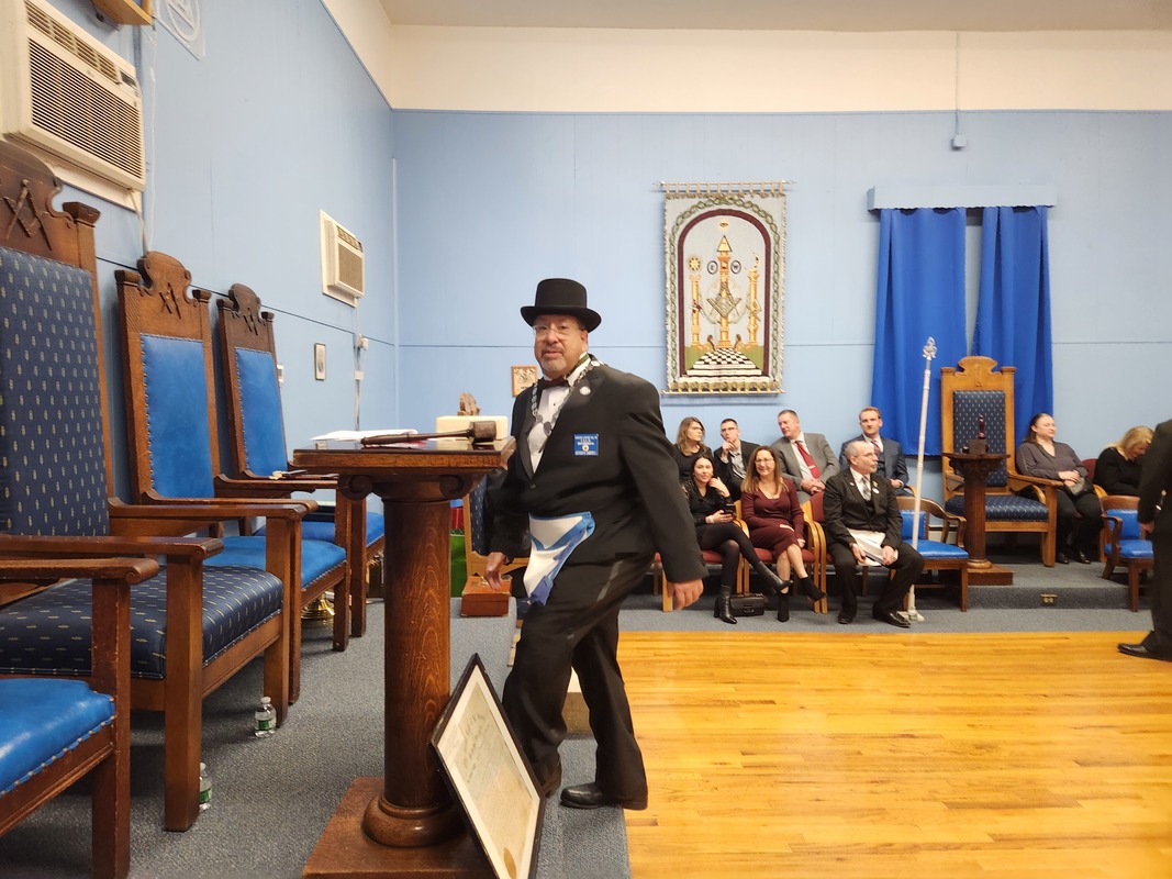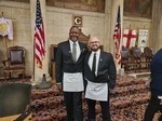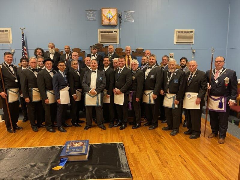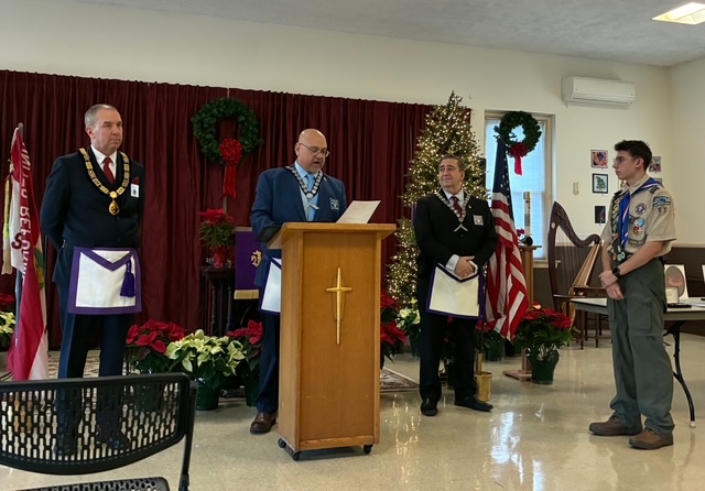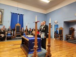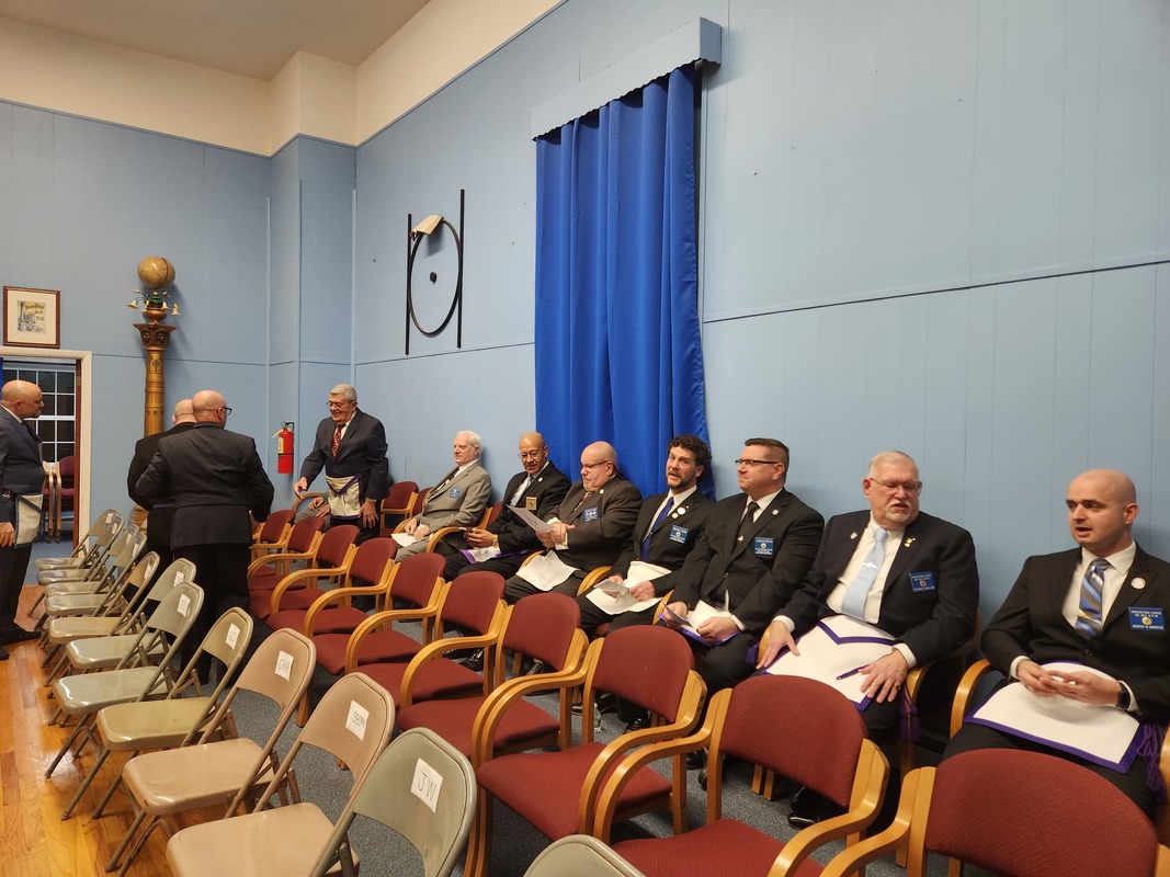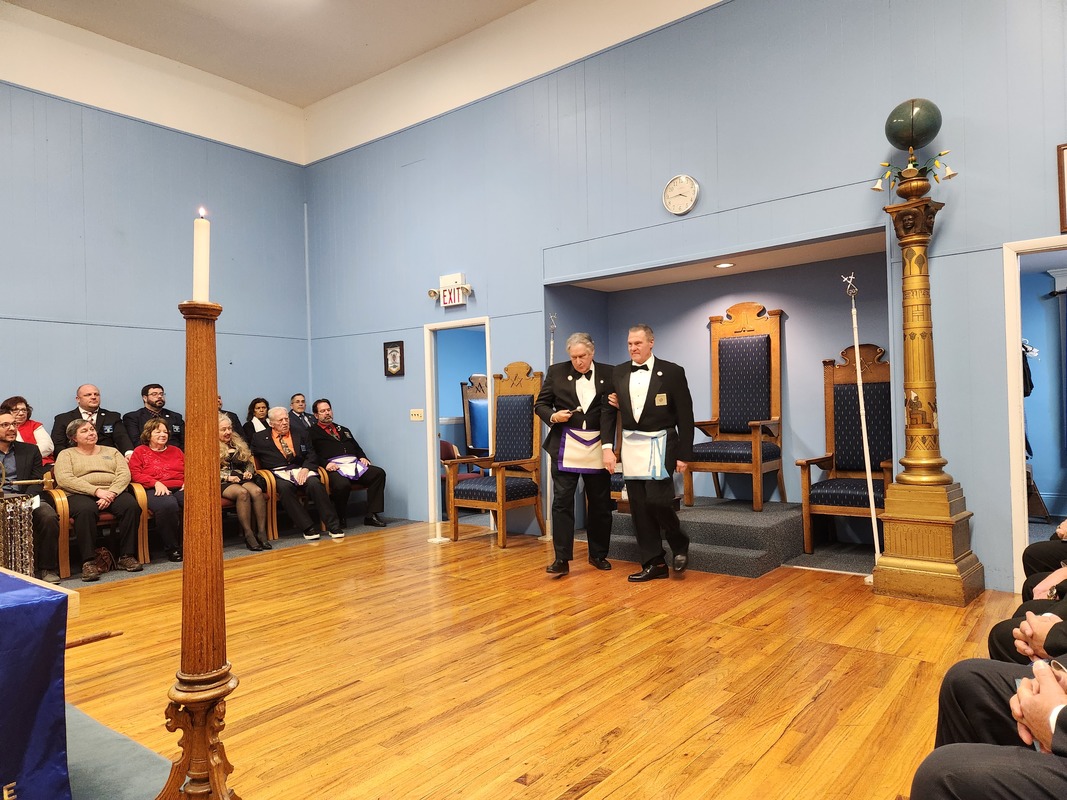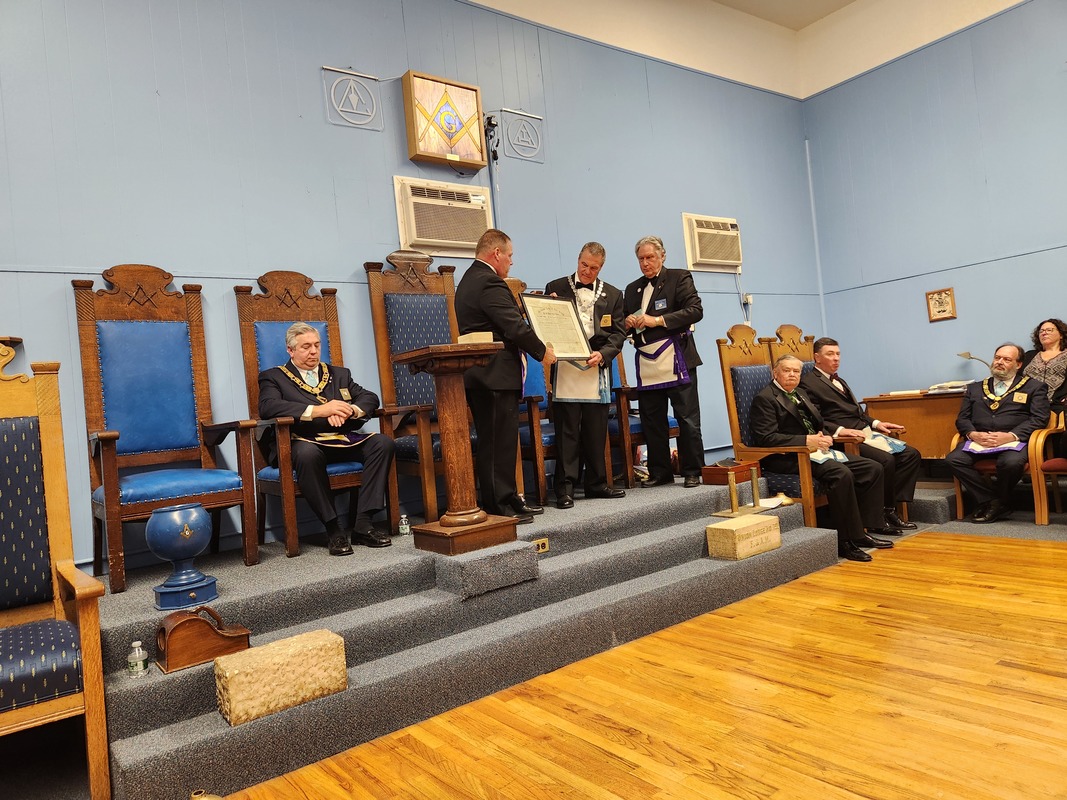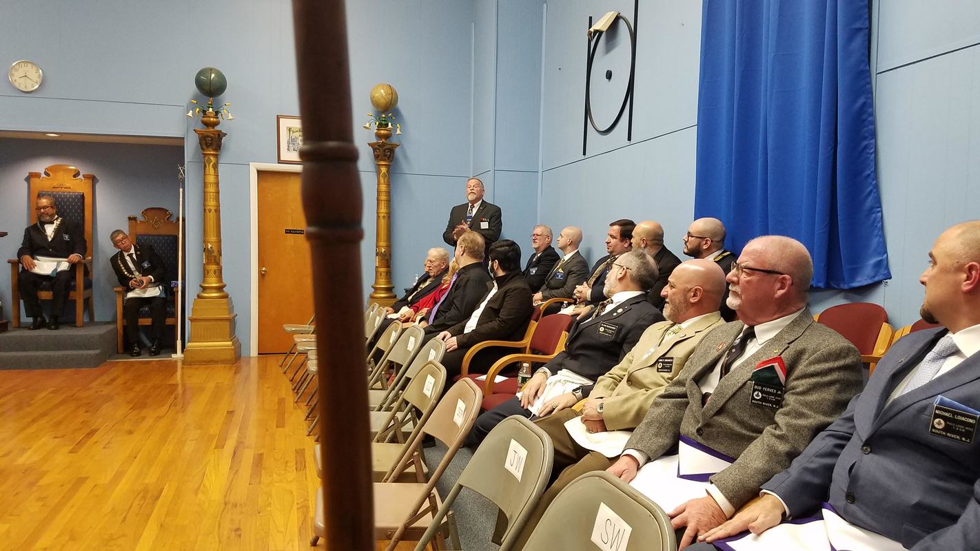 Benjamin Franklin speaking about his history as a Mason at a Union Table Lodge
