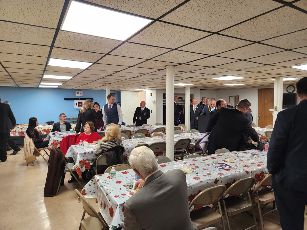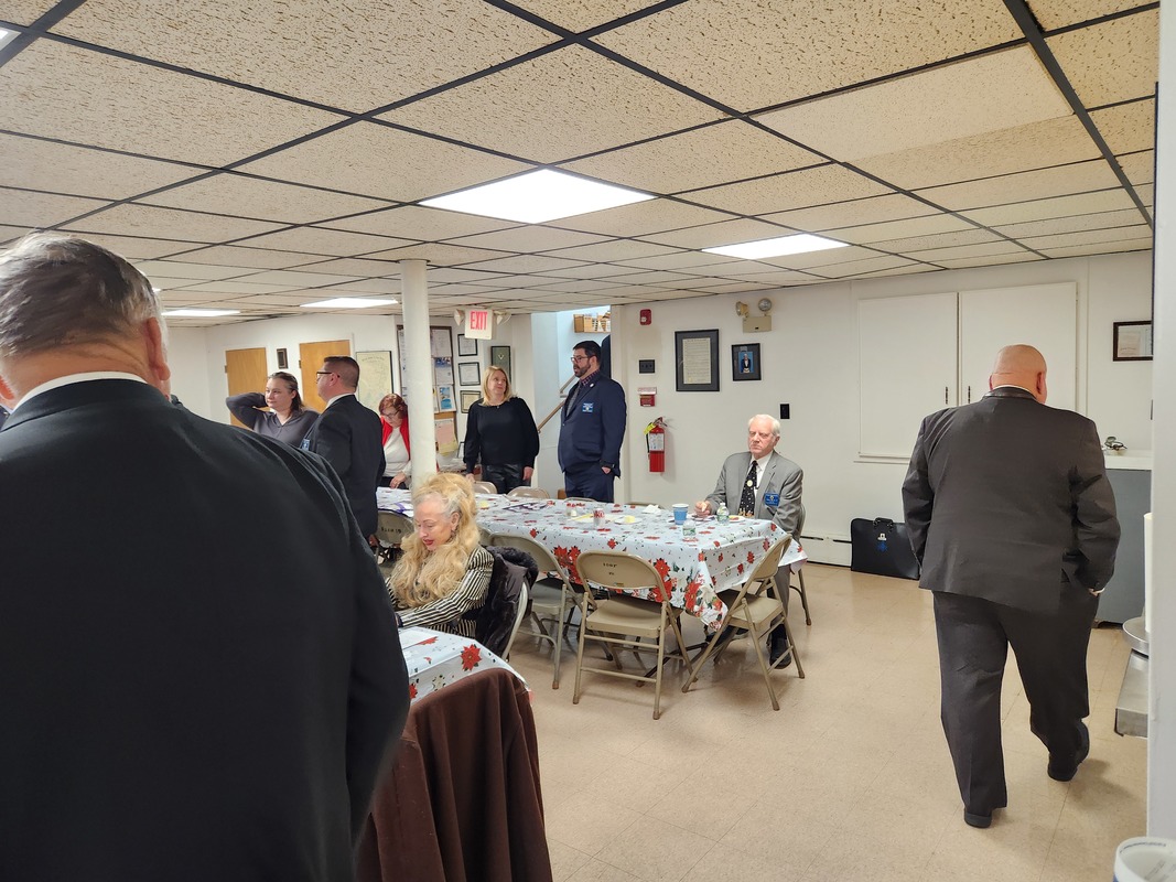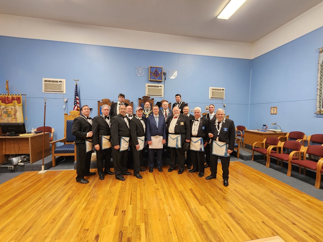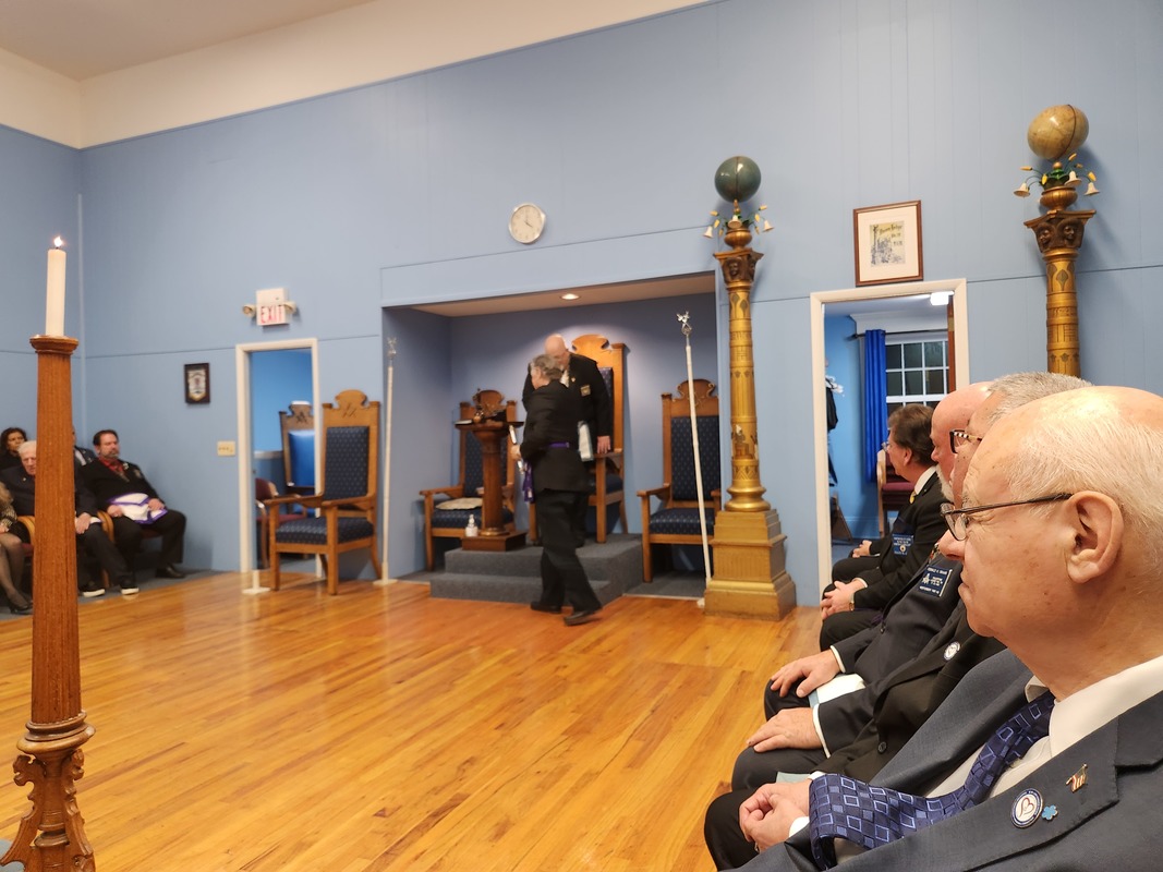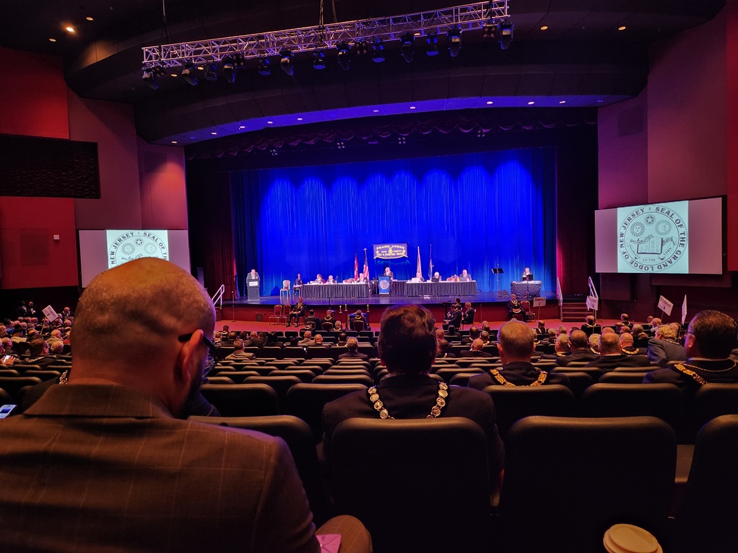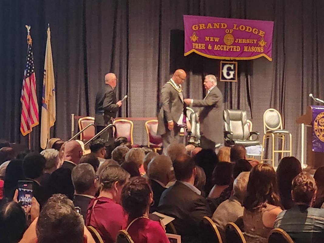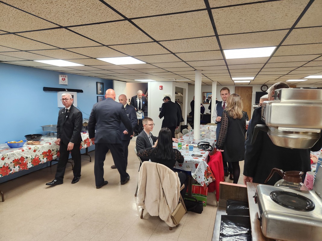Benjamin Franklin speaking about his history as a Mason at a Union Table Lodge