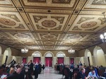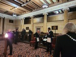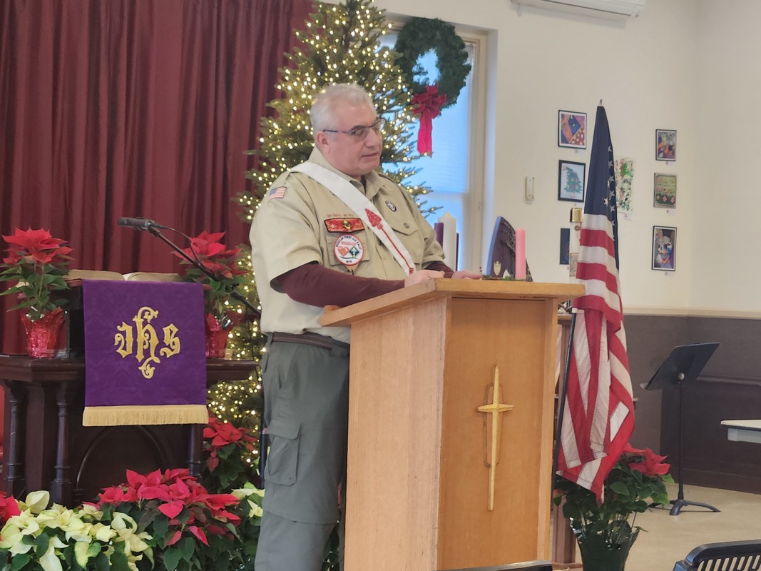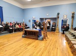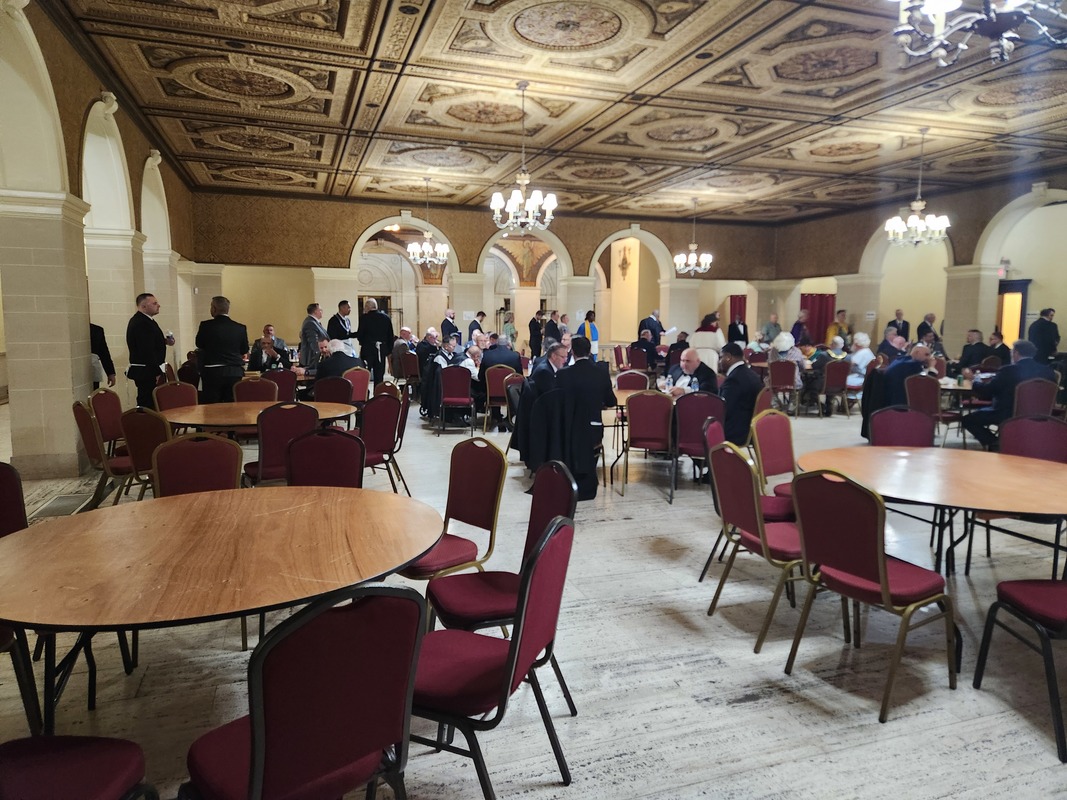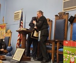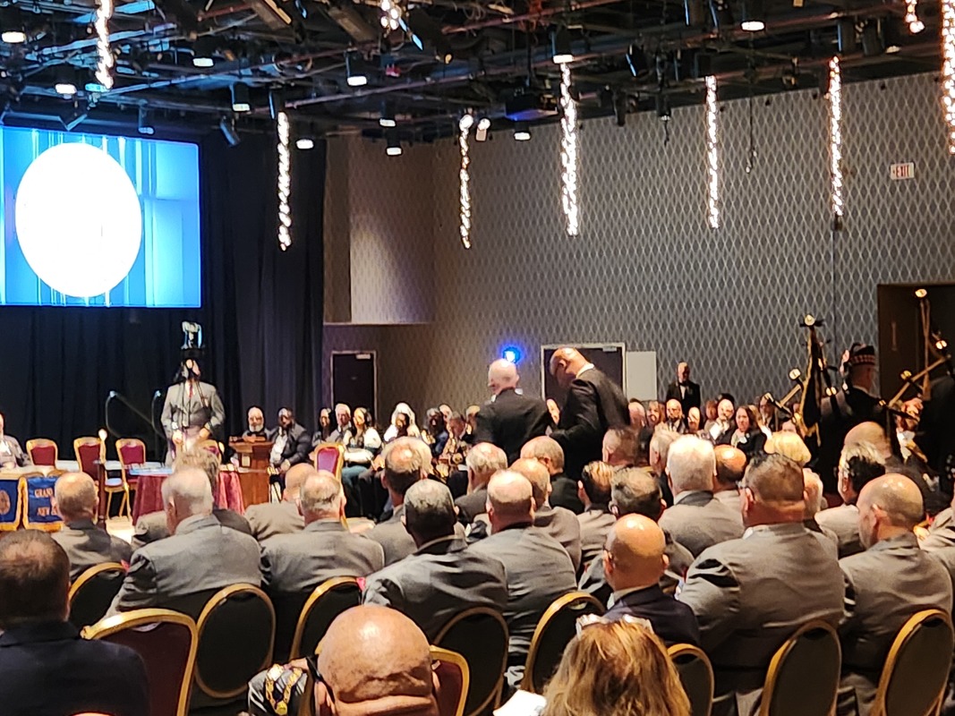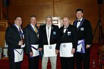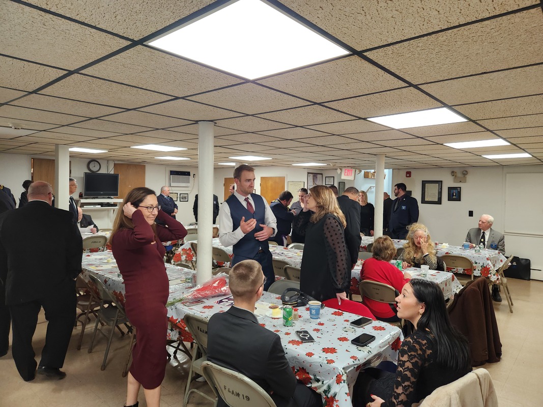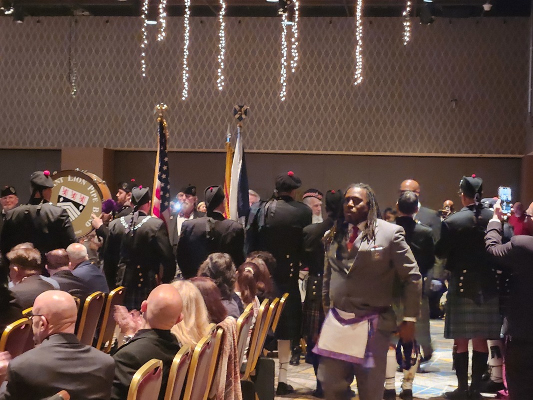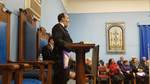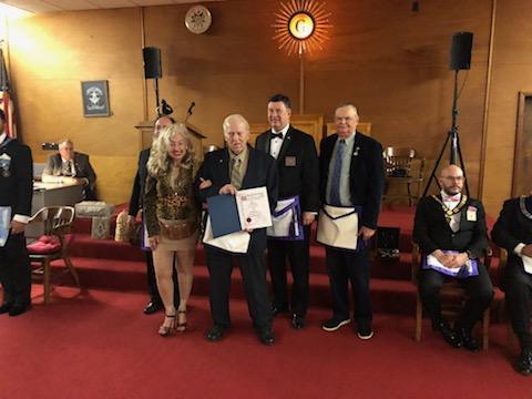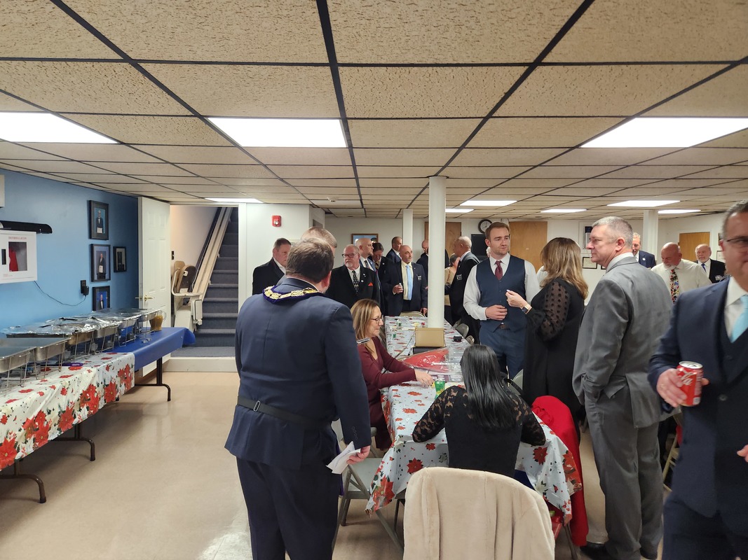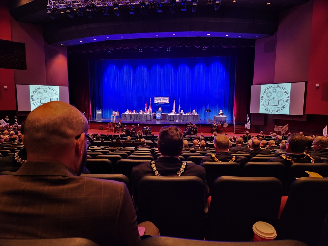 Benjamin Franklin speaking about his history as a Mason at a Union Table Lodge